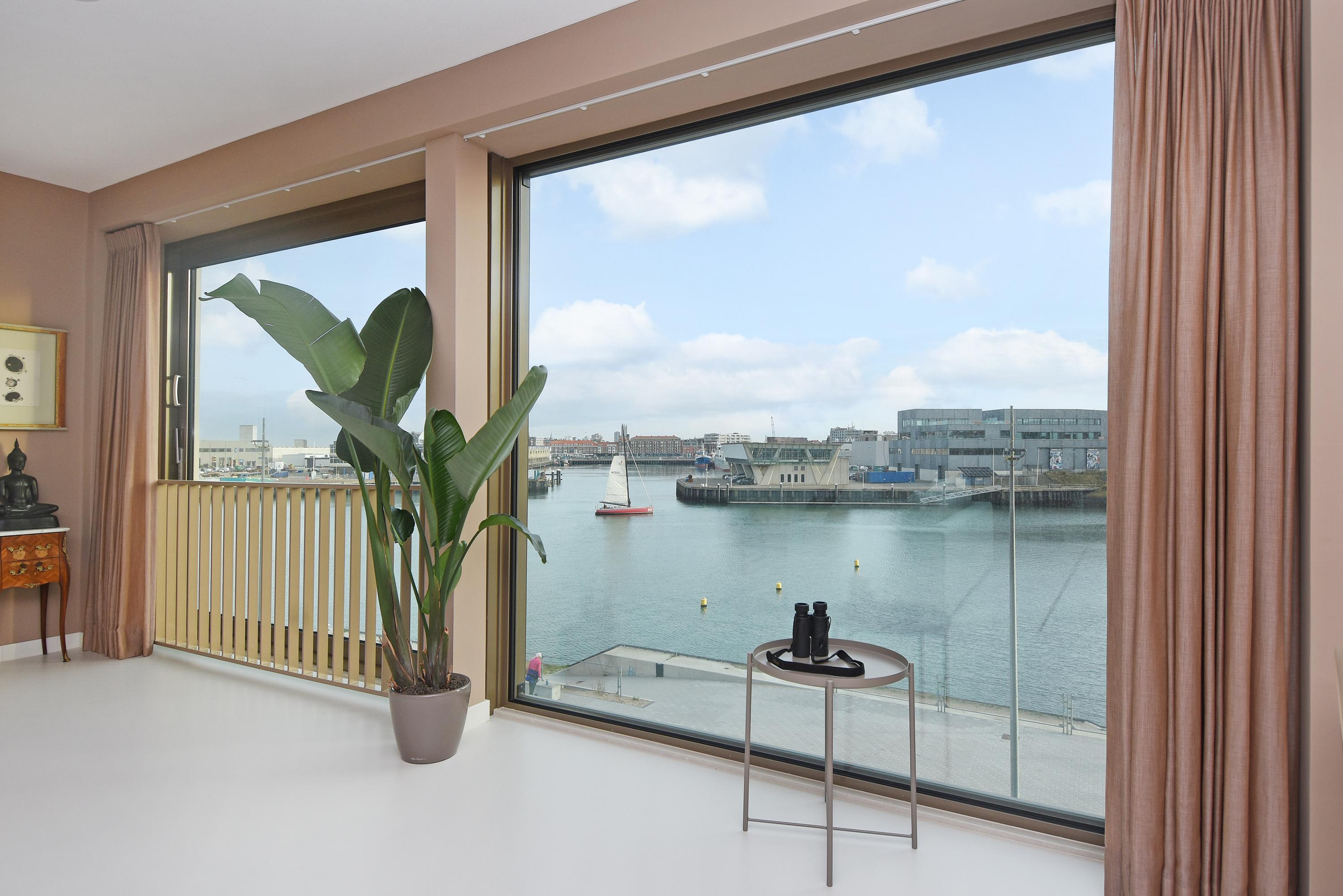 Apartment Den Haag with sea views offers a rare fusion of modern architecture and understated luxury. Situated in Scheveningen, this high-end apartment spans 135 m² and features expansive floor-to-ceiling windows that frame the panorama of the harbour and the North Sea. The living area flows seamlessly into a designer kitchen with a cooking island and integrated luxury appliances. Sliding doors invite the outdoors in, connecting the main living space to a private 29 m² balcony overlooking a landscaped courtyard, perfect for quiet afternoons or evening gatherings.