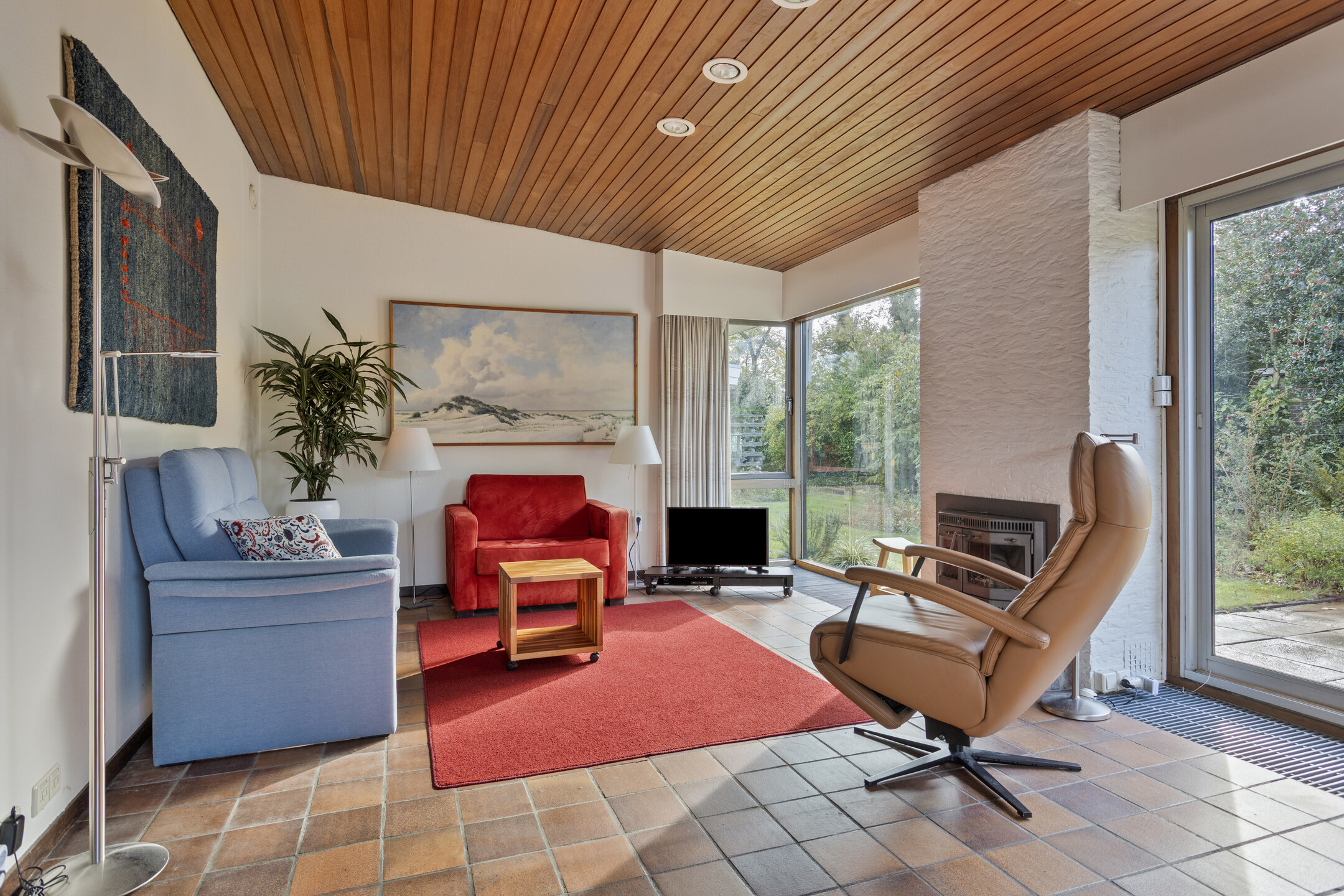 - Ruime woonkamer met open haard