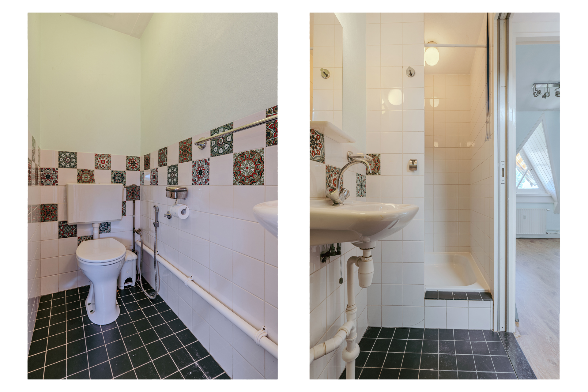 A unique feature is the separate studio on this floor, complete with its own kitchen and bathroom, making it ideal as a guest suite, nanny quarters, or an independent workspace. At the rear is the delightful roof terrace, facing west. Here you can enjoy peace and quiet while basking in the afternoon and evening sun, with views over the surrounding greenery.