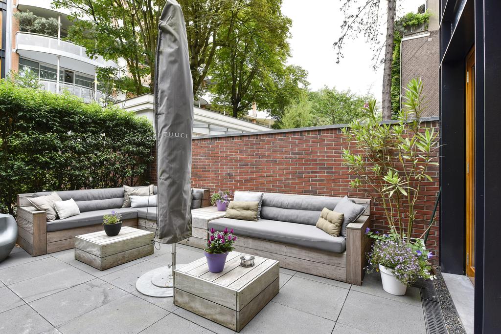This block was designed and finally completed in 2012, with an eye for detail and quality. The design provided for extra high ceilings and the use of predominantly glass in the façades on the garden side. The apartments are light, airy and spacious. The current owners finished off the apartment’s interior with a great deal of taste and an eye for detail which may be seen in the sturdy materials such as the herringbone pattern floors and the steel surrounds to the internal framing for doors and windows. Lots of details are repeated throughout the apartment. This apartment has a floor area of 135 m² and a garden of 41 m².