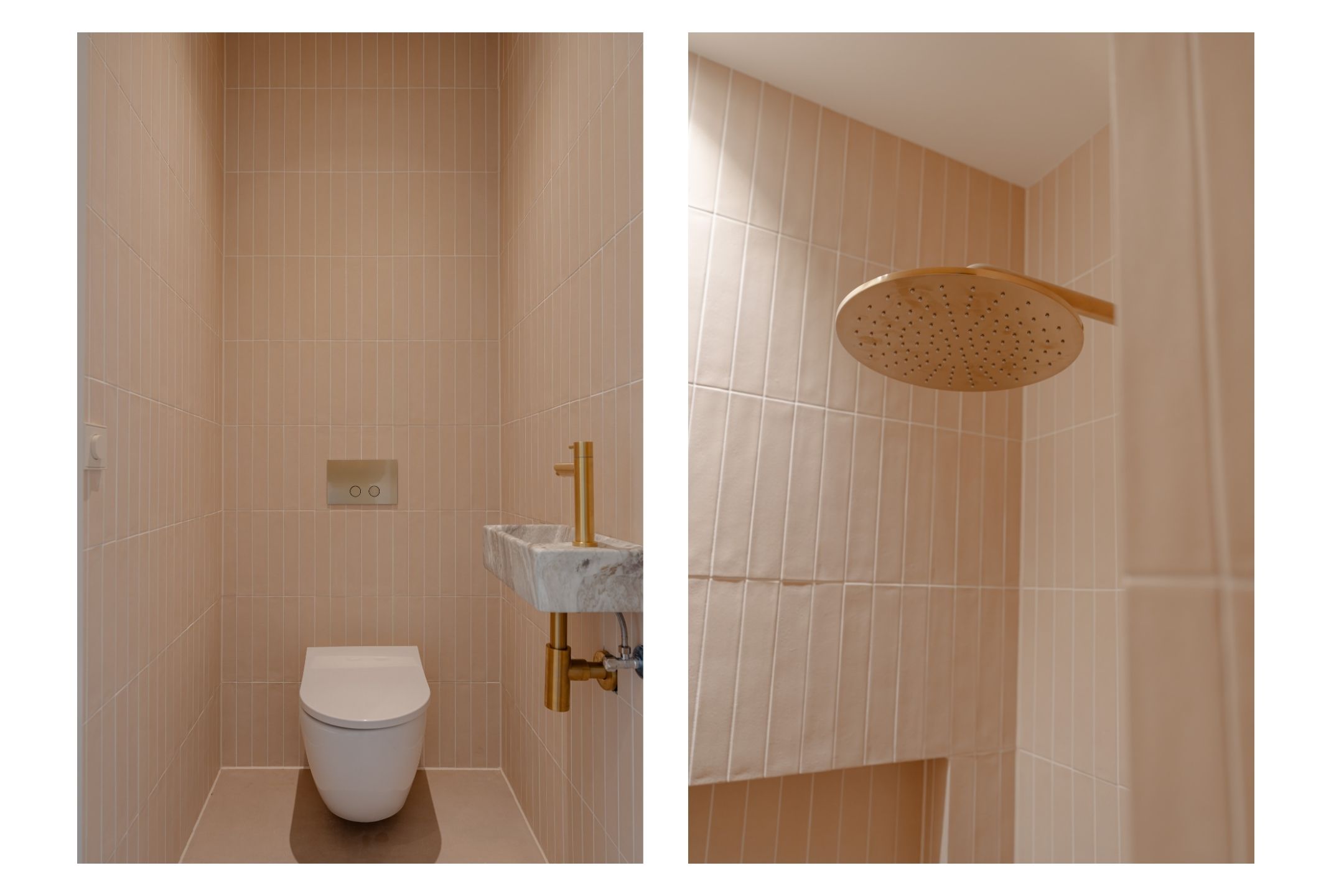 This luxurious apartment is located on the third floor and is characterised by a spacious and open layout, with large windows at both the front and rear providing pleasant natural light throughout the day. The apartment is finished to a high standard and offers a comfortable living environment with a calm and refined atmosphere. The living room is situated at the front of the apartment and features a ceiling height of approximately 3.07 metres. Together with the kitchen and dining area, it forms one generous open-plan living space. The luxurious kitchen is centrally positioned within the apartment and is designed around a spacious cooking and sink island, fitted with an induction hob, sink and Quooker. In addition, the kitchen is equipped with a refrigerator, freezer, combi oven, climate cabinet and ample cupboard space. The island also functions as a comfortable bar area. At the rear of the apartment is the covered balcony, offering attractive views over the green gardens at the back and providing a peaceful outdoor space to relax. At the front of the apartment, the hallway provides access to the first bedroom, the separate toilet, the laundry/storage room and the first bathroom. This bathroom is fitted with a walk-in shower and a double washbasin with vanity unit. The second bedroom is located at the rear of the apartment and features fixed wardrobe space and an en-suite bathroom, equipped with a walk-in shower and a washbasin with vanity unit.