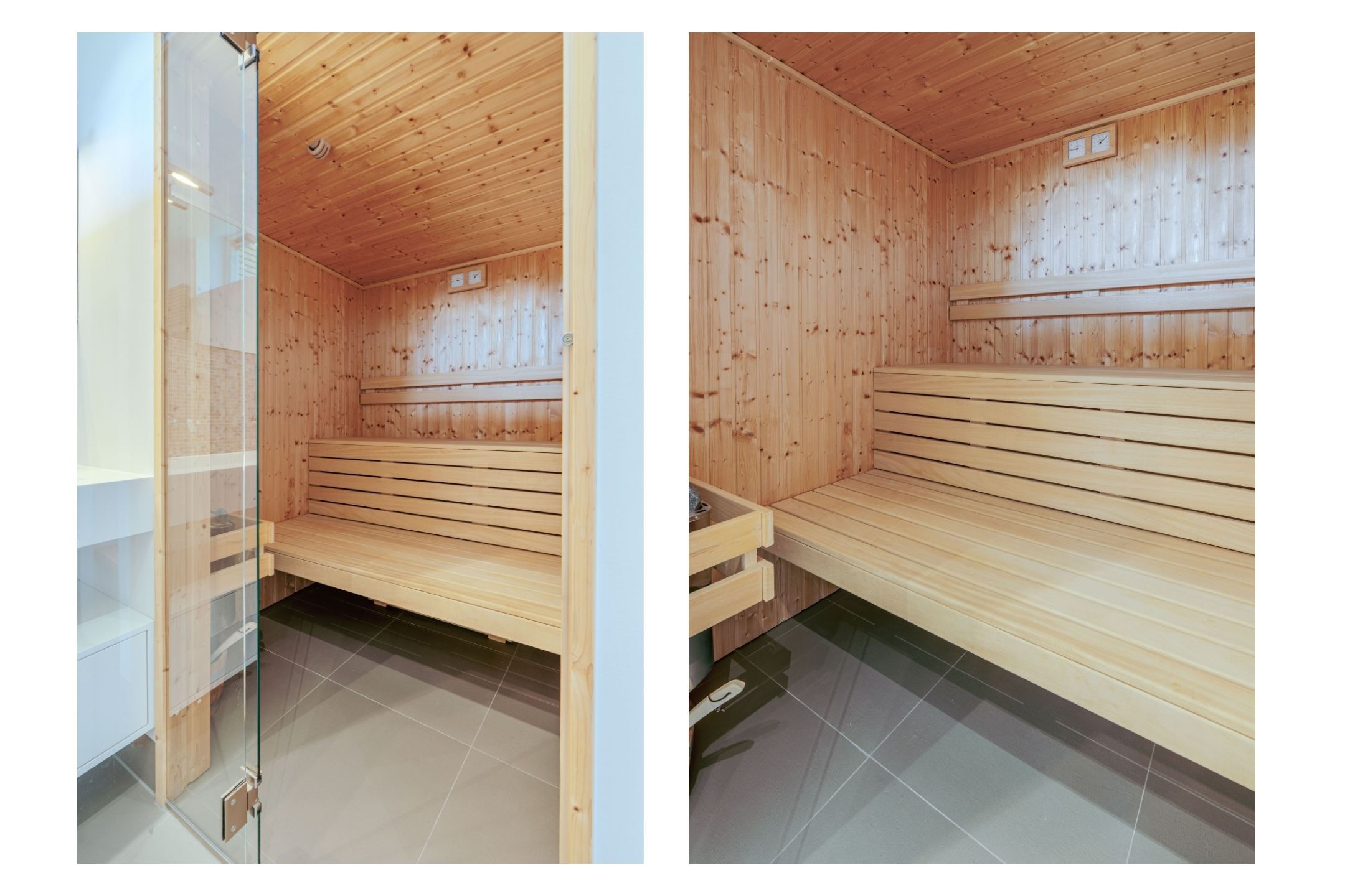 The master bedroom is located at the rear and has access to the spacious en-suite bathroom with walk-in shower, double washbasin, toilet and sauna. The second large bedroom is located at the front, and this too has its own bathroom with shower and washbasin. In the basement of the complex, the apartment also has a practical private storage unit of approx. 6 m².
