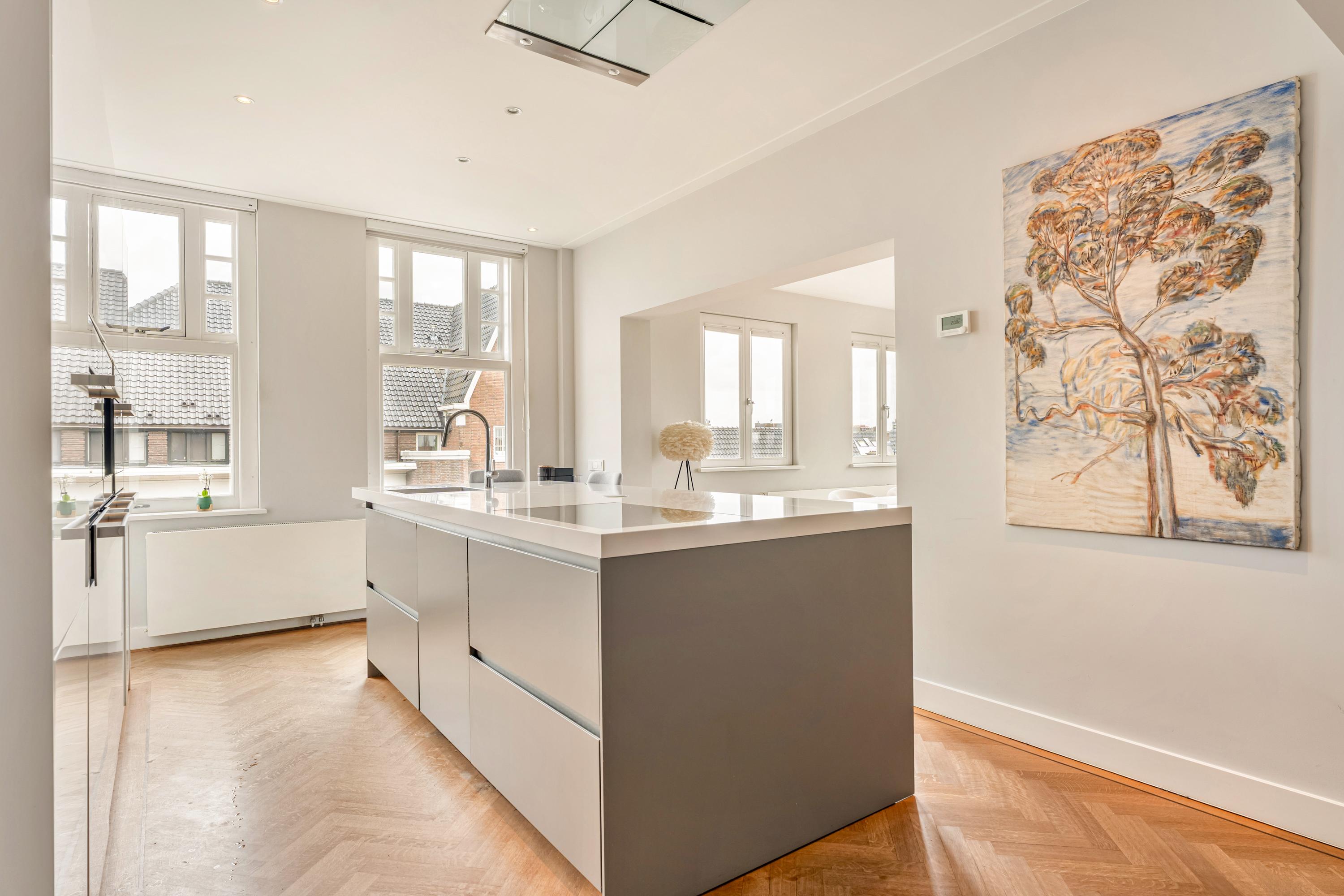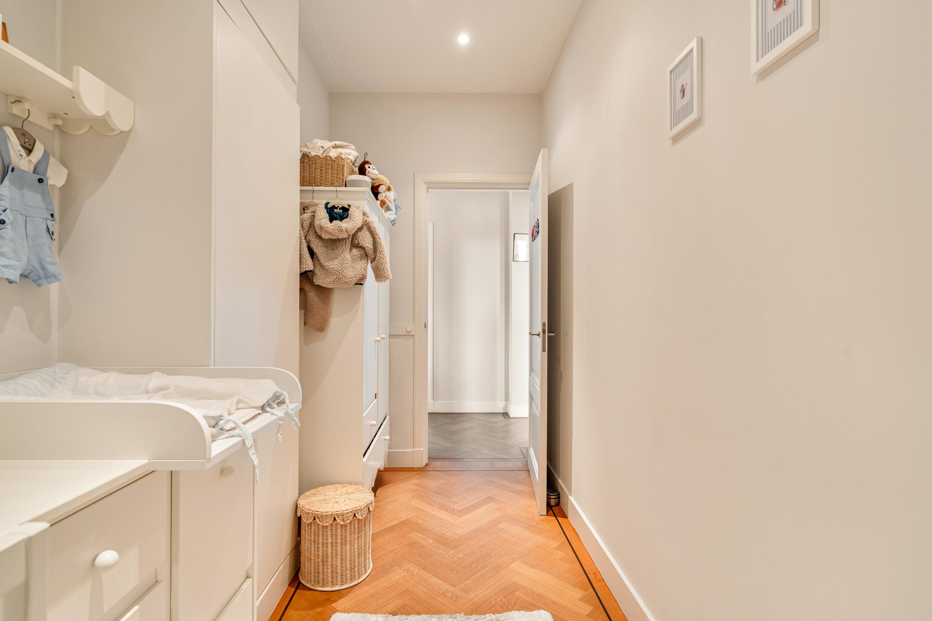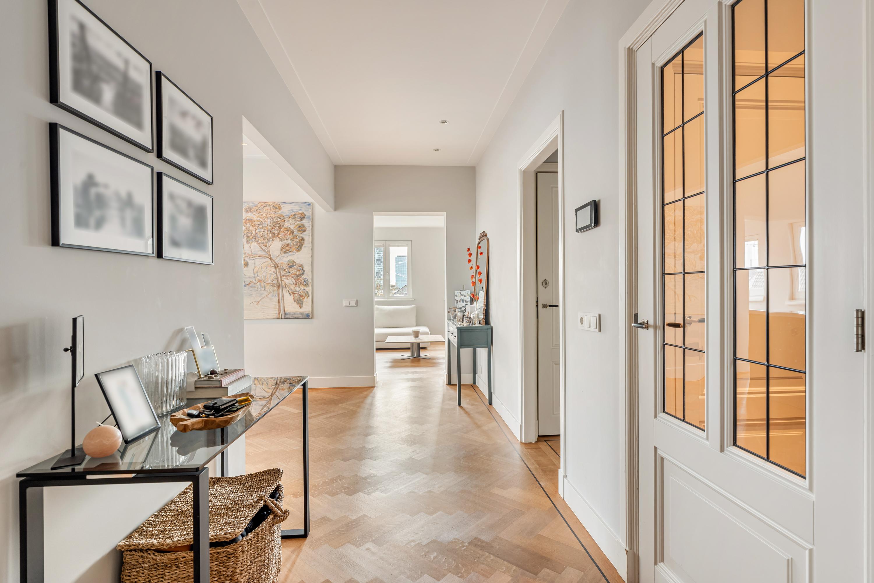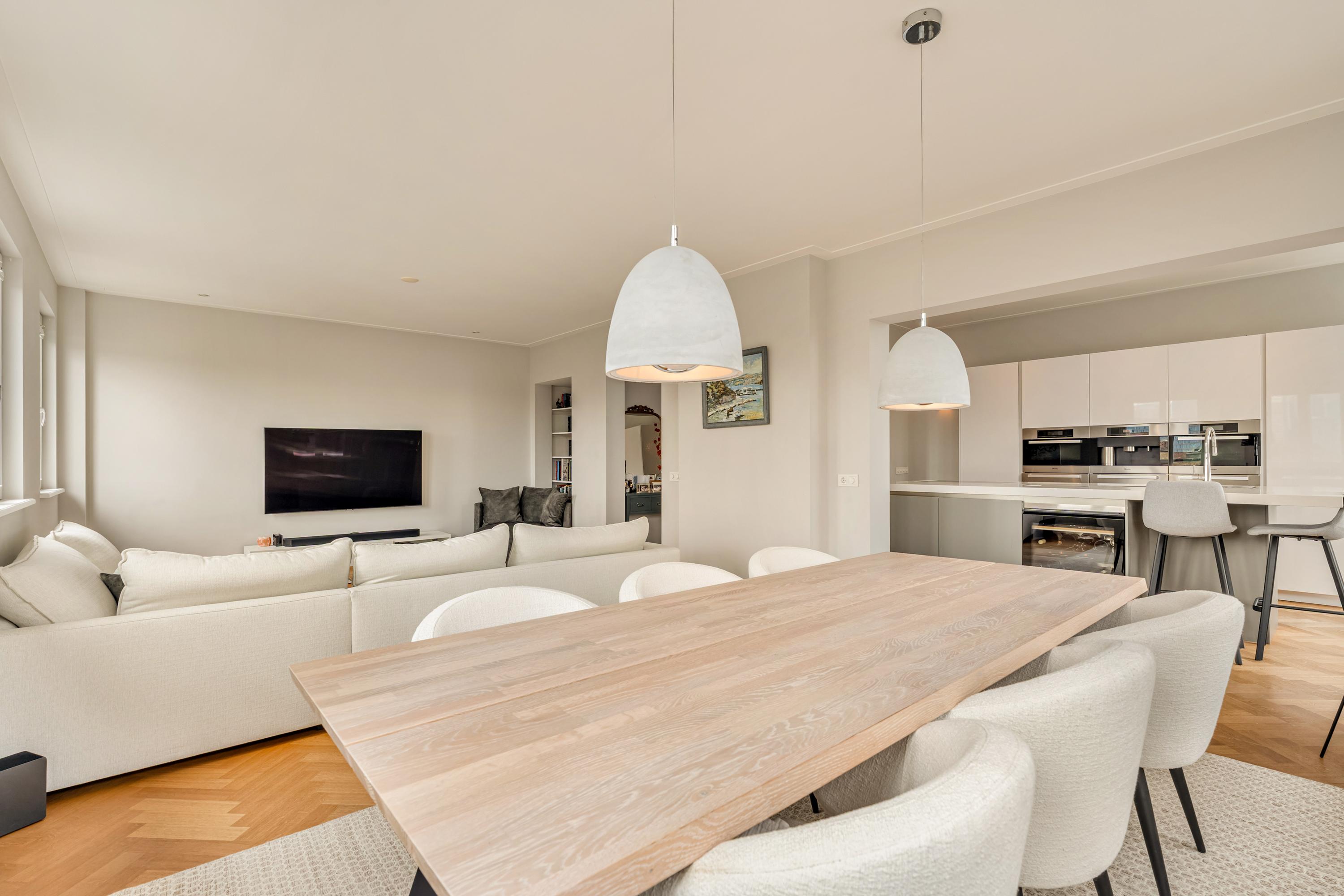 The apartment is finished with a beautiful wooden herringbone floor. All window frames have been renewed in hardwood with HR++ double glazing, while preserving and modernizing the characteristic sliding window system.