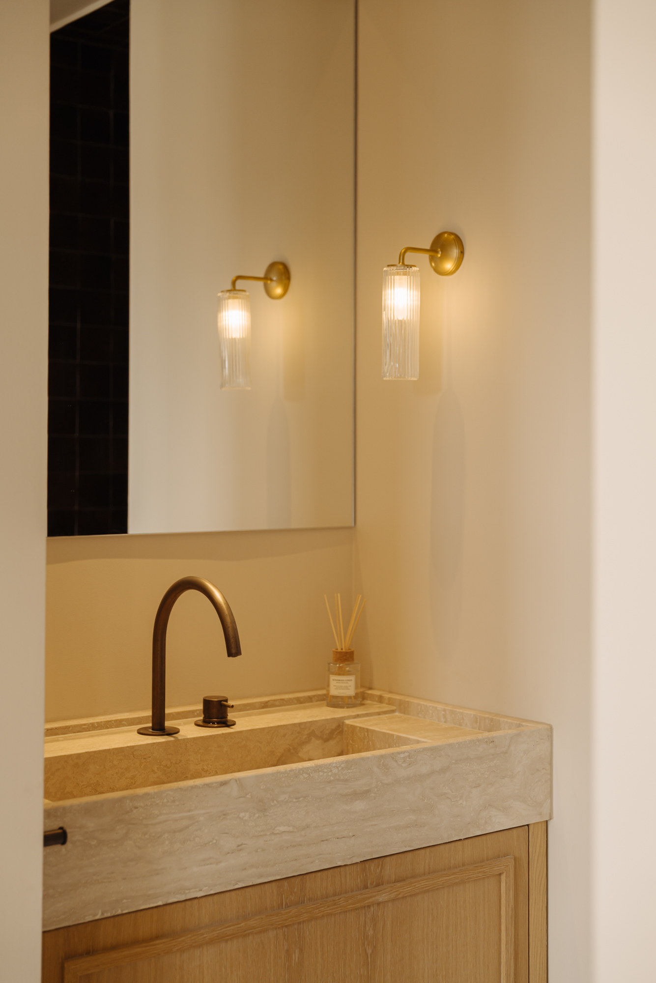 The apartment has been fully renovated to the highest standards, using rare, premium materials such as natural stone. The practical layout includes a spacious living room with ceilings reaching 3.44 metres, a modern open-plan kitchen with integrated appliances, and a private bedroom with en-suite bathroom on the lower level. Large windows flood the space with natural light, allowing the carefully designed interior to shine and enhancing the historic surroundings.