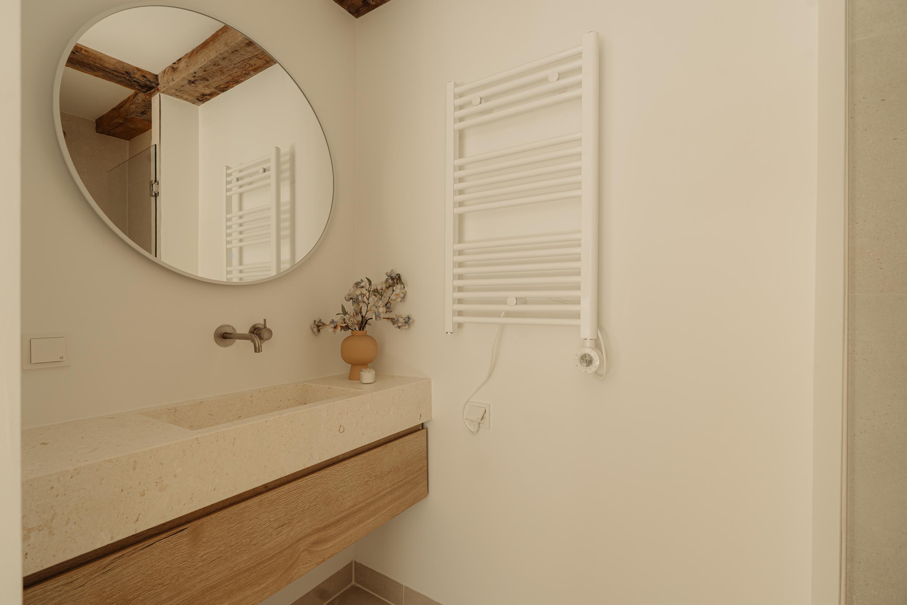 The property has been meticulously renovated with great attention to detail and respect for its original architecture. Exposed beams, high ceilings, and large windows recall the building’s historic character, while bespoke craftsmanship, natural materials, and serene finishes create an atmosphere of modern luxury.