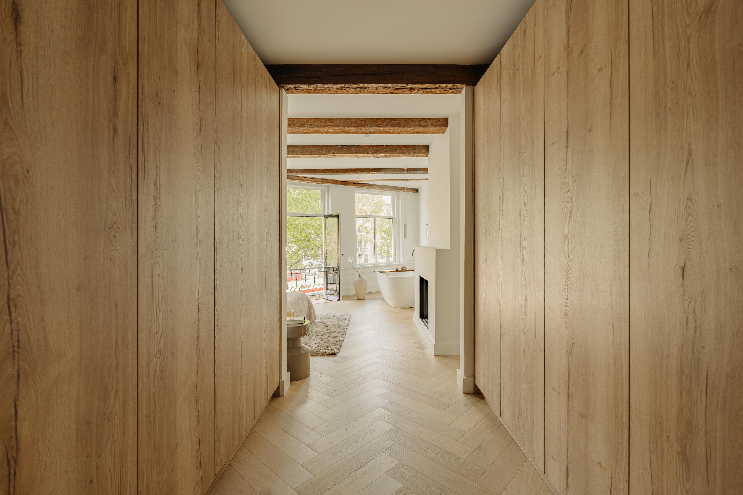 The raised ground floor exudes the classical elegance of Amsterdam’s canal belt, combined with a contemporary, tranquil atmosphere. A wide marble hallway, running the full length of the house, leads directly to the garden.
