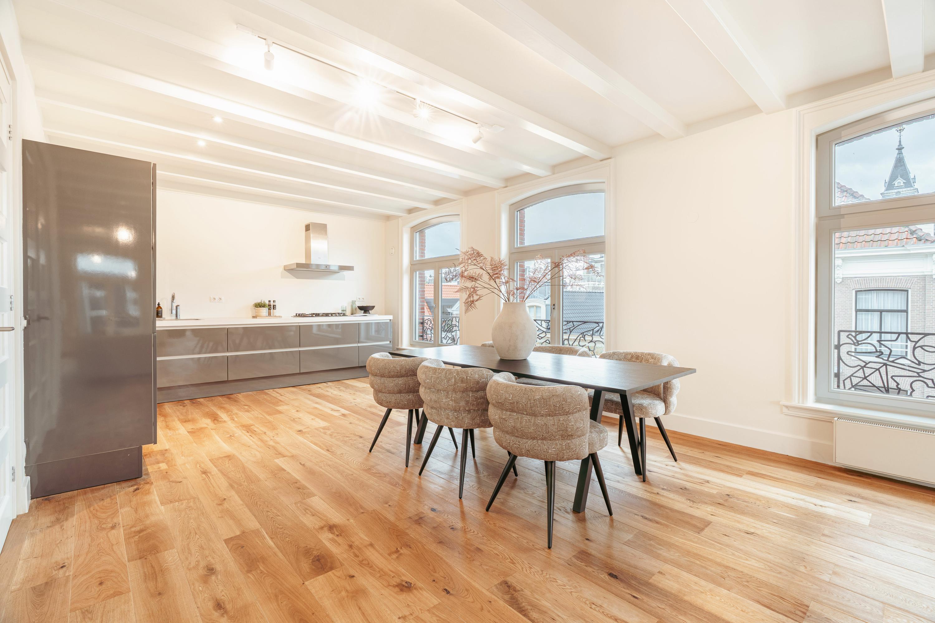 The third floor forms the primary living area and offers a spacious and atmospheric living space. The floor has an open layout and a pleasant sense of volume. There is room for a generous sitting area, a sizeable dining section and an open kitchen arrangement. Authentic elements add character throughout. The high ceilings and large windows create beautiful natural light. From the windows you can enjoy charming views over the lively Van Baerlestraat and the chic P.C. Hooftstraat.