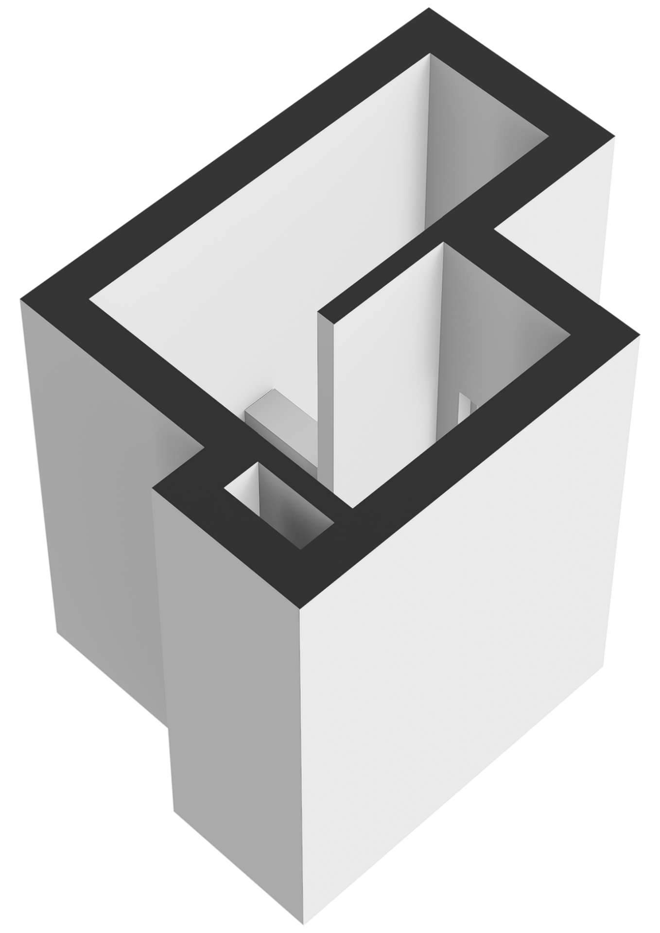 The fourth floor houses the bedrooms and bathrooms. This level offers space for multiple bedrooms, bathrooms and potentially a work or hobby area. At the front are two well-sized bedrooms, while at the rear lies a spacious master bedroom with an adjoining en-suite bathroom equipped with a bathtub, shower, toilet and washbasin. Additionally, on this floor there is a second bathroom with a shower, toilet and washbasin, accessible from the landing. If desired, the two front bedrooms can be combined into one large bedroom by removing the dividing wall.