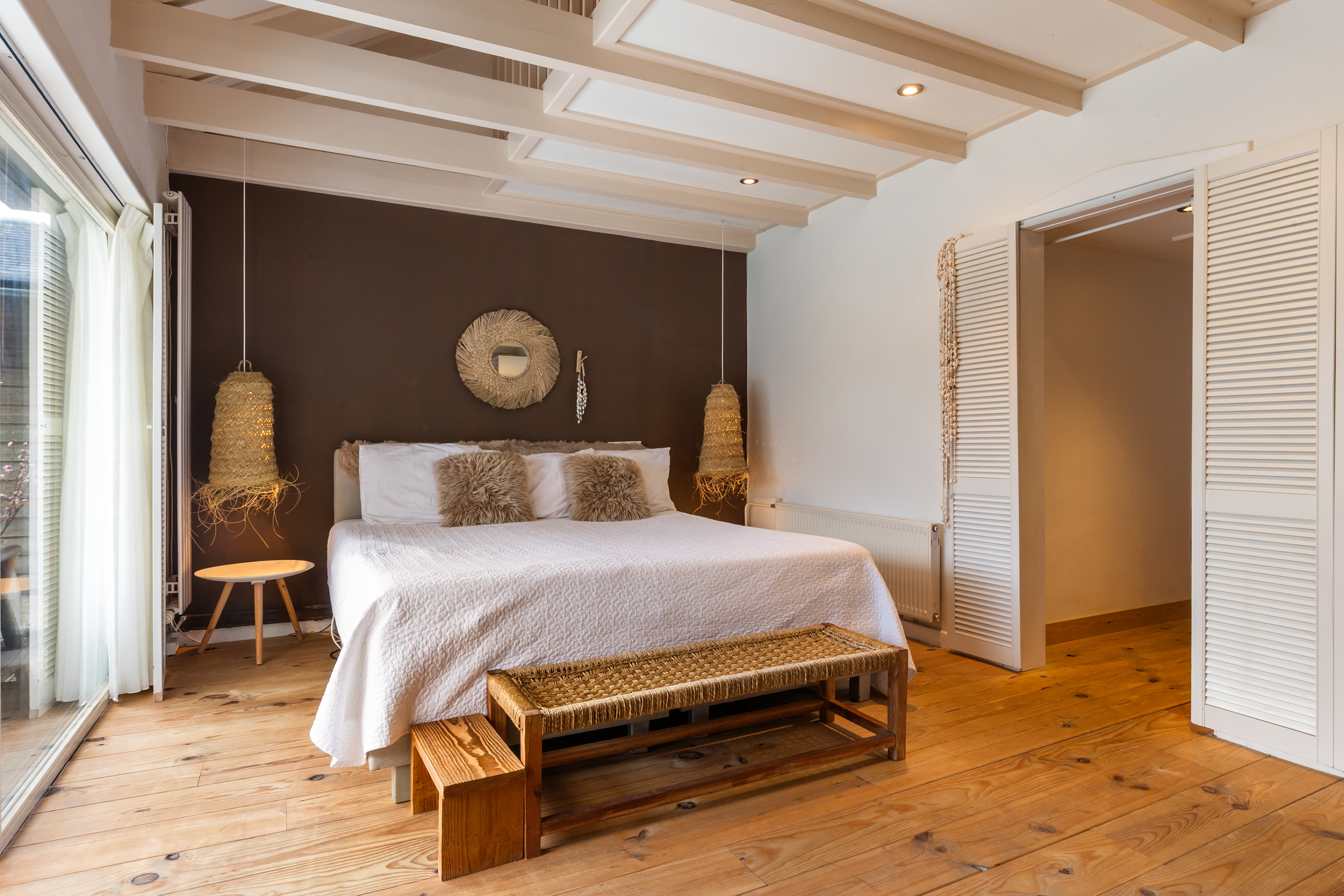 From the bedroom, sliding doors provide direct access to the garden.