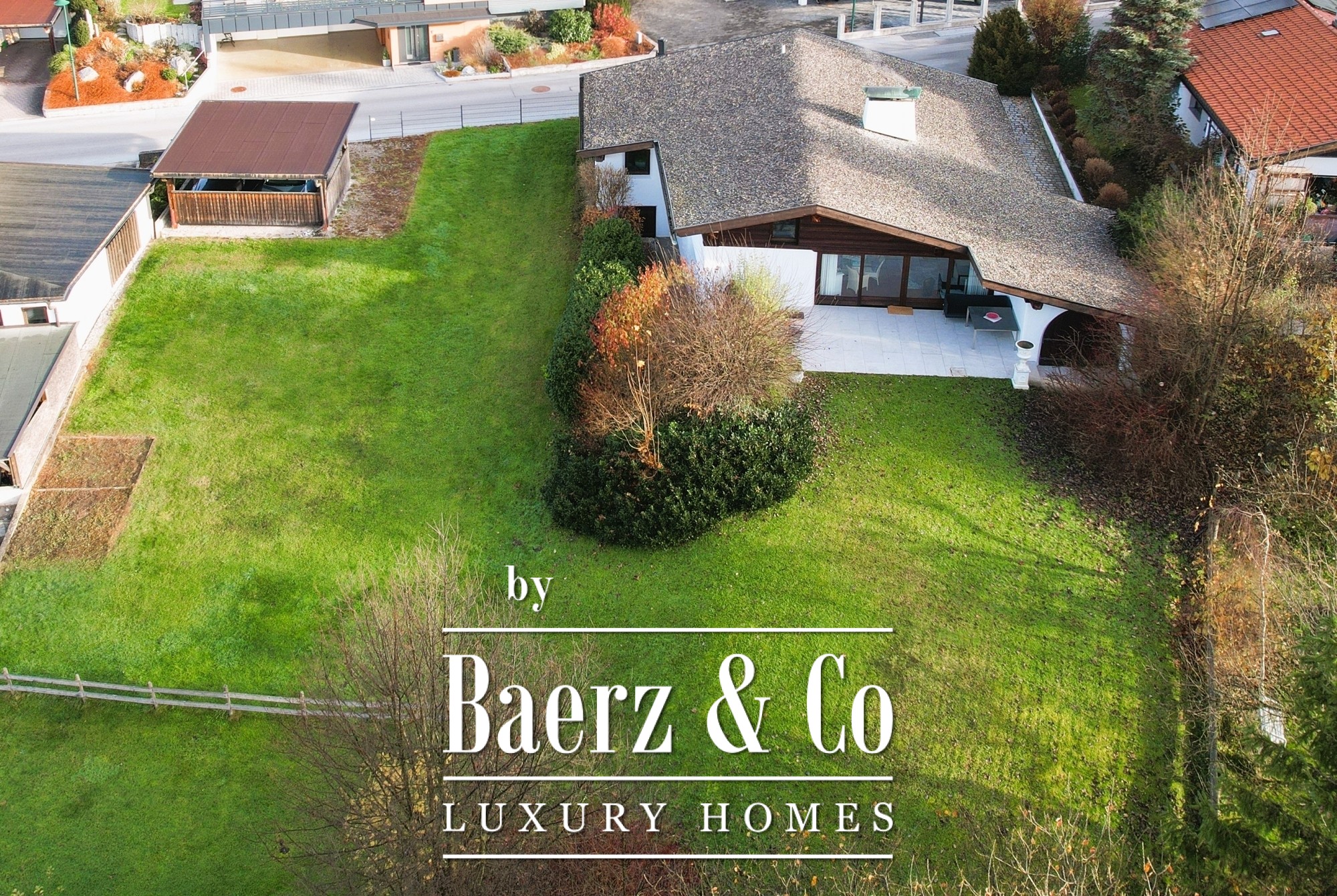 House Bad Häring stands as a refined example of classic Kranebitter architecture, set on a quiet 857 m² plot with an additional adjacent 434 m² building site. This house for sale in Bad Häring offers approximately 238 m² of total space, with 128 m² devoted to light-filled living areas and 73 m² as a generous basement, grouped with a 19 m² utility room and an 18 m² storage shed. The property lends itself equally well to extension or the potential for further development.