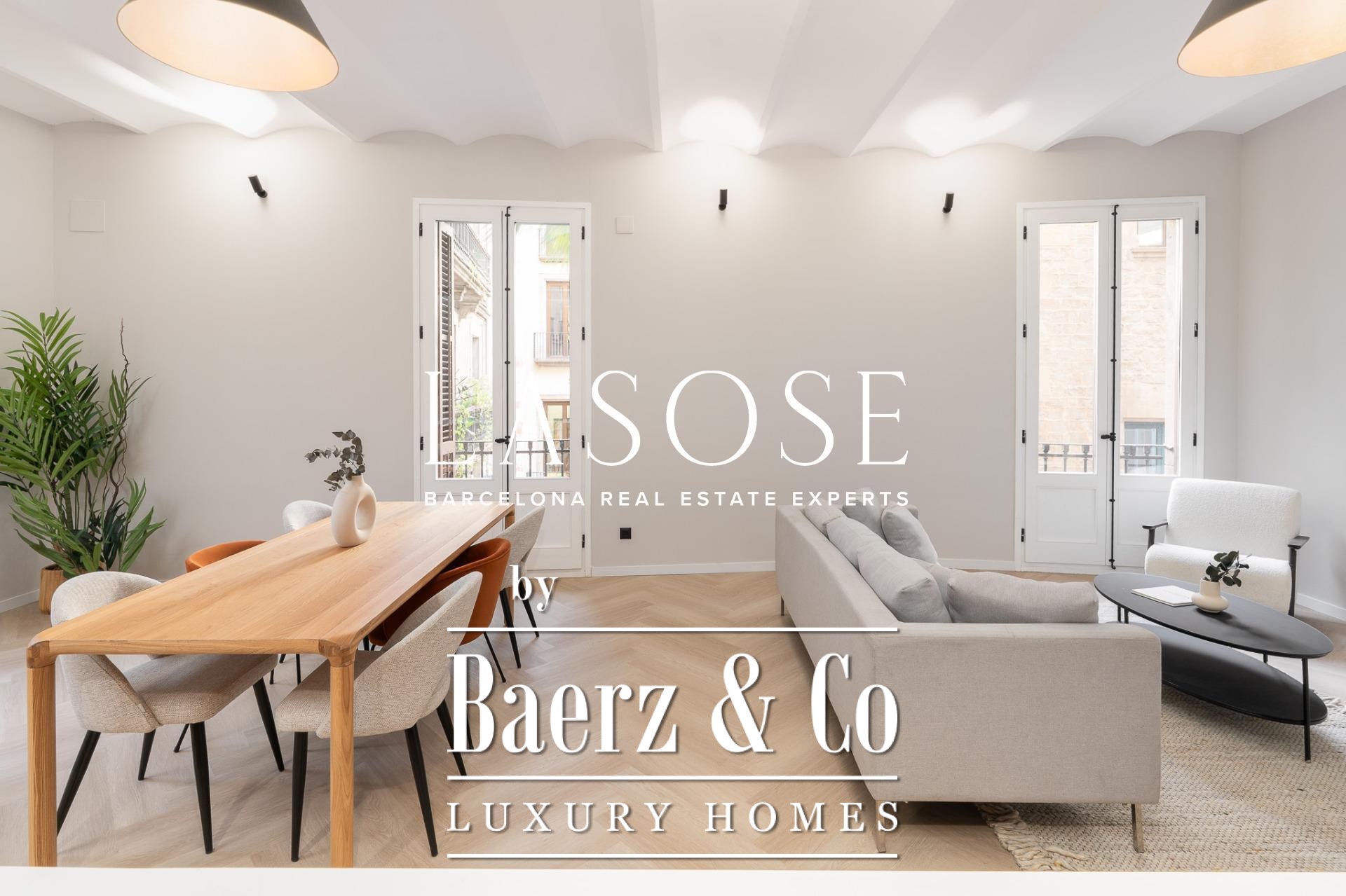 Apartment Barcelona blends the authenticity of a classic building with the refinement of meticulous renovation, positioned in the city’s historic center near the Cathedral and the Palau de la Música. This apartment, offering 140 m² of built space and a living area of 119.72 m², exemplifies thoughtful restoration using high quality materials while preserving timeless features such as the Catalan vault and wooden shutters.