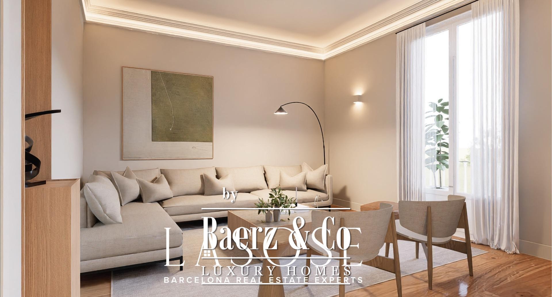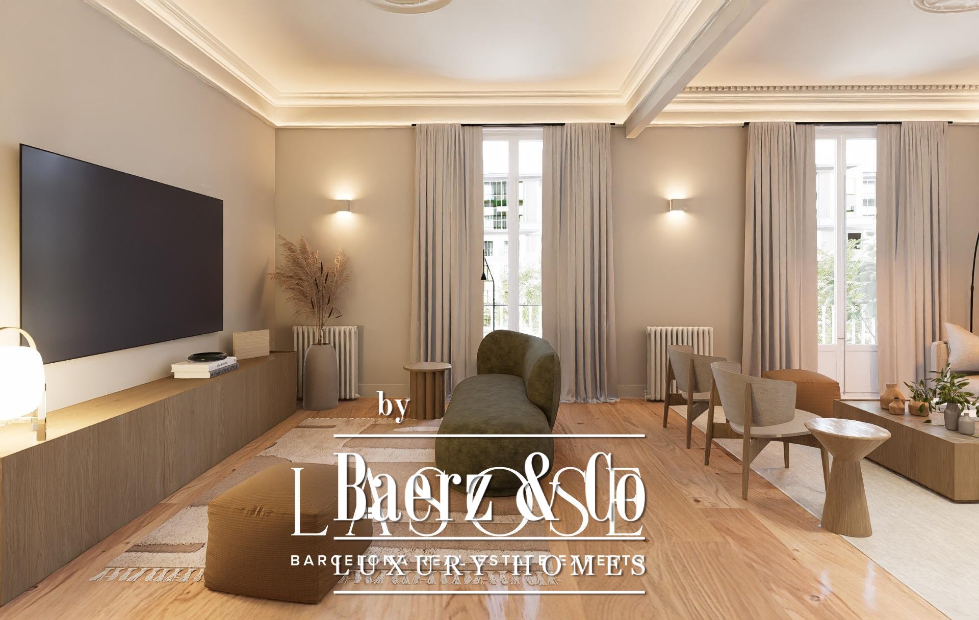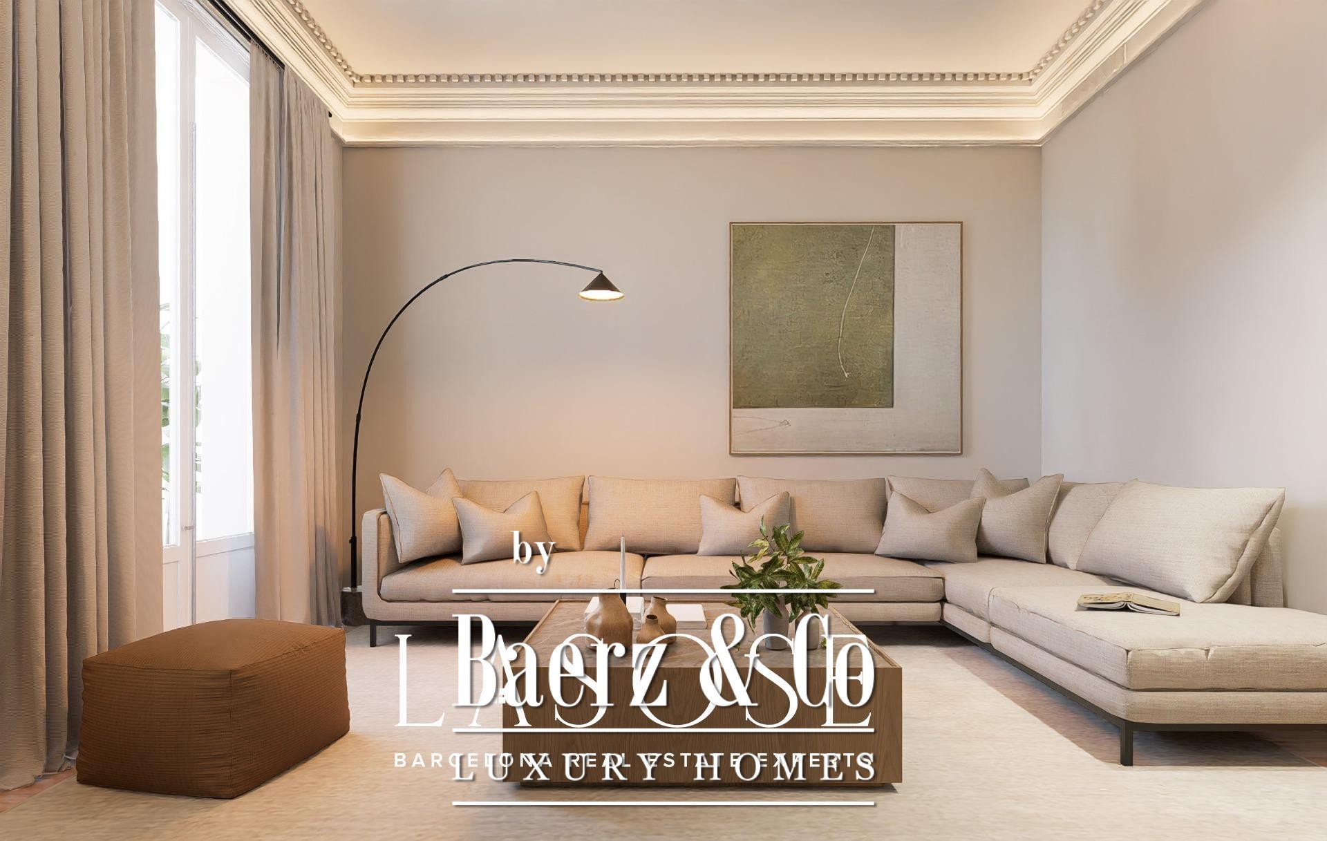 of space and natural light, highlighting the residence’s stately character.. The spacious private terrace provides an oasis of peace in the heart of the city — perfect for enjoying the Mediterranean climate and privileged views over the Eixample.. Situated next to the iconic Passeig de Gràcia, the penthouse enjoys a vibrant and sophisticated environment surrounded by luxury boutiques, art galleries, and renowned restaurants.. A unique setting where history and modernity intertwine, offering an exclusive lifestyle in the very heart of Barcelona.. Important Note:. The images shown are illustrative (renders).. Construction works are nearing completion.