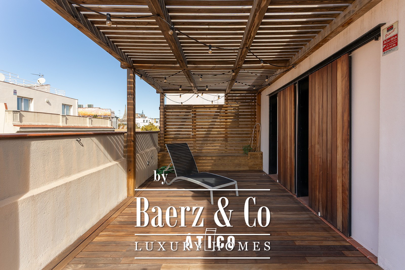Penthouse Barcelona offers a living experience defined by space, light and enduring city views. This furnished property presents 105 m² of modern interior, enriched by an 80 m² terrace that frames the heart of the city and invites relaxed mornings or intimate summer dinners. The penthouse's careful orientation ensures abundant natural light, while the open terrace embraces the rhythm of Barcelona's urban energy.