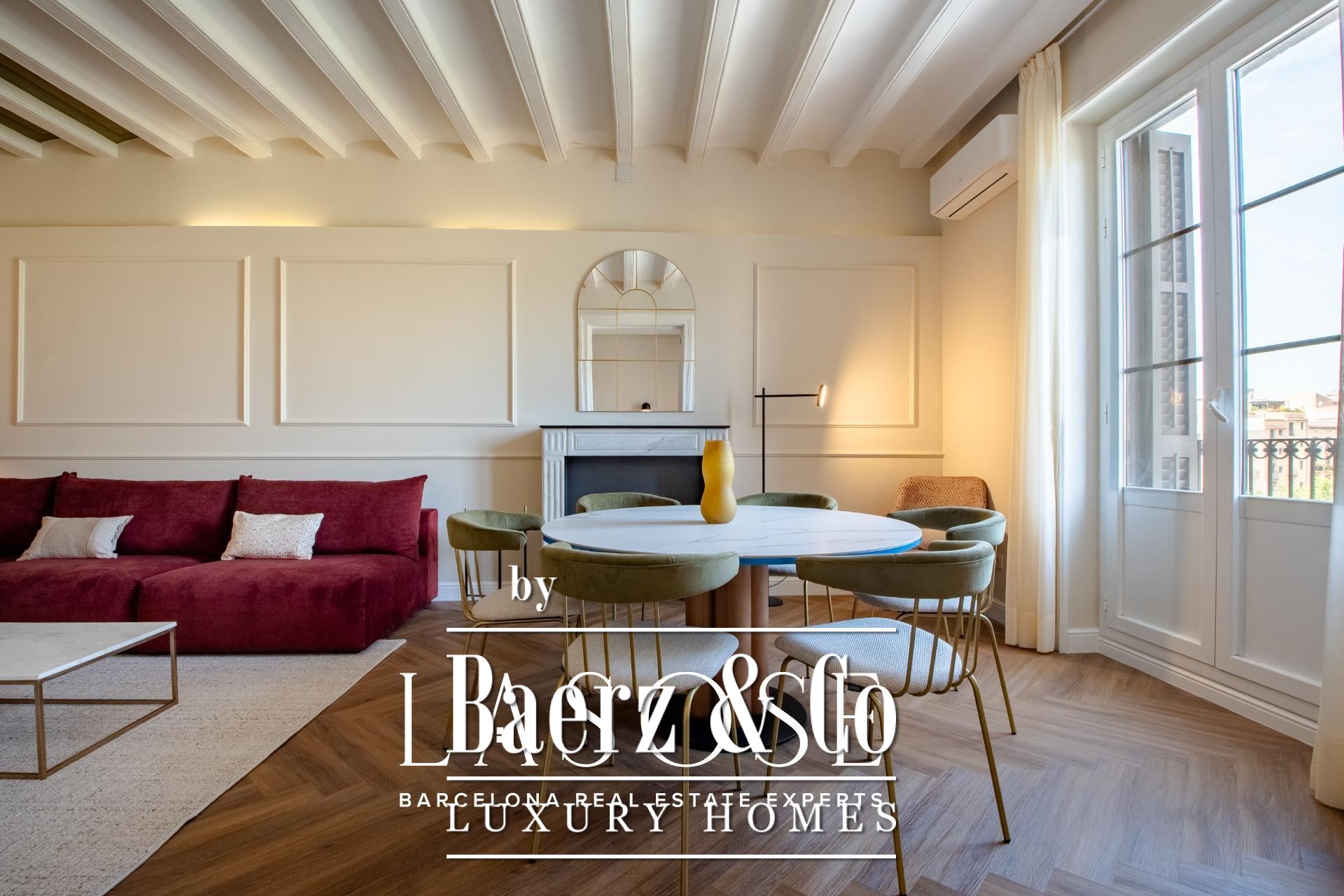 Located on the first floor of a listed historic building, this bright 119 m² apartment represents a unique opportunity to live in a privileged enclave in the center of Barcelona, where history and modern comfort meet.. . The building, located on Calle Isabel II, is part of the 19th-century urban development of Portal de Mar and Pla de Palau. This building is not only notable for its architectural value, but also for its cultural significance: it was Picasso's first home in Barcelona.. . *Layout and main features*. . 3 double bedrooms and 2 full bathrooms. . Spacious living-dining room with 3 meter-high coffered ceilings, which enhance the feeling of spaciousness and light. . 5.60 m² balcony overlooking one of the most emblematic areas of the city. . Separate kitchen, fully equipped with high-end appliances: refrigerator,