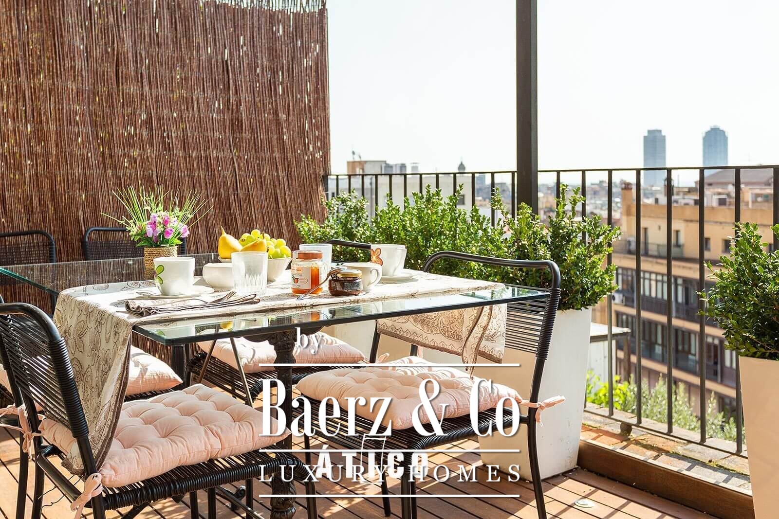 Penthouse Barcelona offers a compelling vantage point in the heart of the Eixample district. This furnished penthouse, available on an 11-month contract, sets a quiet tone above the city with 73 m² of built area and 65 m² of usable space. It is distinguished by two terraces, each framing panoramic views of the Mediterranean and the historic profile of Ciutat Vella.