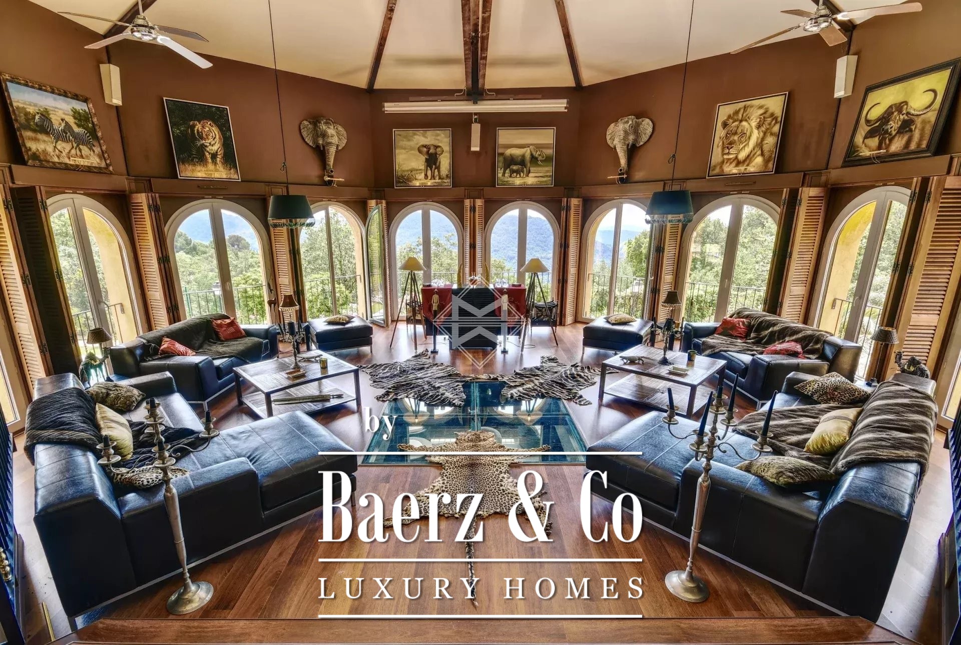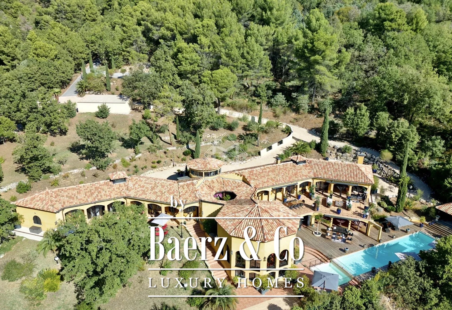 Featuring a helipad, this estate spans over 5.2 hectares, offering a peaceful and lush environment. It is just 1 hour from the coastline, 1h15 from Nice Airport, and 1h45 from Monaco.