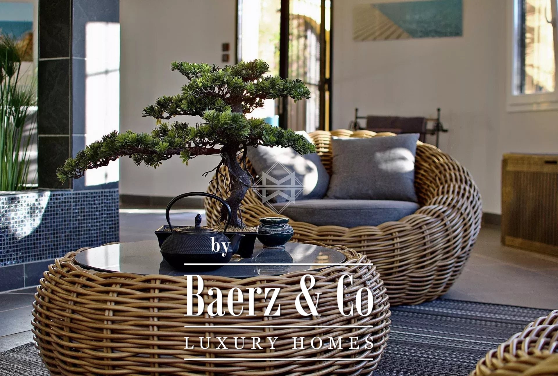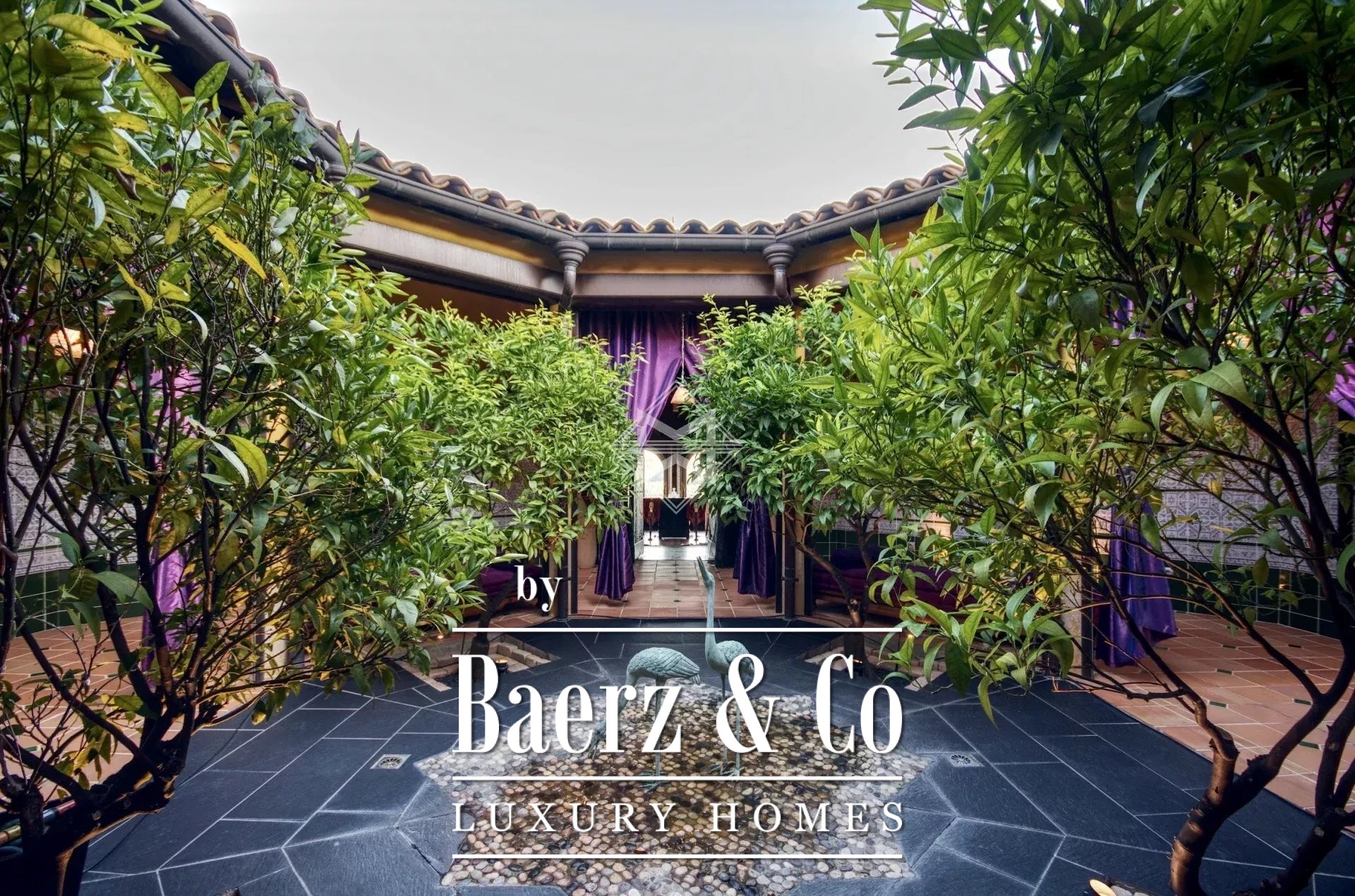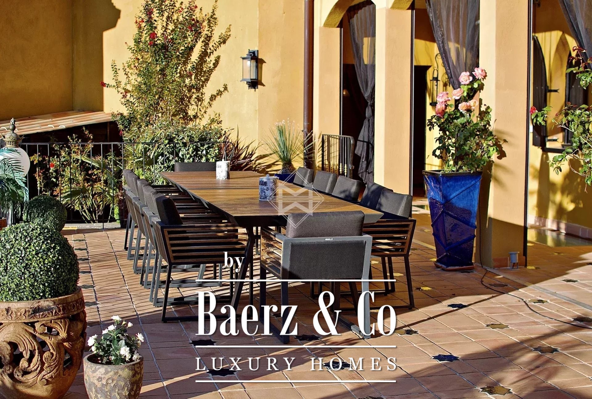 Blending Provençal and colonial inspirations, the main house boasts a living space of over 520 sqm, with spacious living areas, 6 bedrooms, a wellness area with a spa, a patio with a fountain, and a large swimming pool.