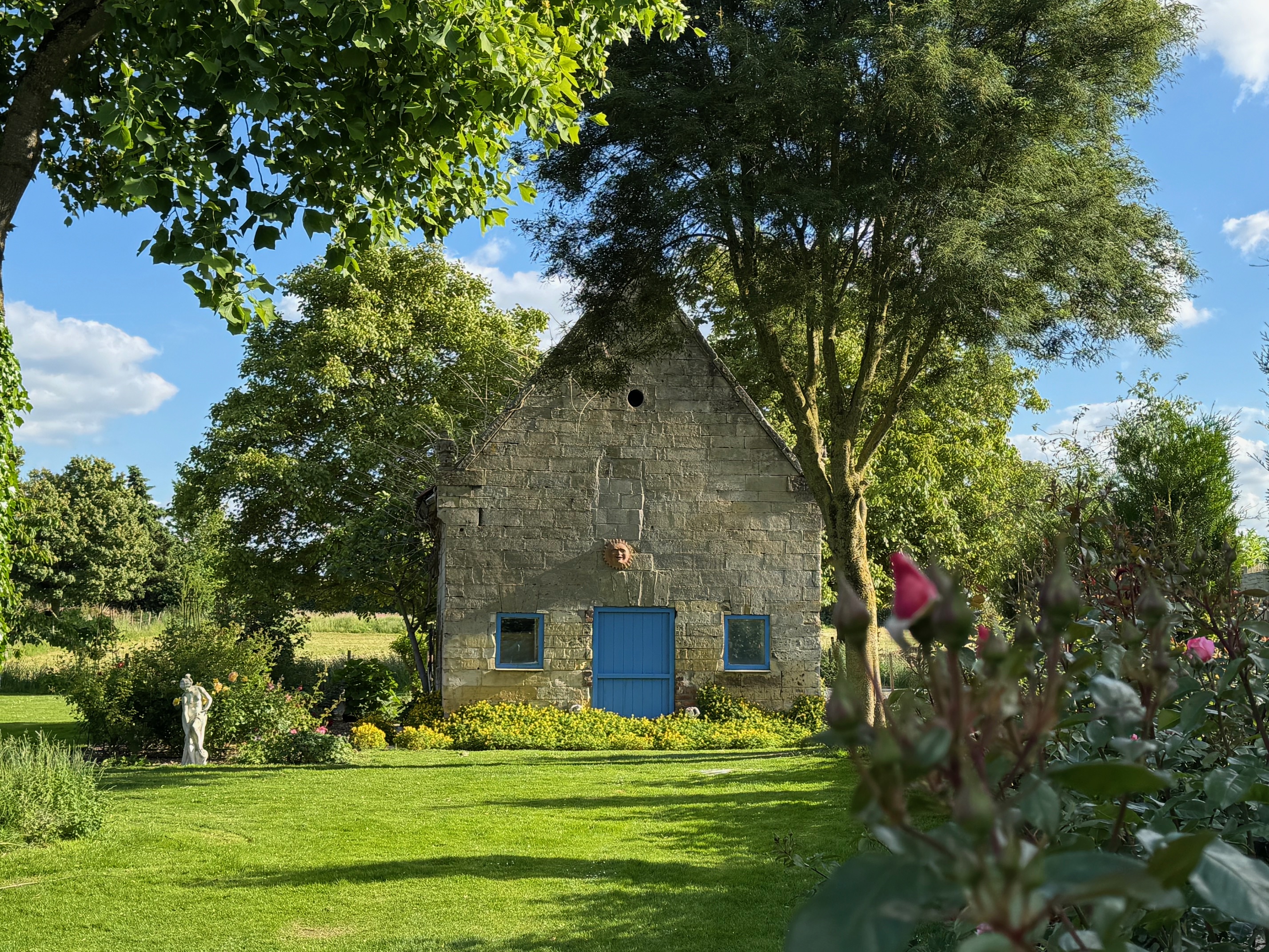Tall historic entrance gates lead into a striking, fully paved courtyard composed in a single refined material palette. Château gravel, a large French fountain and sight lines toward the rare marlstone windmill lend the space a quiet, timeless grandeur. The courtyard serves as the serene centre of the estate – a place where light, order, peace and quite converge.
