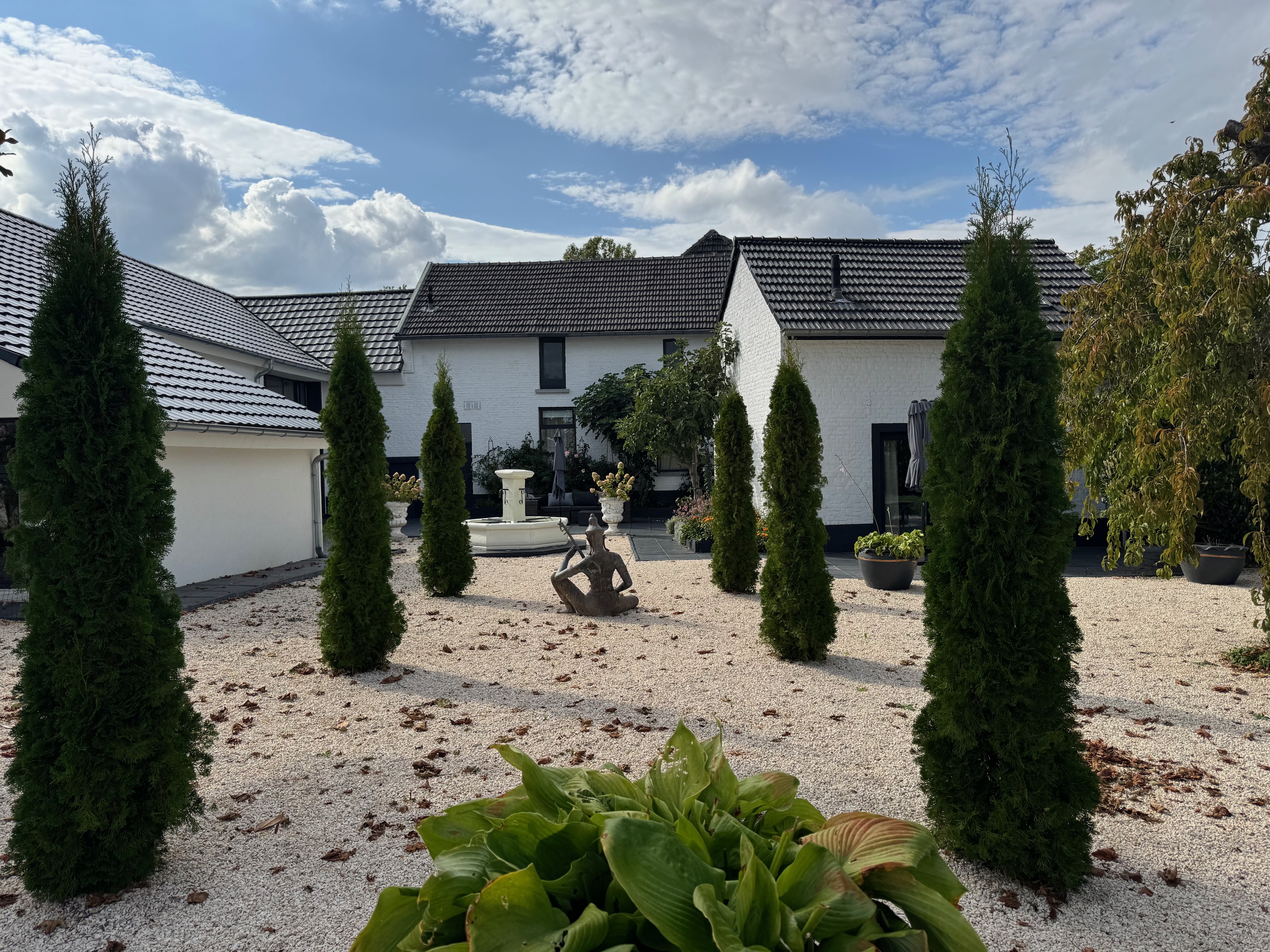 Designed for complete seclusion, the property offers the privacy normally associated with major European estates. Along one boundary, a tall, elegant row of slender evergreen conifer trees provides privacy, while the remaining sides open freely into the surrounding landscape. A low, softly undulating hedge, following the natural contours of the terrain, frames the far-reaching views and enhances the estate’s sense of openness. This subtle combination of privacy and expansive horizons is uncommon in the Netherlands.