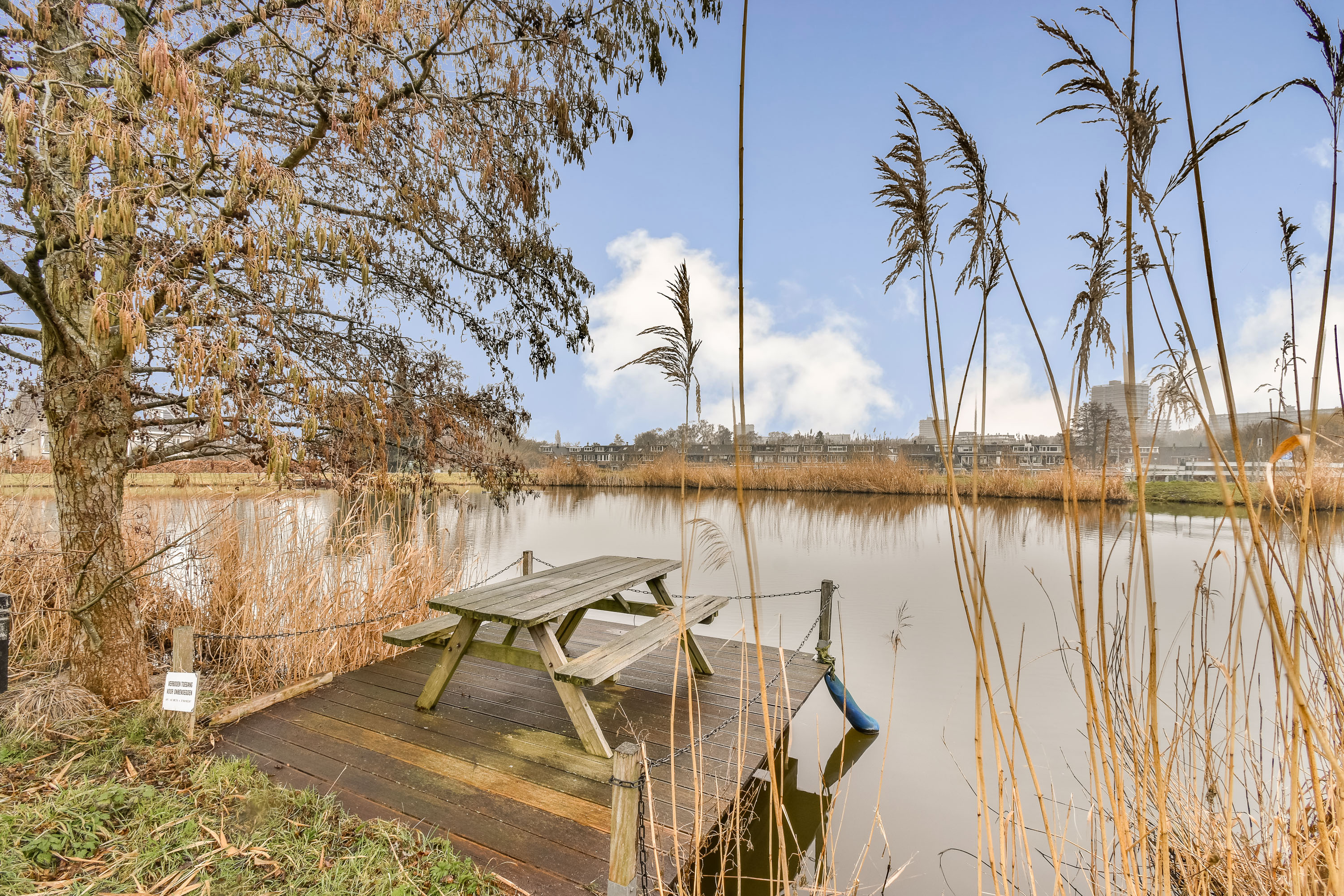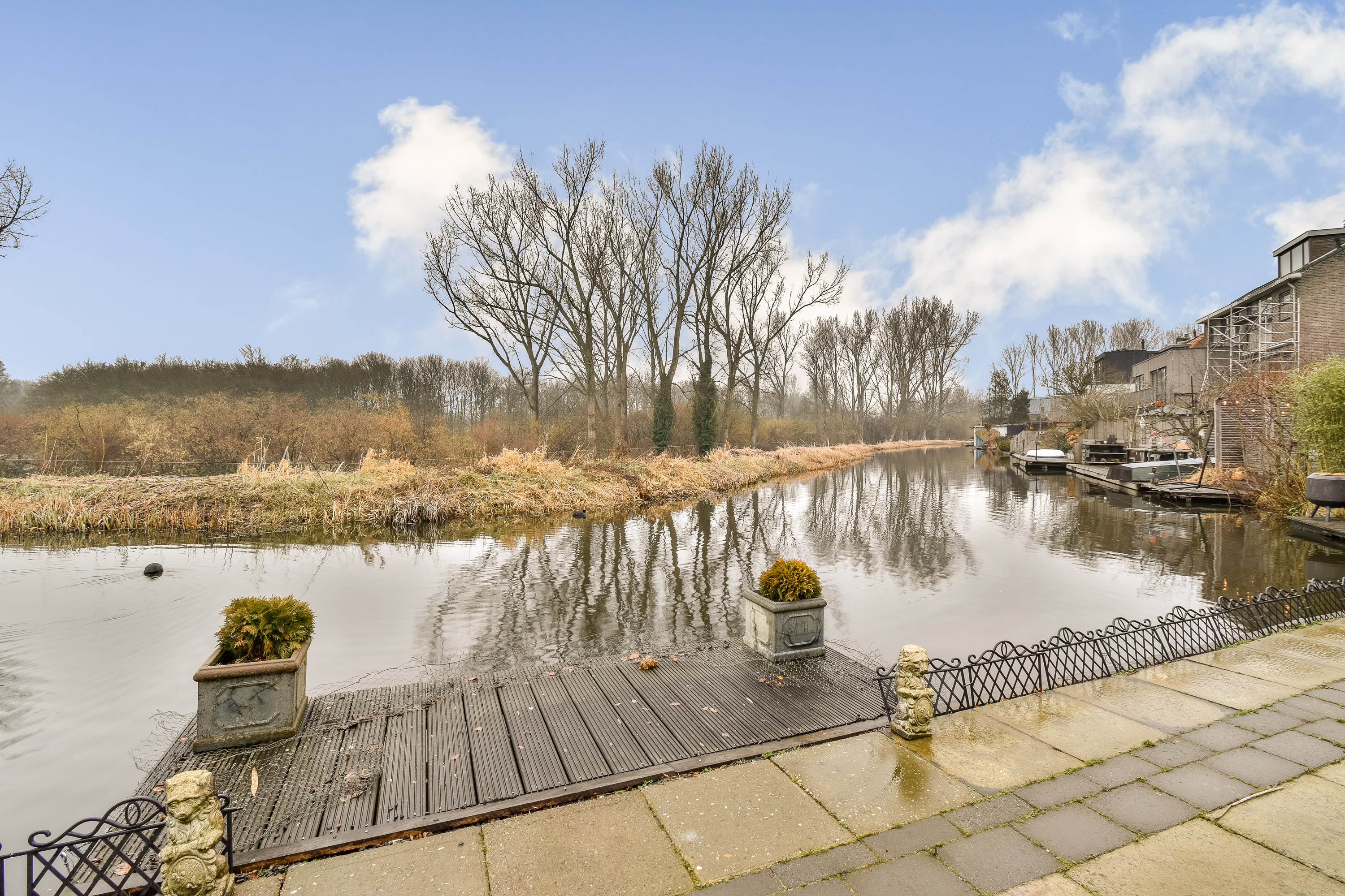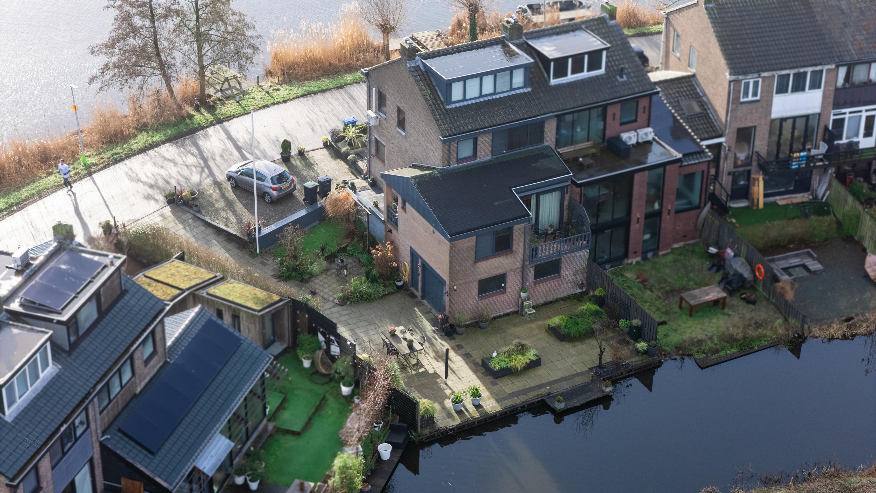 The spacious backyard faces north and offers wide views over greenery and the Lage Bergse Bos. A wonderful place to enjoy long summer evenings, drinks with friends, or simply to relax. There is also a jetty/deck at the water.