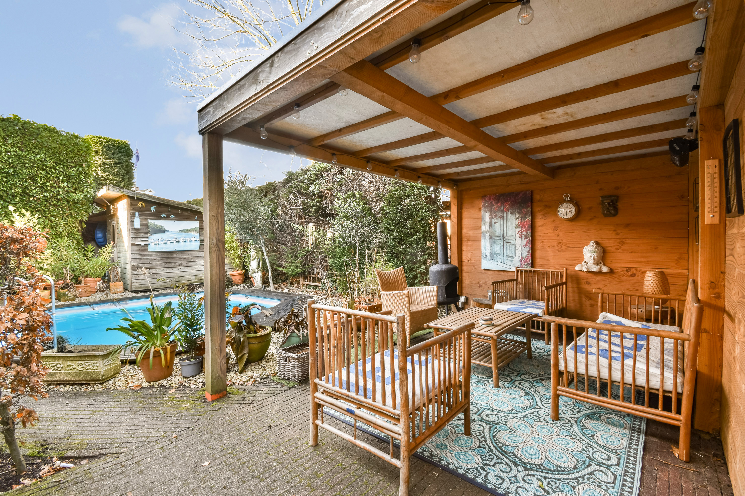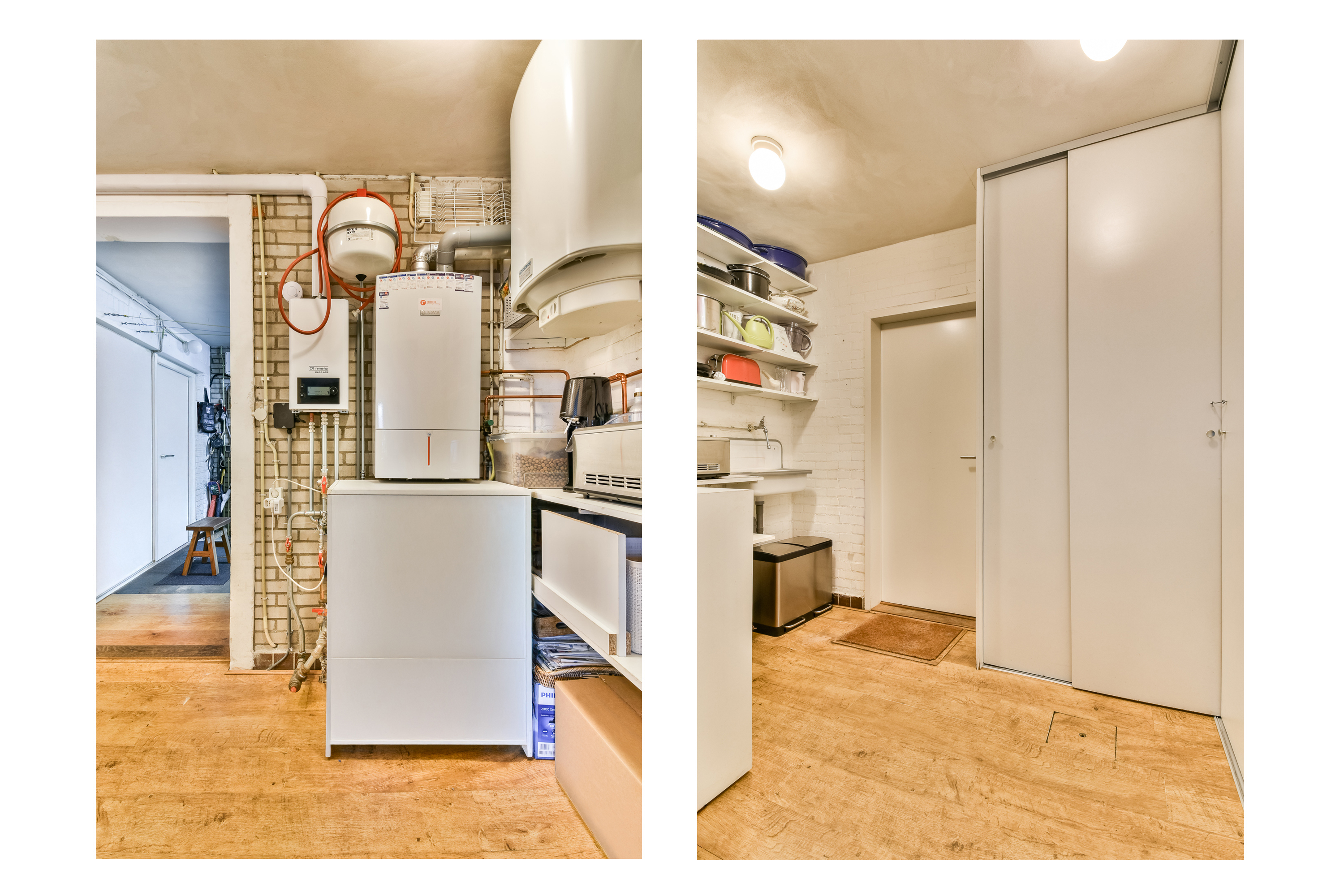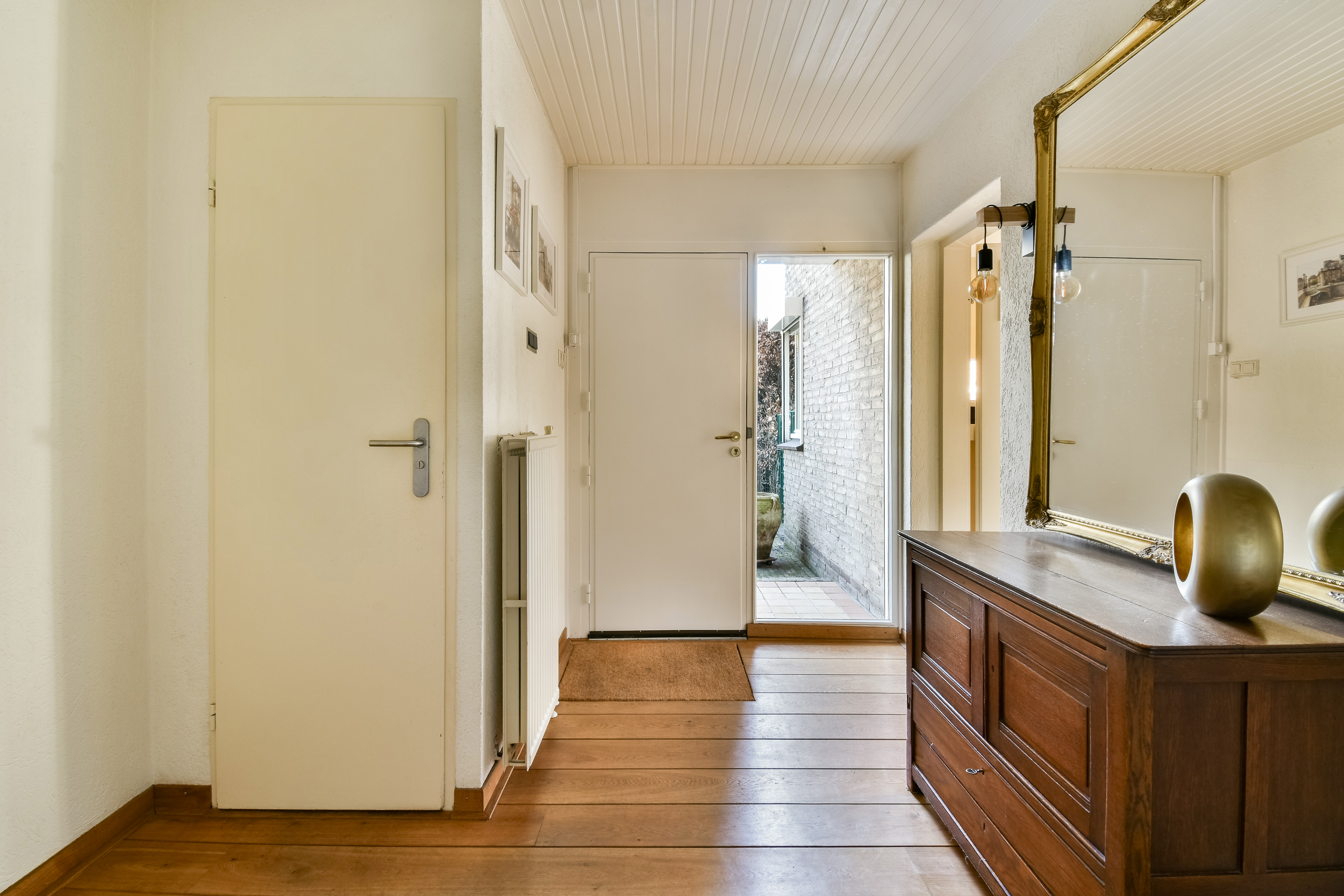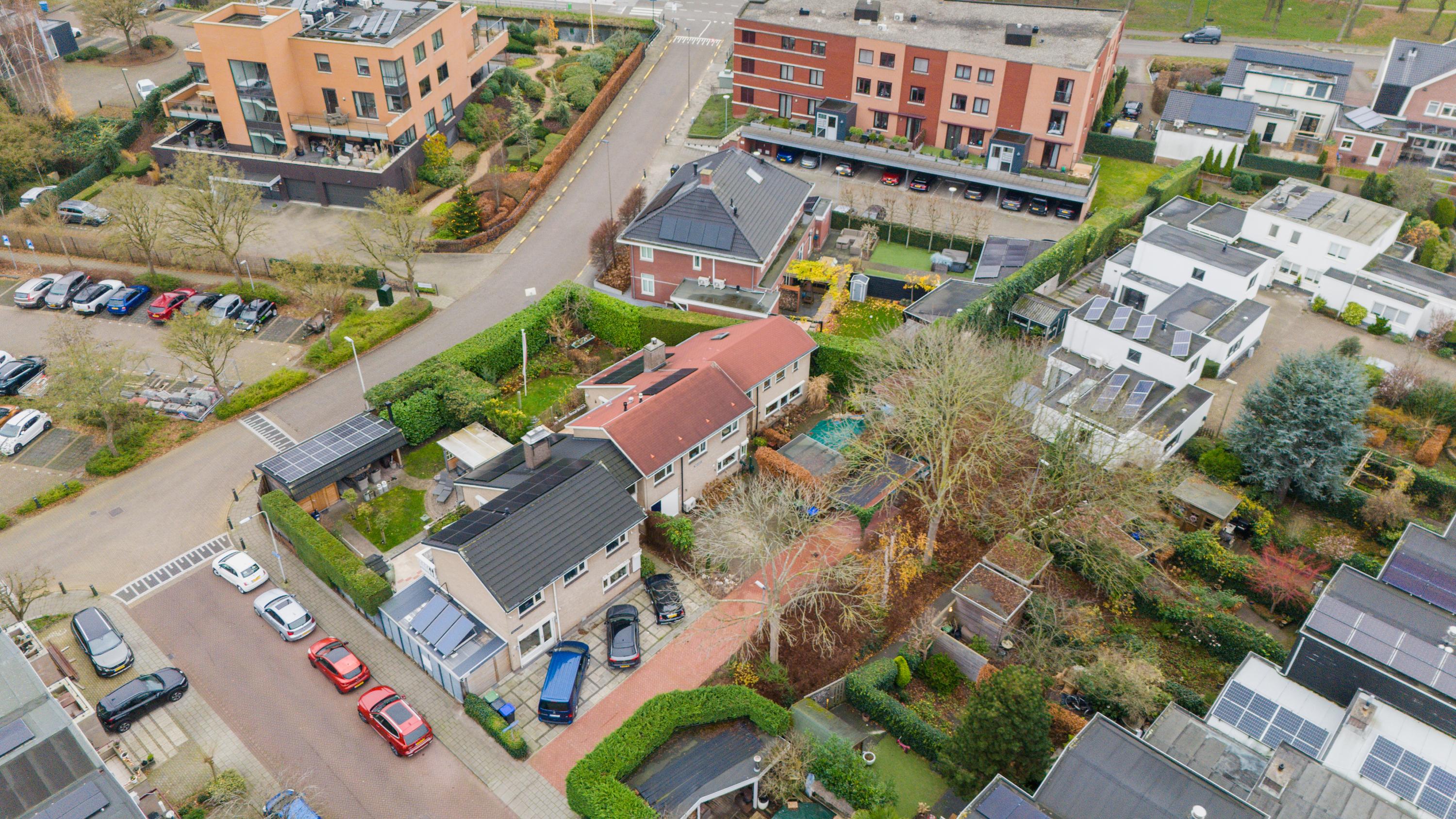 The garden is a private retreat on three sides of the house, facing southwest for optimal sunlight, offering a solar-heated outdoor pool, terraces, and established plantings. Modern comforts include double glazing, full insulation, mechanical ventilation, air conditioning, and energy class A status, with efficient heating and 14 solar panels. Security features and private on-site parking complete the sense of safety and exclusivity. This family house Bergschenhoek offers an elegant synthesis of spatial luxury and privacy, ready to meet modern living standards.