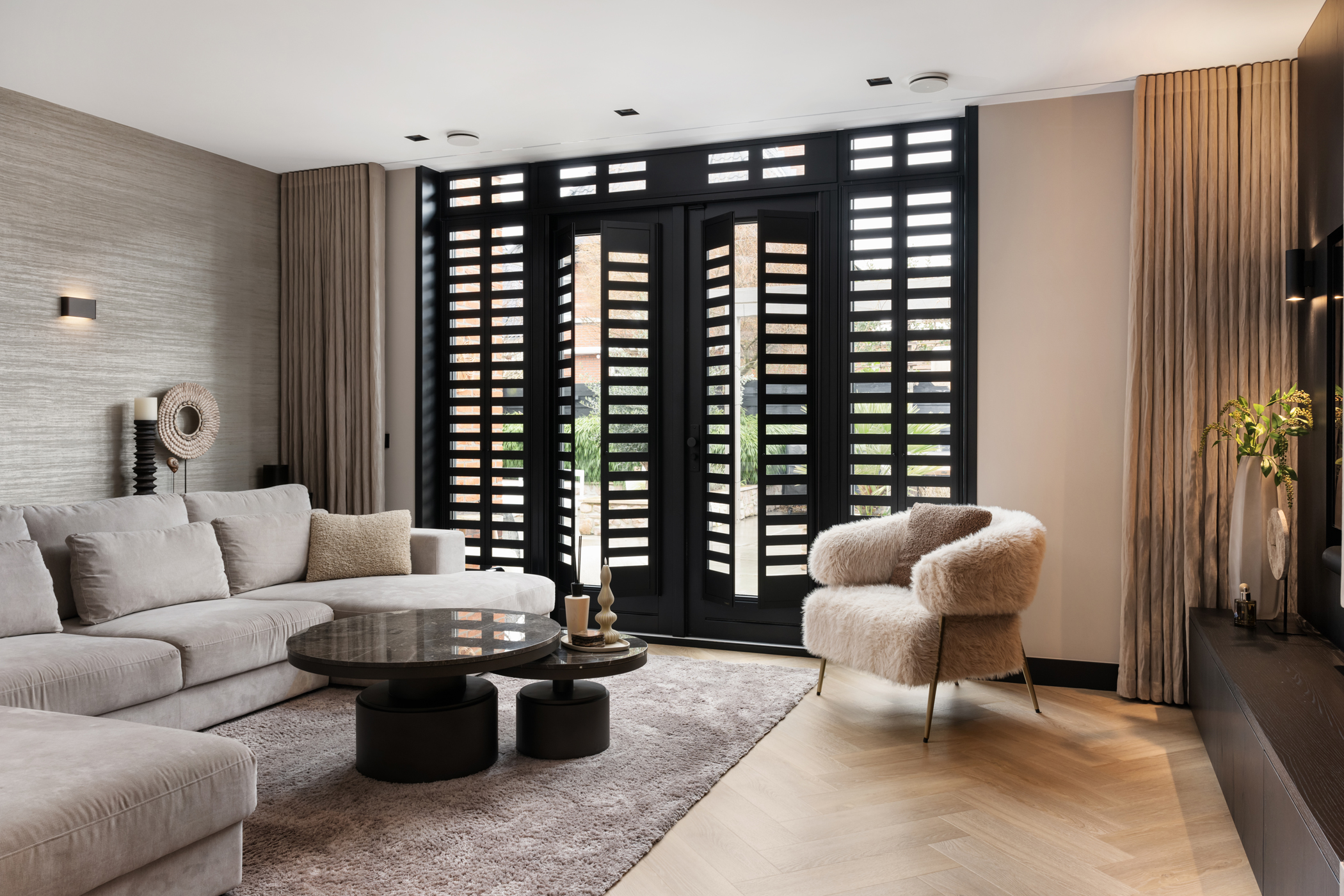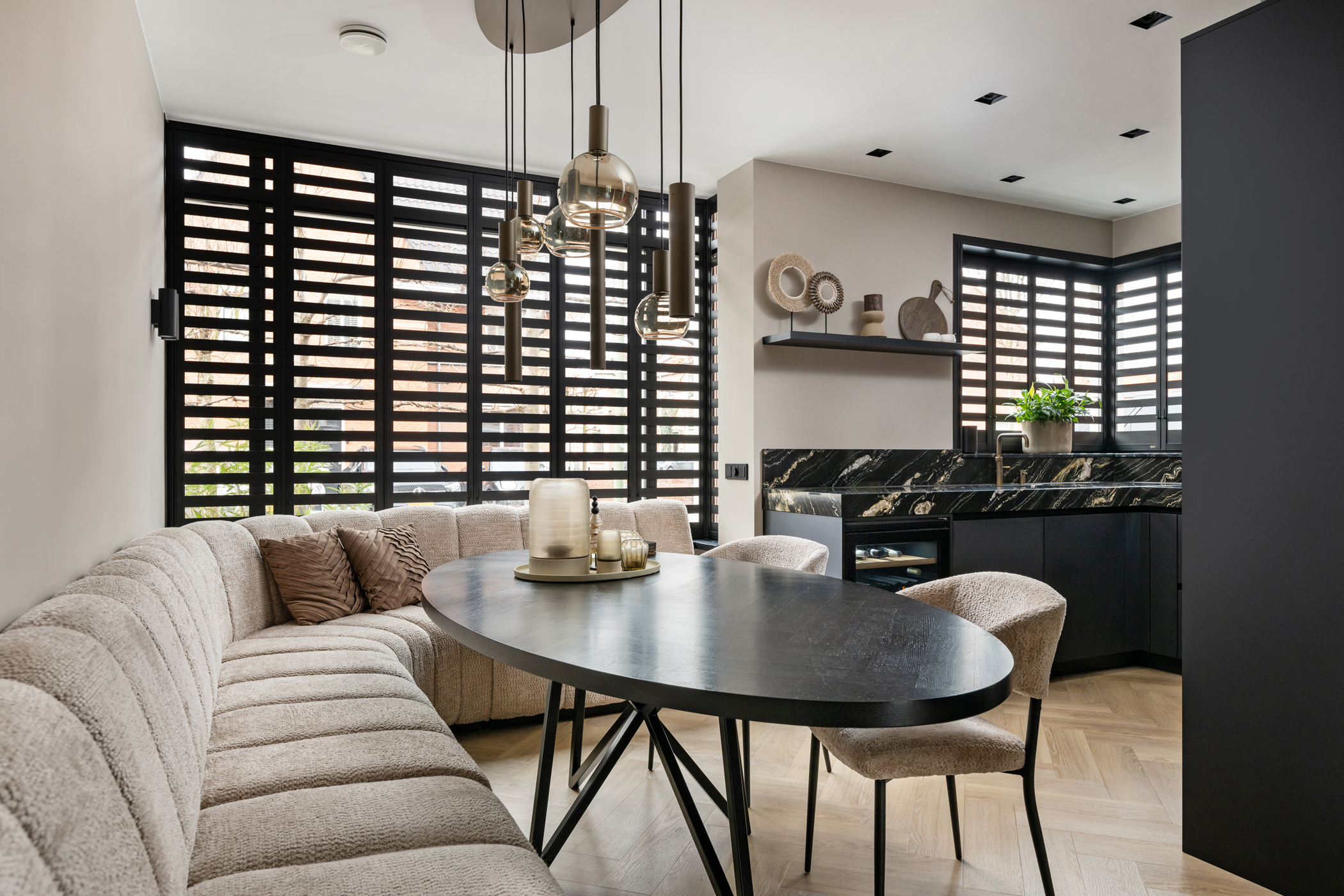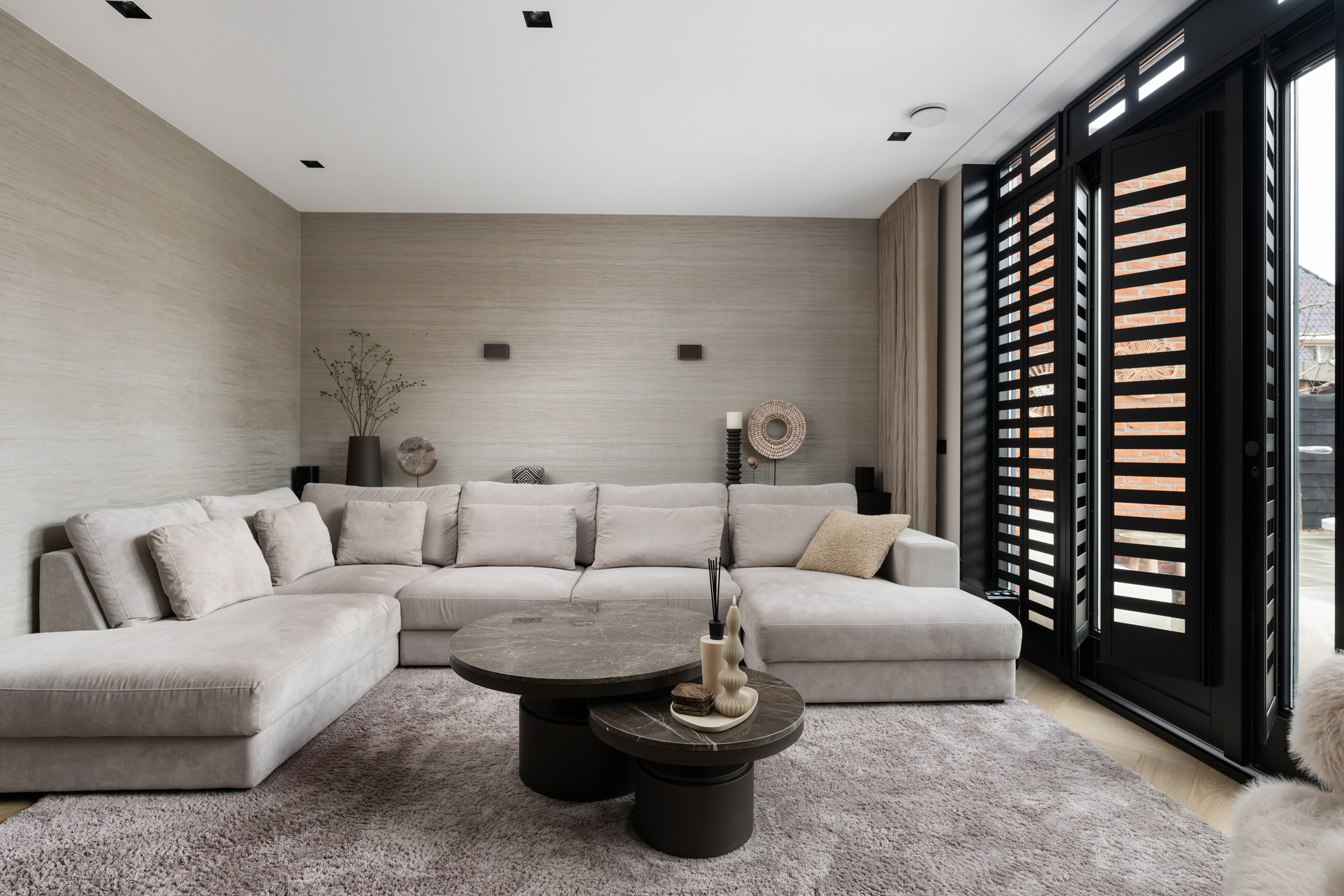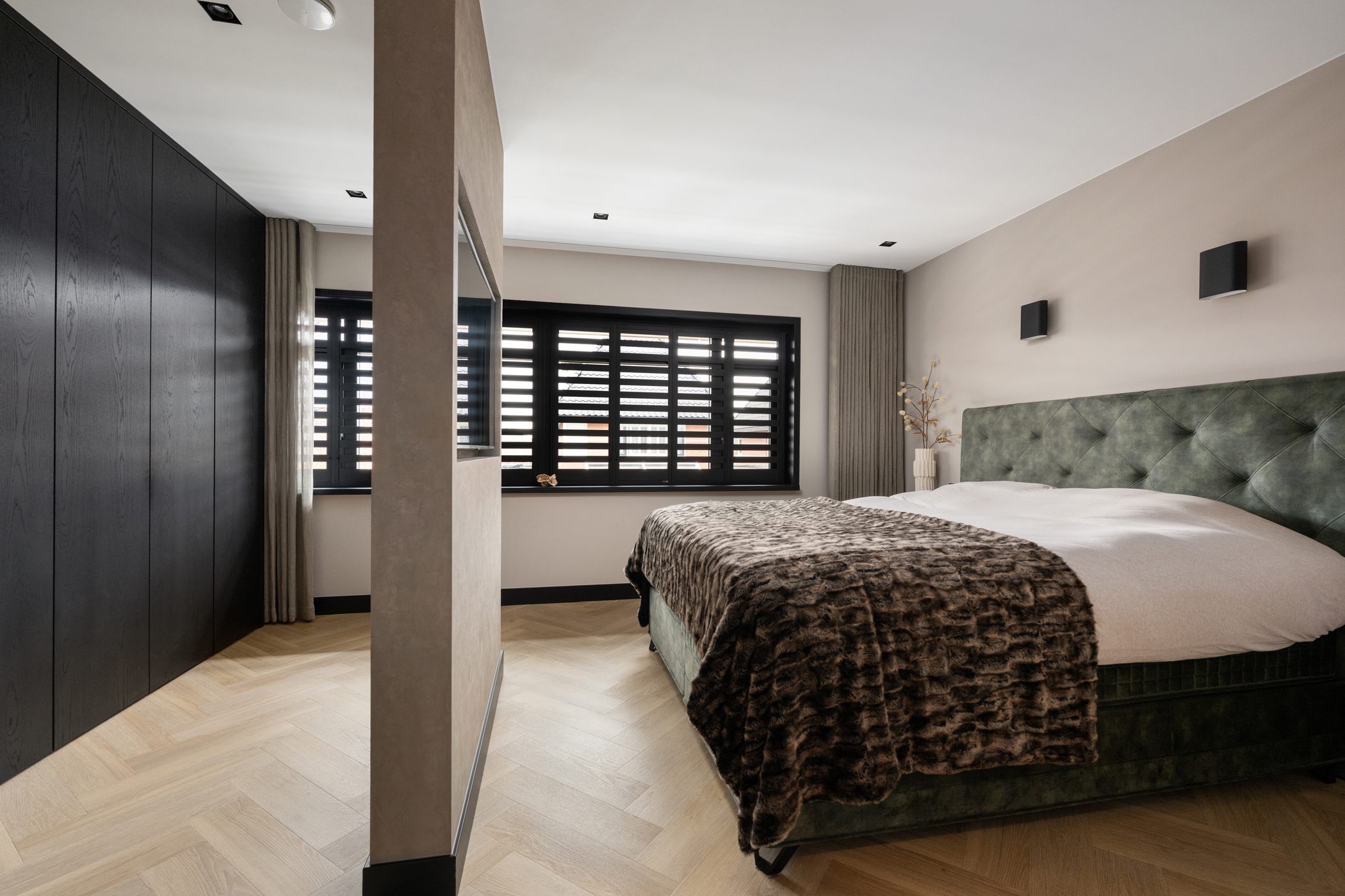 All bedrooms are finished with aluminium shutters, creating a calm and luxurious appearance throughout the home.