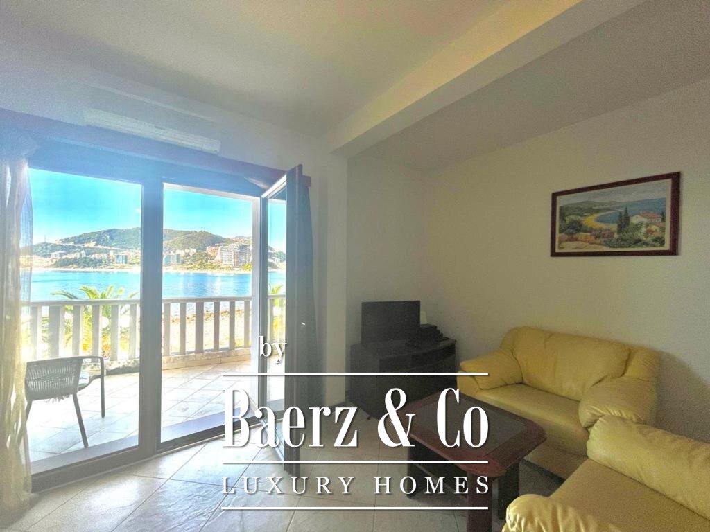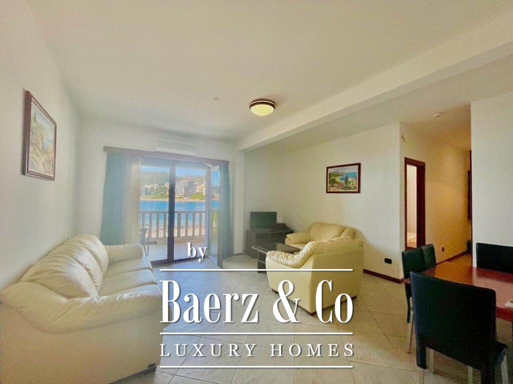 Apartment Budva quietly places you just 10 metres from the Adriatic shore, creating a rare sense of proximity to the sea. This 95 m² residence, thoughtfully situated on the first floor, is finished and furnished, offering a sense of completeness from the moment you arrive. The spatial design encompasses a hallway, living room with kitchen and dining area, three bedrooms, two bathrooms, and two terraces—everyday life flows easily, accentuated by unobstructed views of both the sea and the mountains.