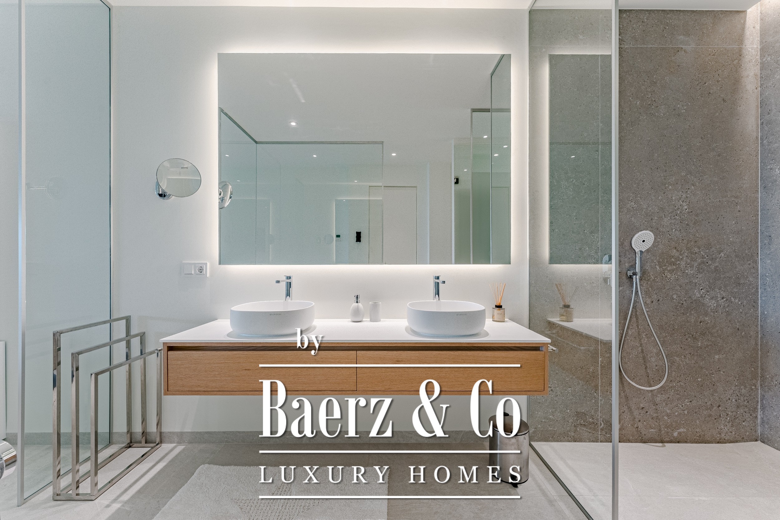 Residents enjoy a private lift, carport with guest parking, air conditioning, solar-heated water, and an advanced lighting and irrigation system. The fully equipped kitchen and options for customisation reflect the villa's focus on both beauty and functionality.