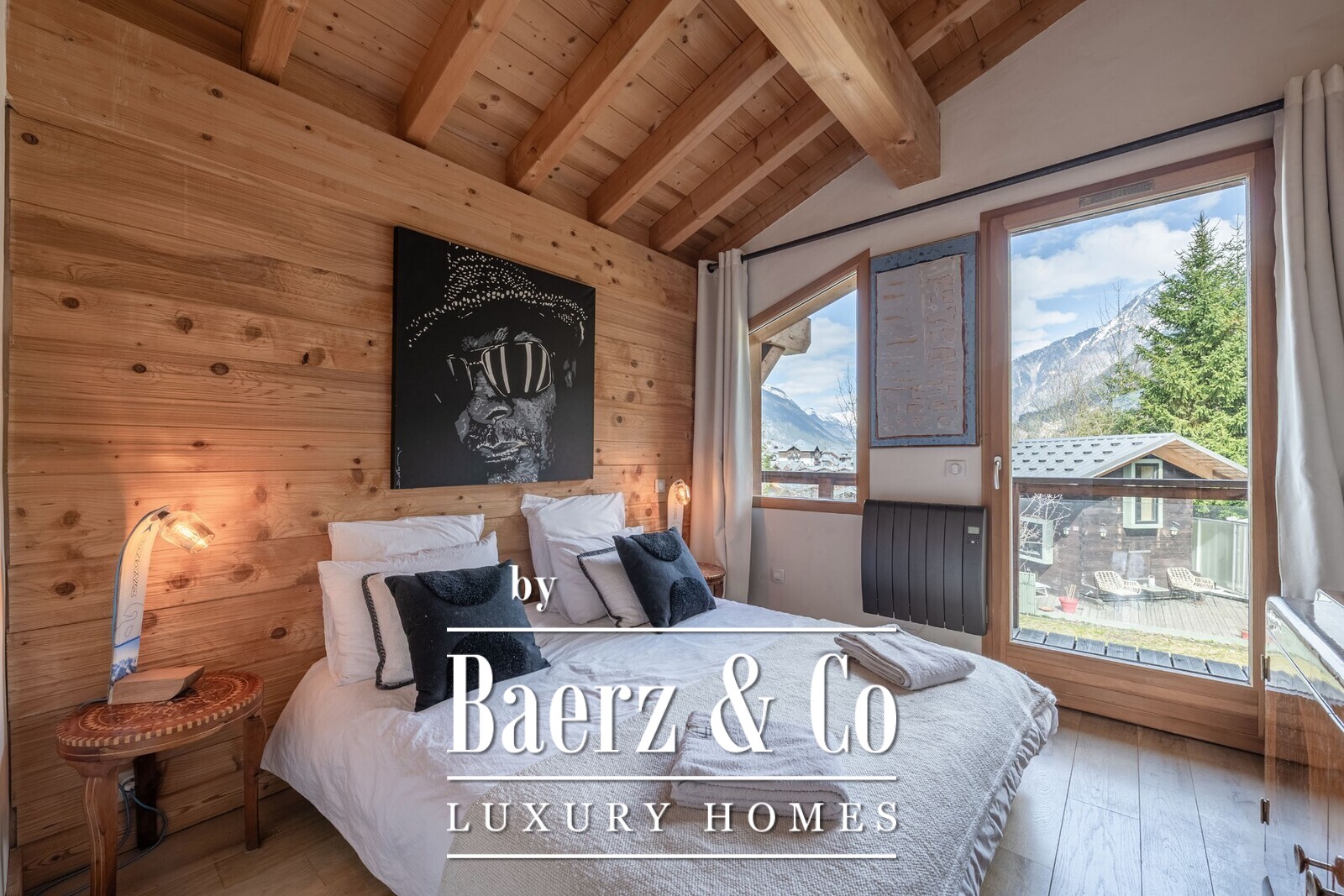 Located just a few steps from the center of Chamonix, this 160 m² chalet offers an unobstructed view of Mont-Blanc. Its spacious living area with a cathedral ceiling and open kitchen provide light and conviviality. It features 5 en-suite bedrooms, combining comfort and privacy.