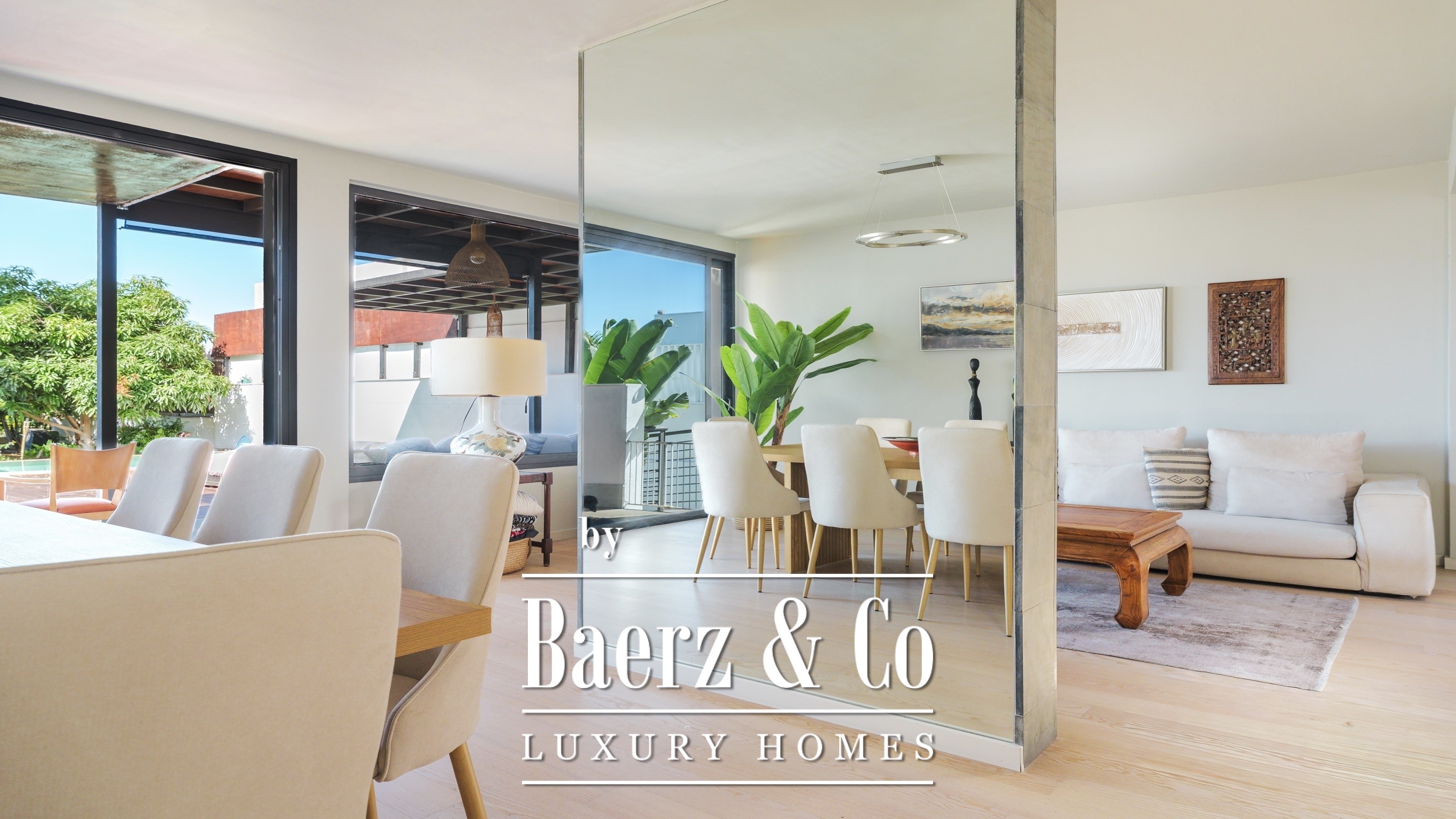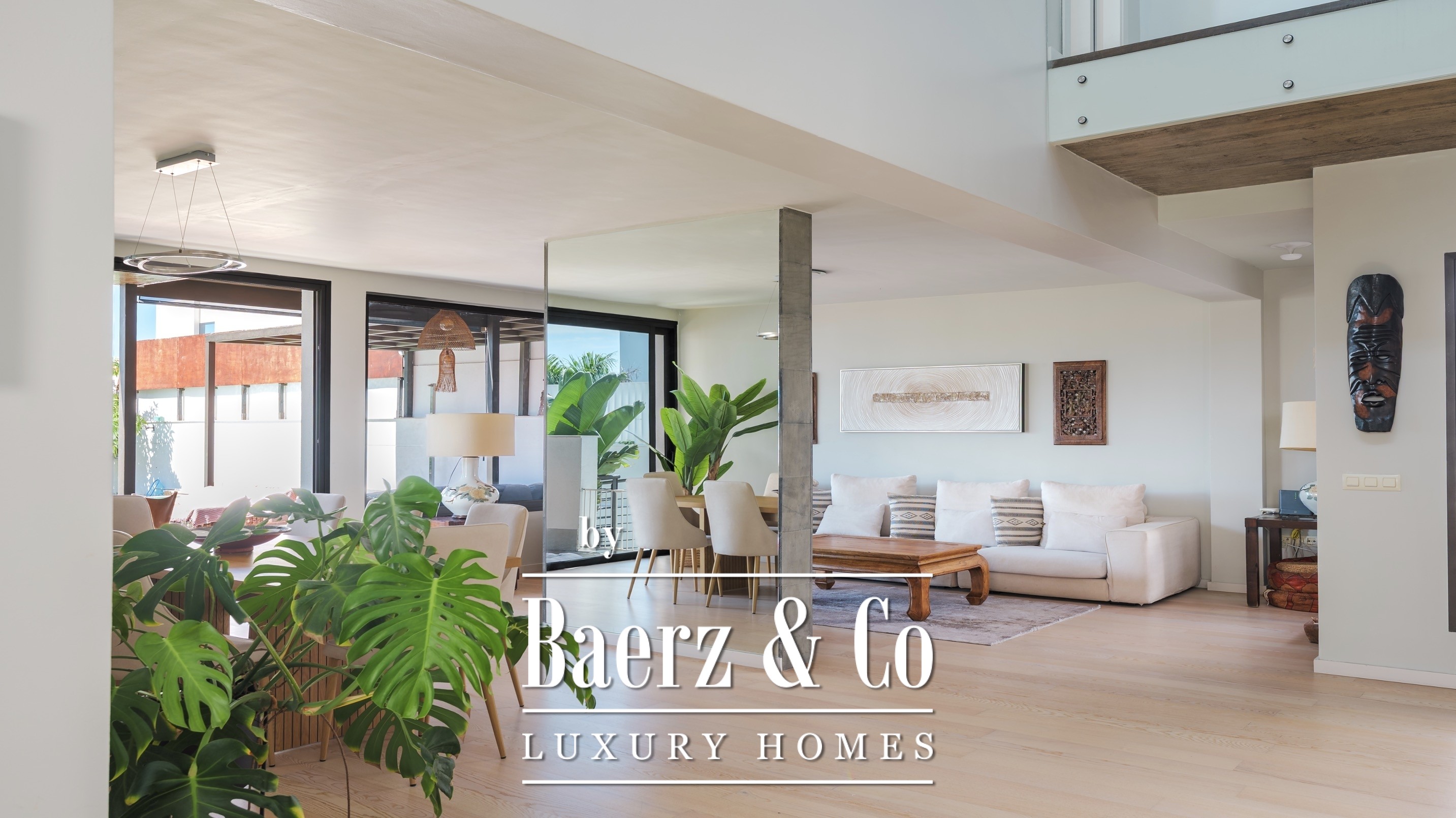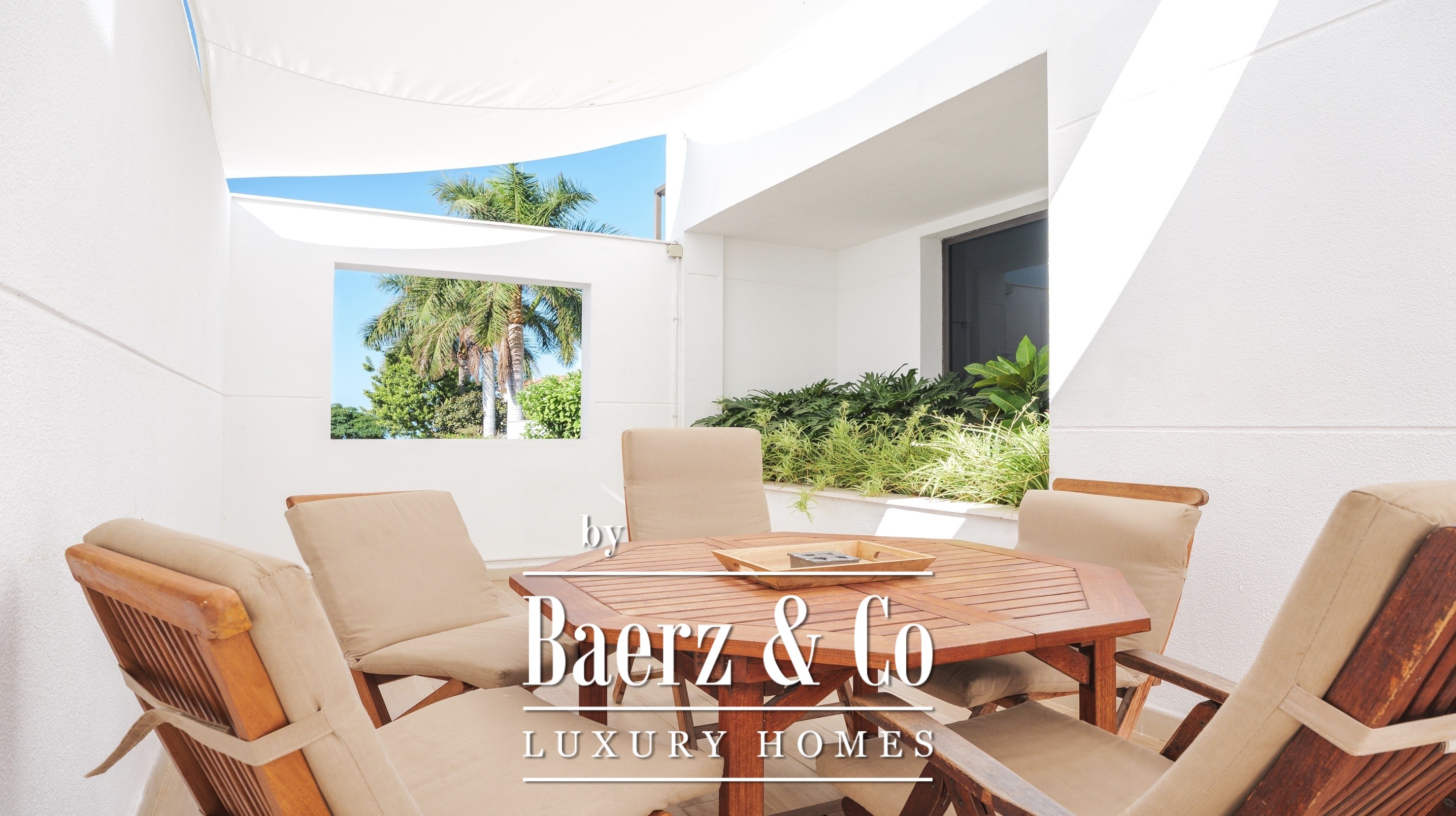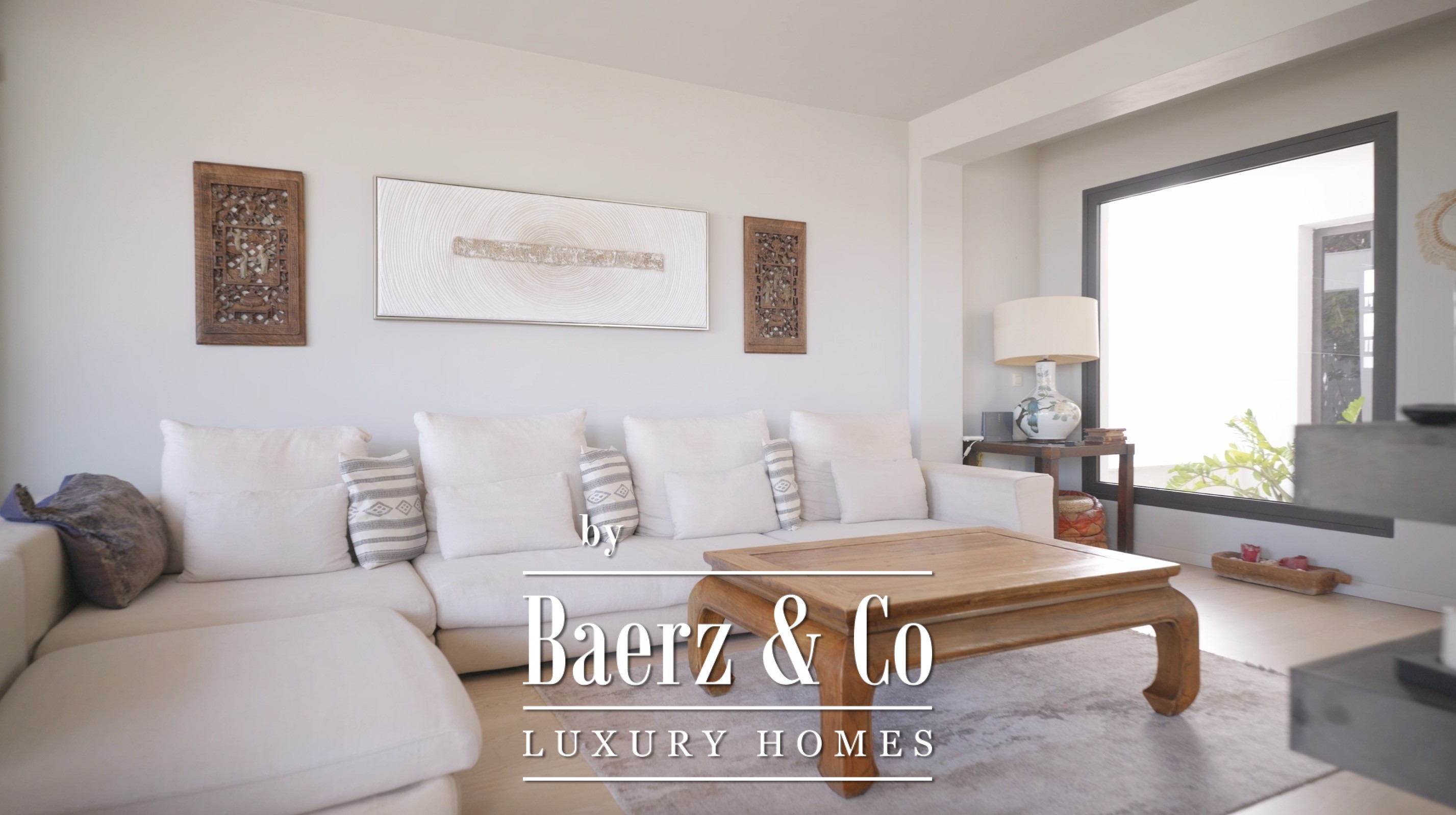There are four bedrooms with en-suite bathrooms, including the master bedroom with a dressing room, a large bathroom and a private balcony with sea views.