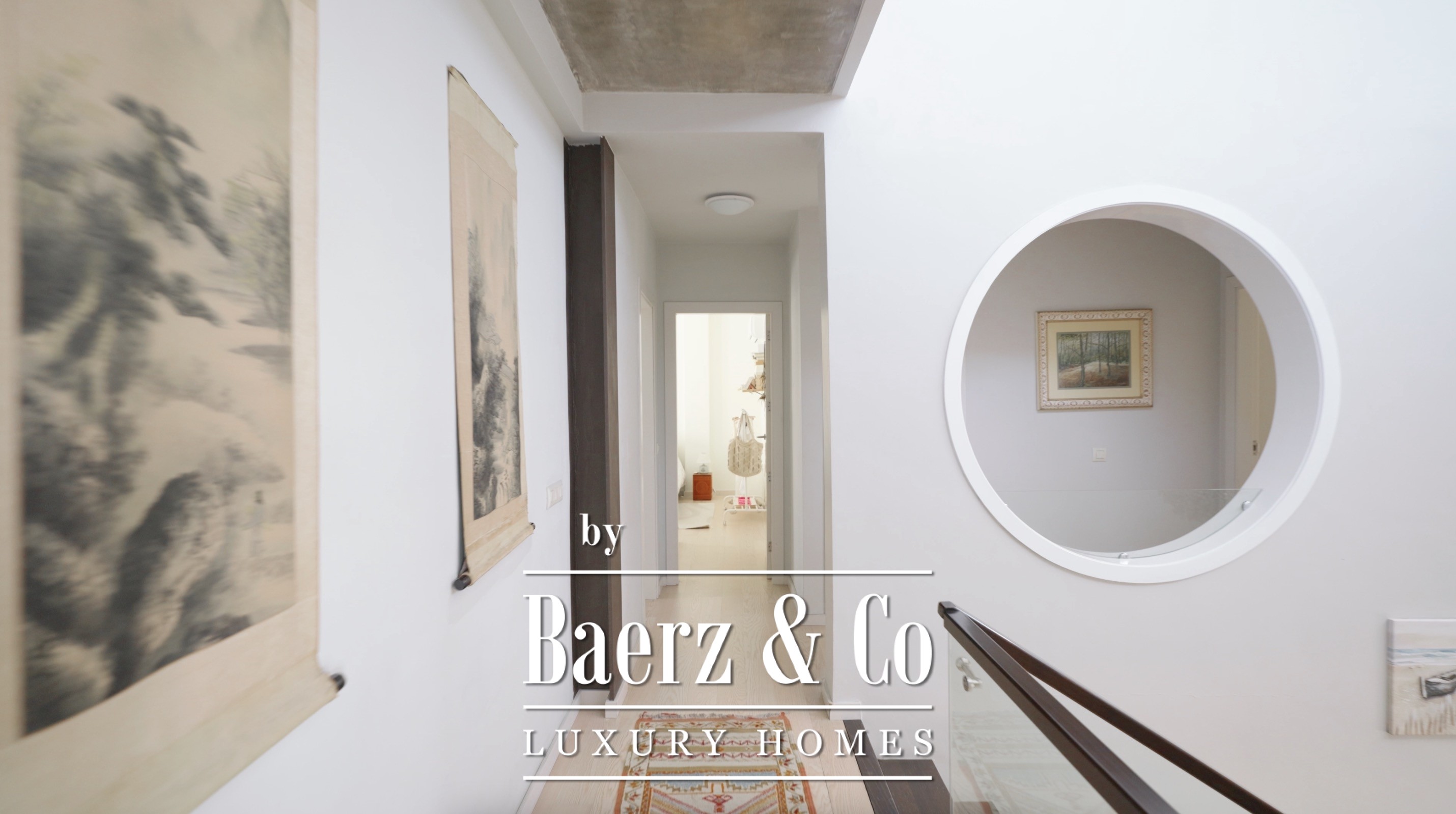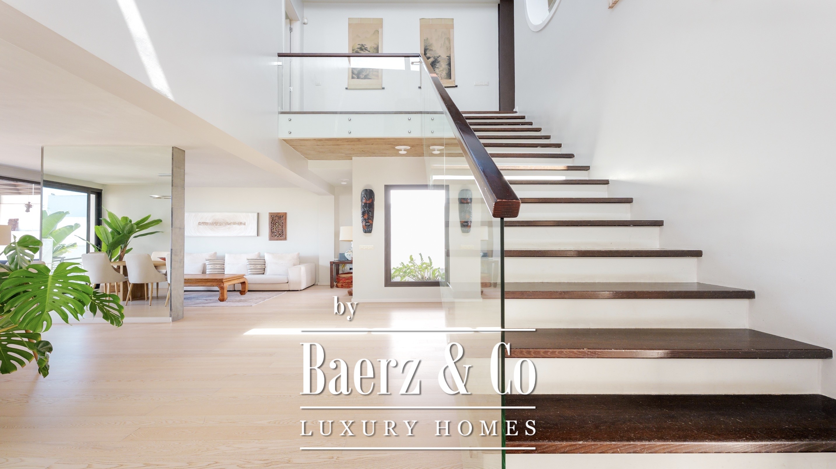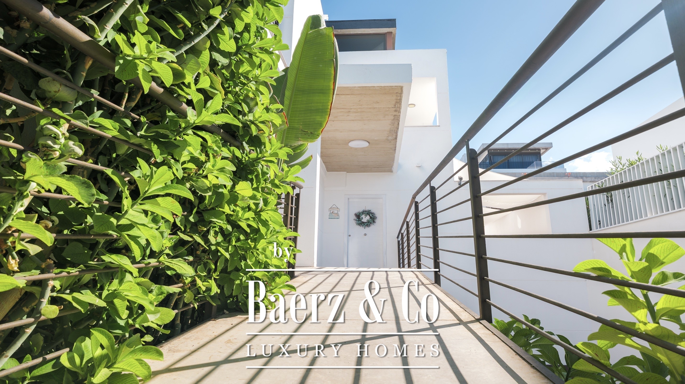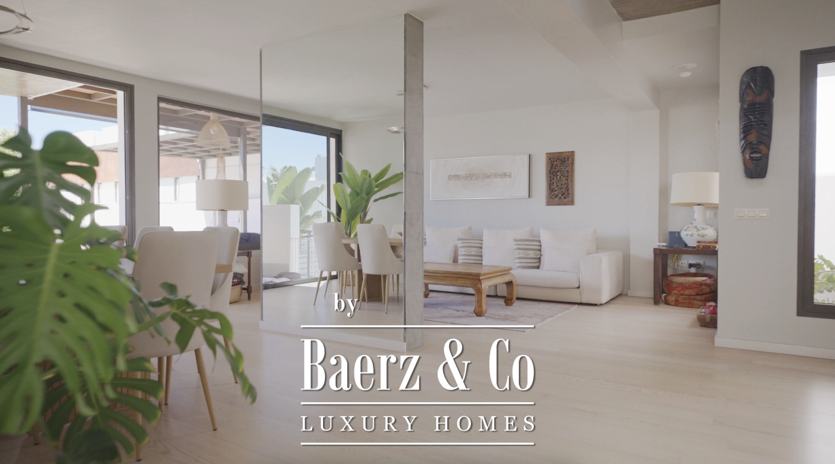 There are four bedrooms with en-suite bathrooms, including the master bedroom with a dressing room, a large bathroom and a private balcony with sea views.