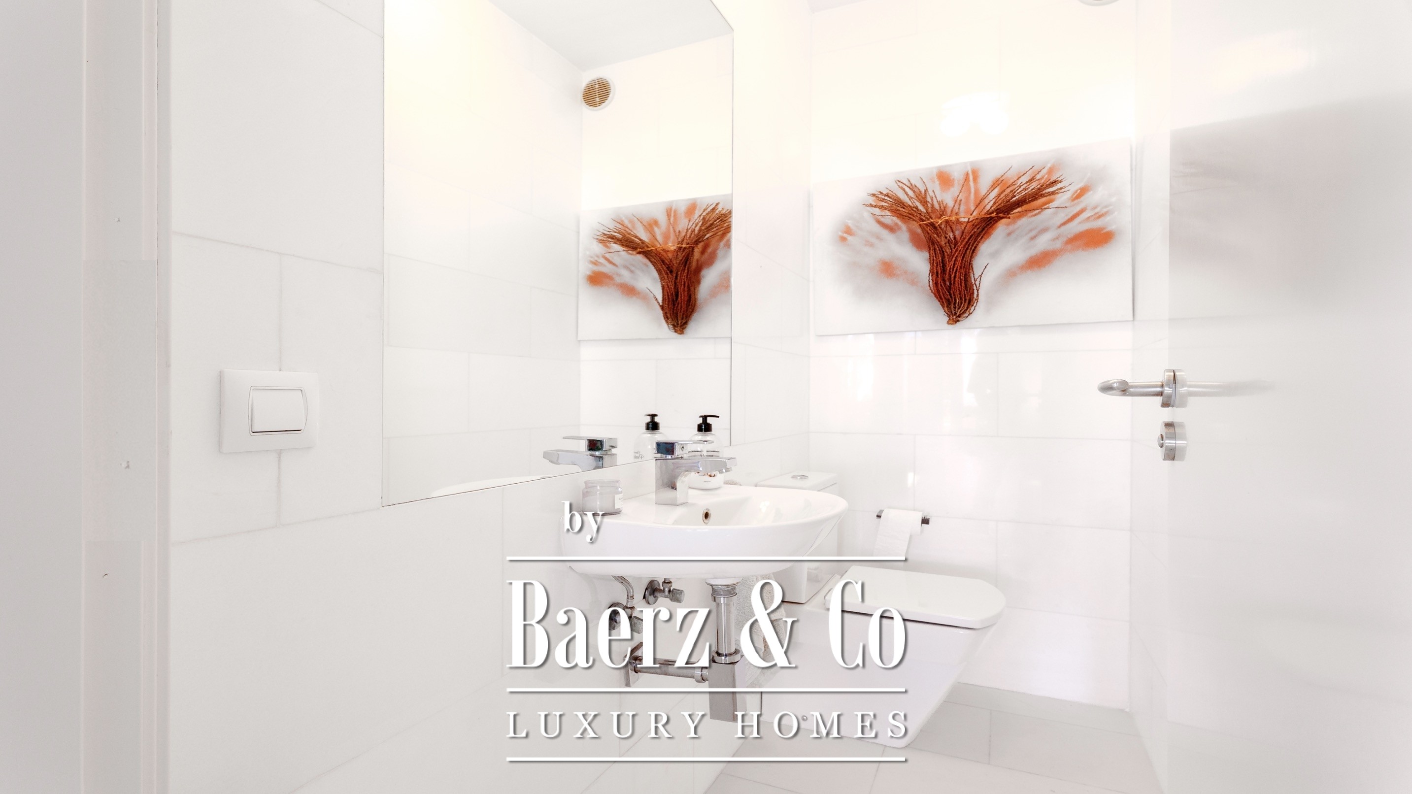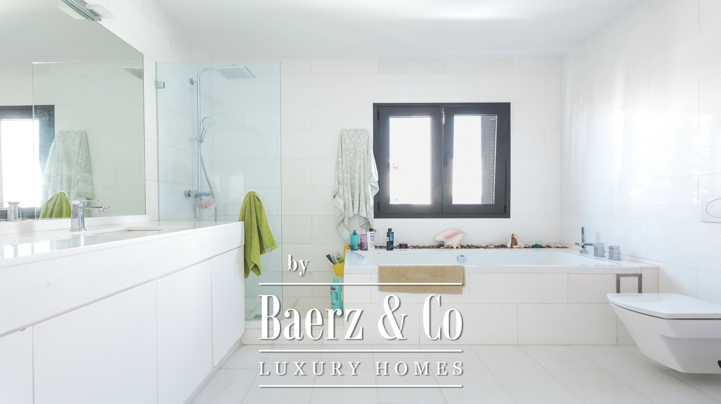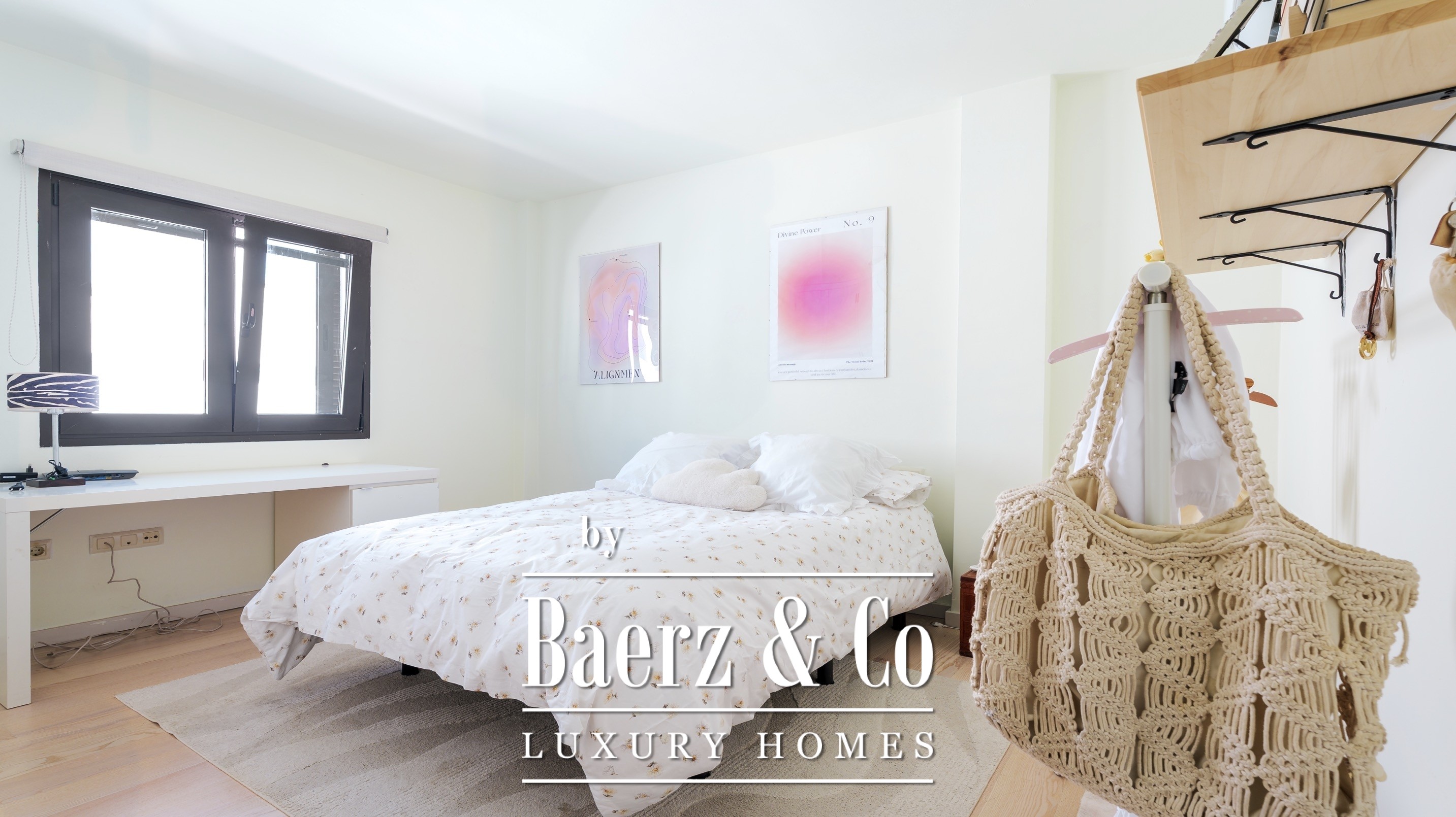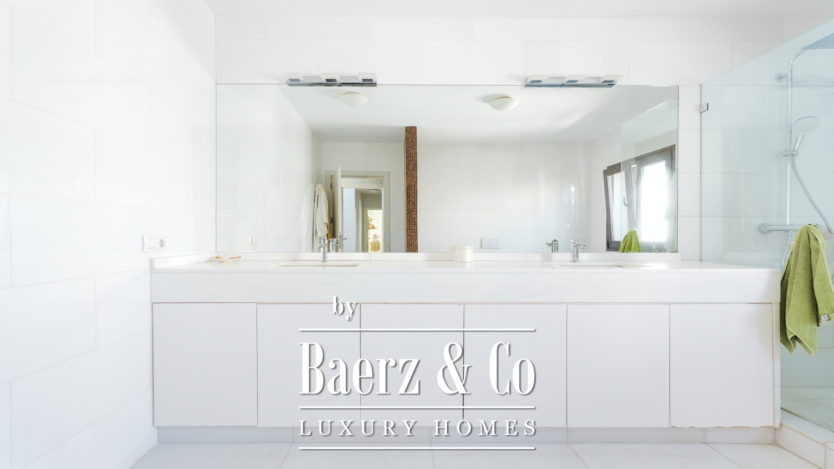 There are four bedrooms with en-suite bathrooms, including the master bedroom with a dressing room, a large bathroom and a private balcony with sea views.