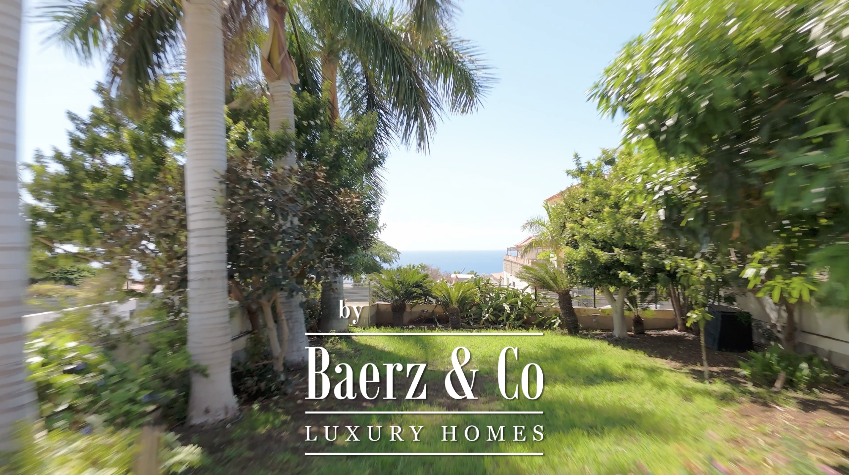 The garden is located at the entrance to the property, with a natural setting featuring large palm trees, mature vegetation and fruit trees, creating an atmosphere of tranquillity and privacy. The private pool faces the sea.