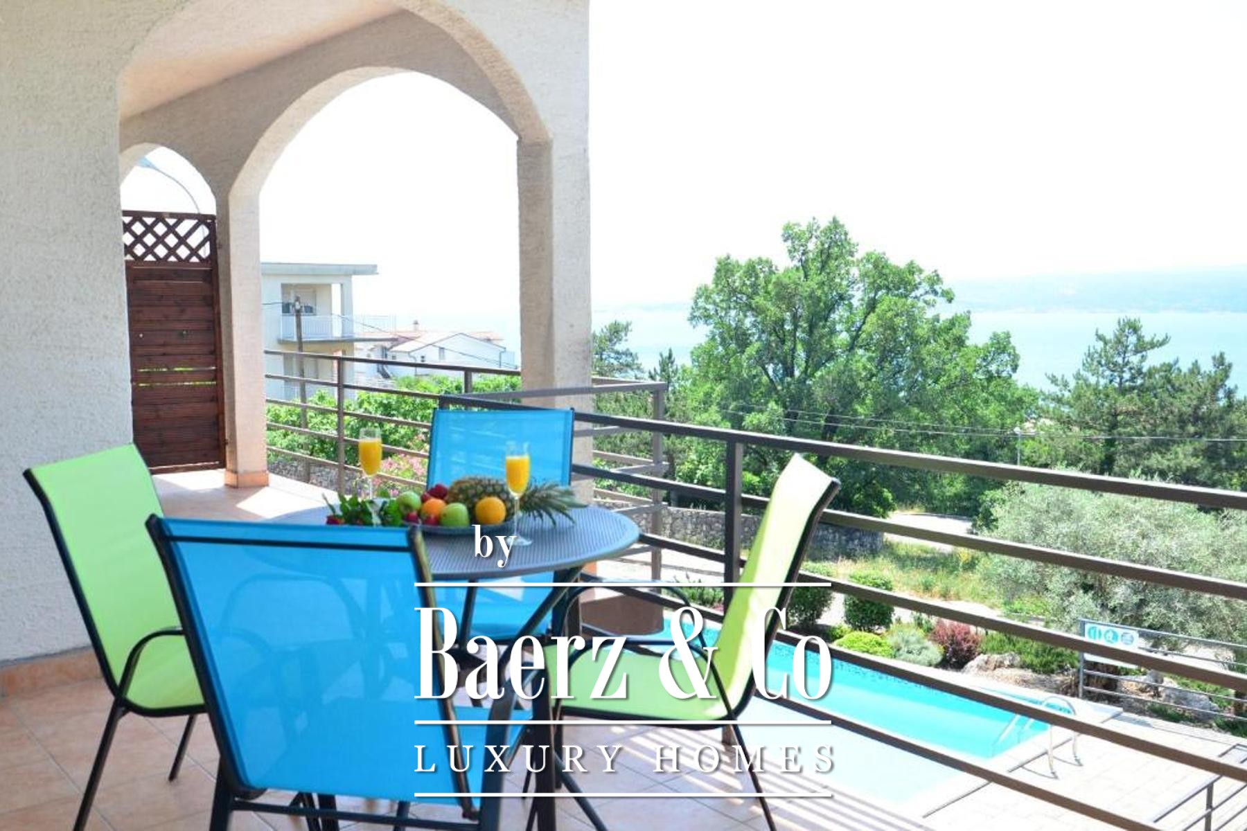 Apartment house Crikvenica offers a rare vantage point over the Adriatic, set on a landscaped 759 m² plot that commands sweeping sea vistas. This detached property encompasses 602 m² of living space across a ground floor, two upper levels and a high attic, quietly positioned just 500 metres from the coast.