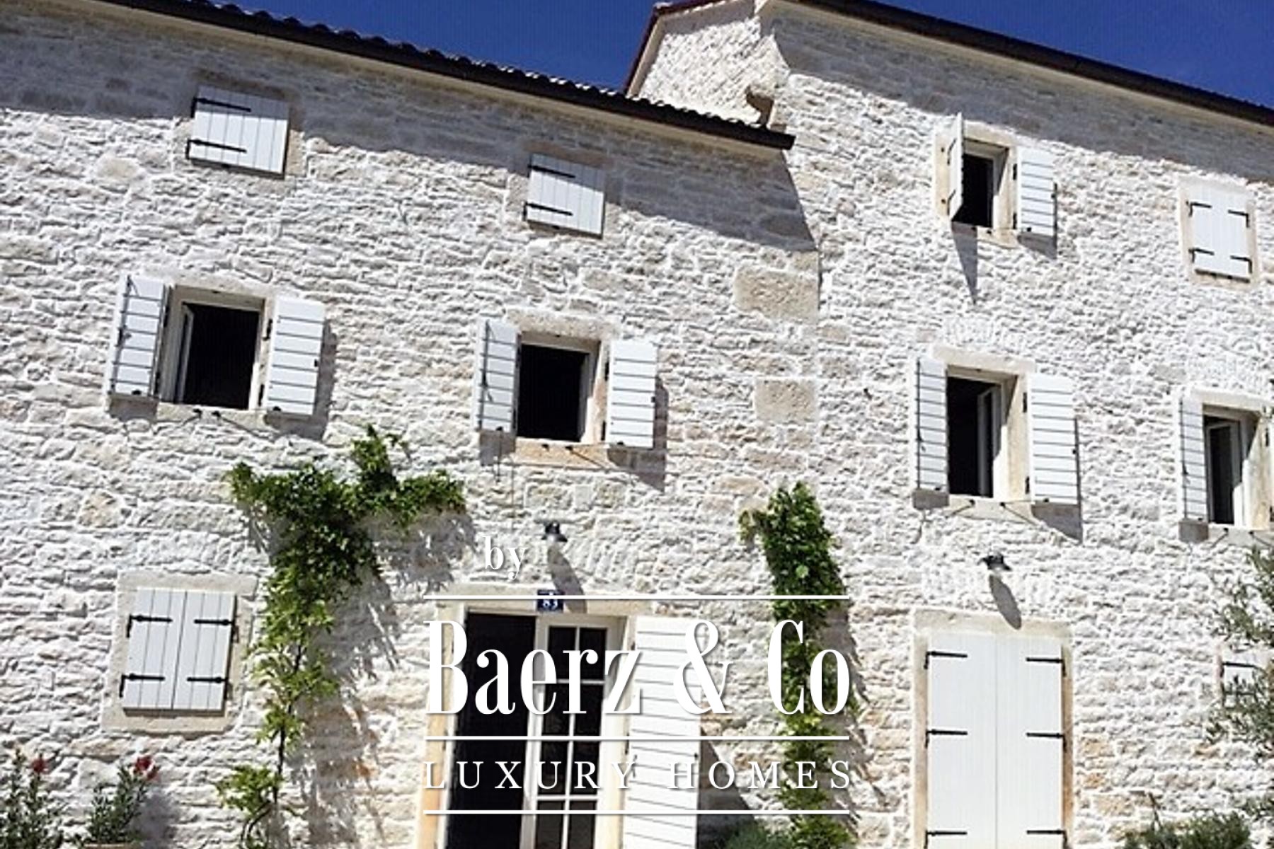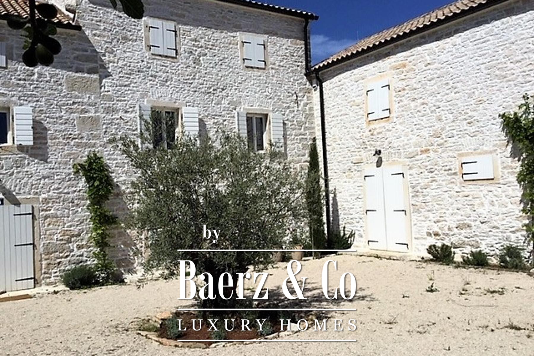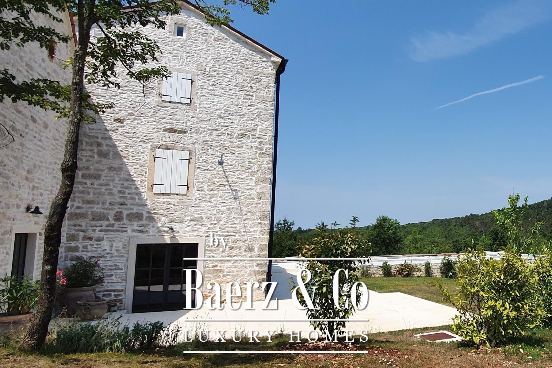 Luxury villa Grožnjan is a rare estate in the heart of inland Istria, blending authentic heritage with refined contemporary living. Spanning 13,497 m² of peaceful land, this property features 517 m² of living space arranged across three distinct structures: a main stone house, an intimate lounge house, and a new architect-designed building. The original stone buildings have been meticulously restored, preserving more than 250 years of Istrian tradition and architectural character.