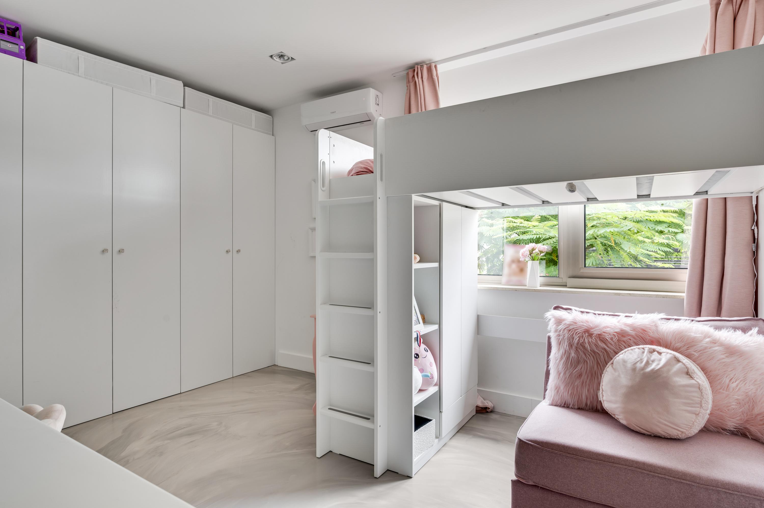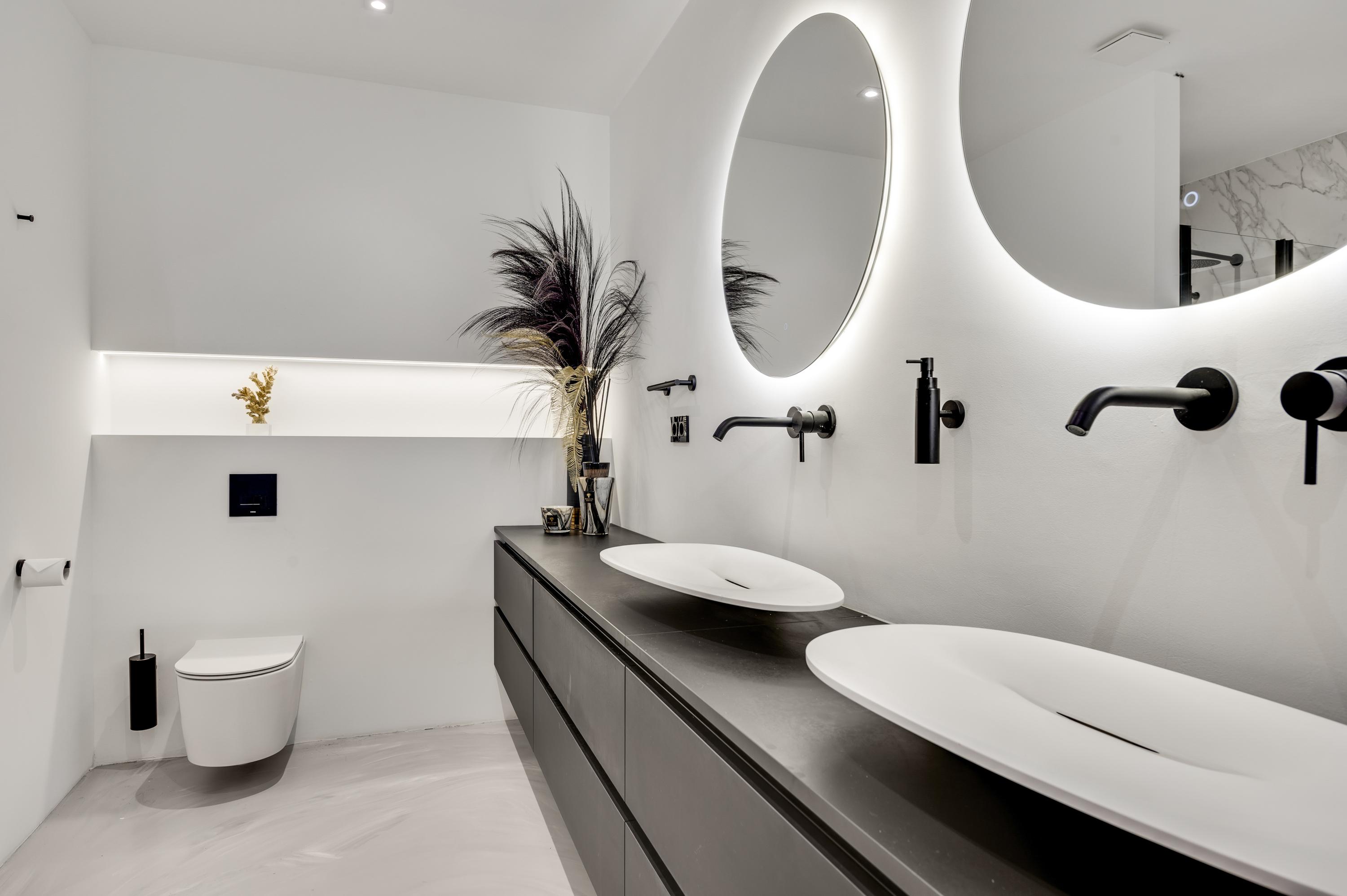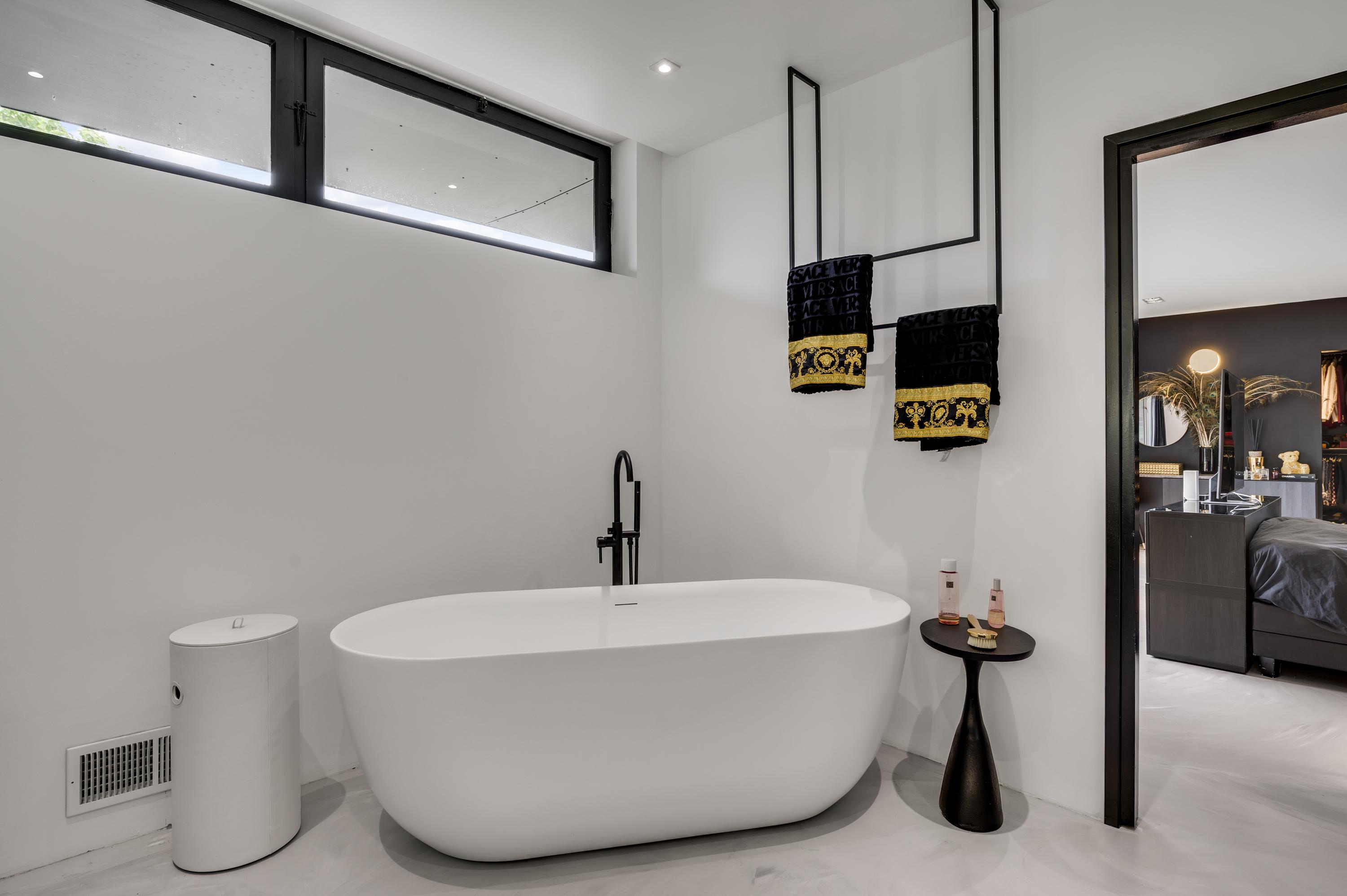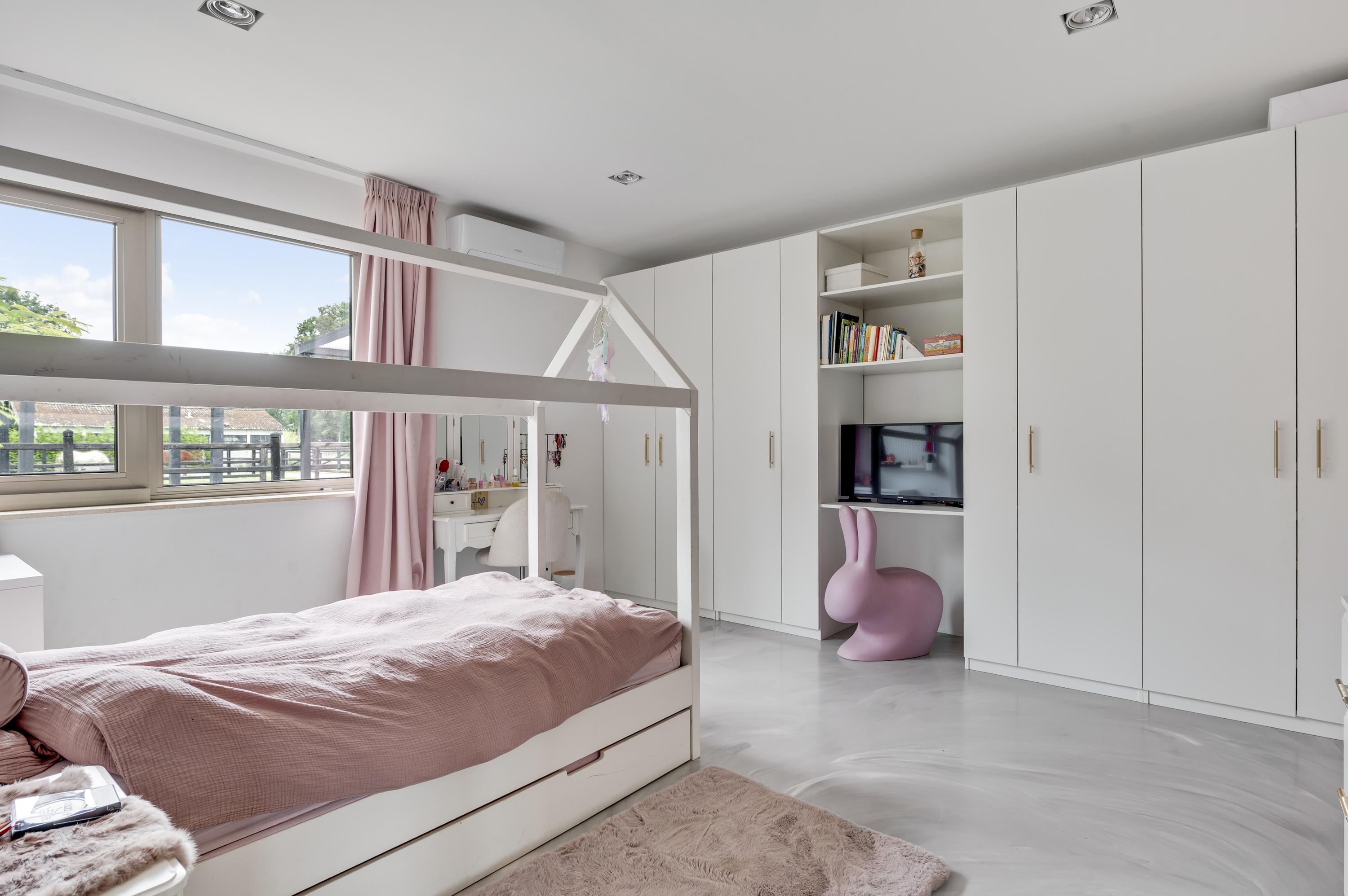 The east wing is entirely dedicated to the sleeping quarters. Here you’ll find five bedrooms, including a generous master suite with a walk-in wardrobe, luxurious en-suite bathroom, and direct access to a covered terrace overlooking the garden. The remaining four bedrooms share two stylish bathrooms, each featuring a bathtub, walk-in shower, double washbasin, and wall-mounted toilet.
