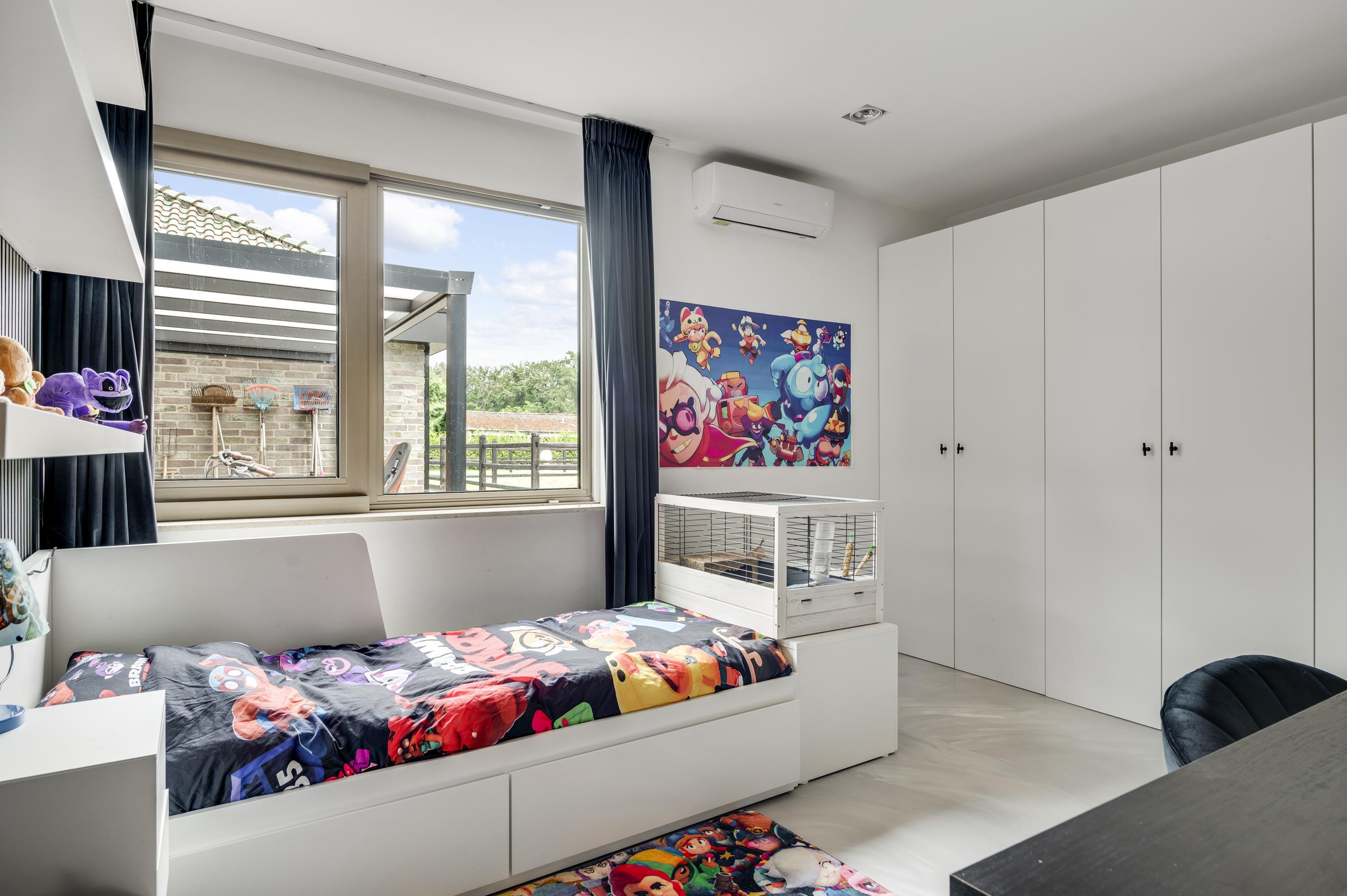 The beautifully landscaped garden includes a charming guest house complete with a kitchen, toilet, and double shower room — ideal for guests, an au pair, or live-in care. Alongside the floodlit riding arena, animal enclosures, and outdoor stable, the entire property radiates freedom, nature, and privacy. This is outdoor living at its finest.
