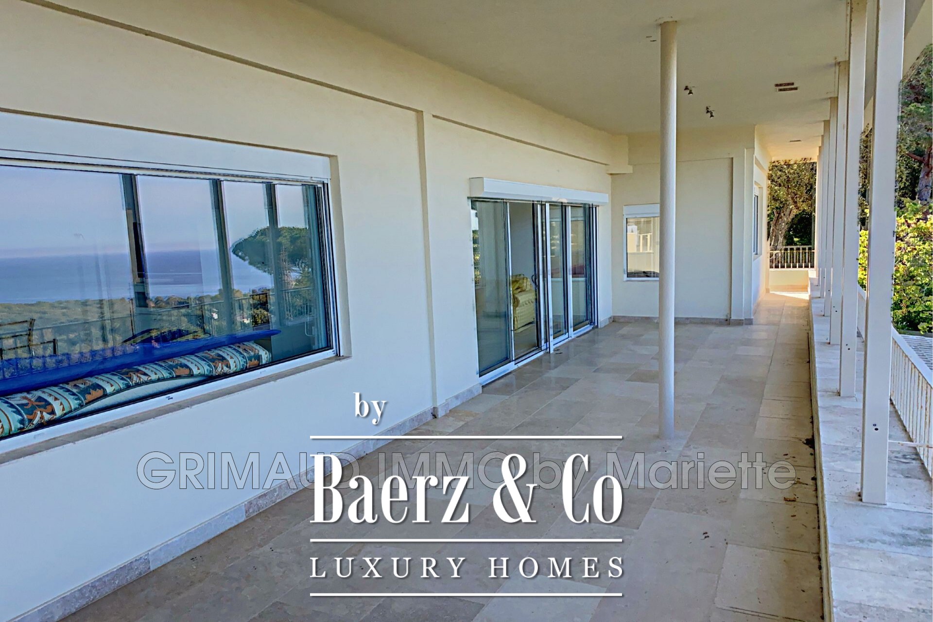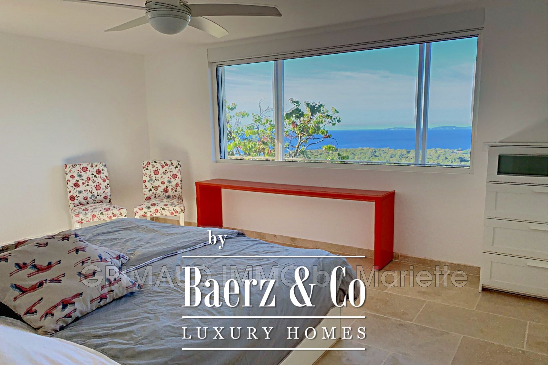 living room with lounge area, a fully equipped open-plan kitchen, and three large bedrooms, each with its own bathroom, walk-in closet, and toilet. Fully renovated with high-quality materials, this property combines comfort and elegance. For more properties, visit our website: www.grimaudimmo.com