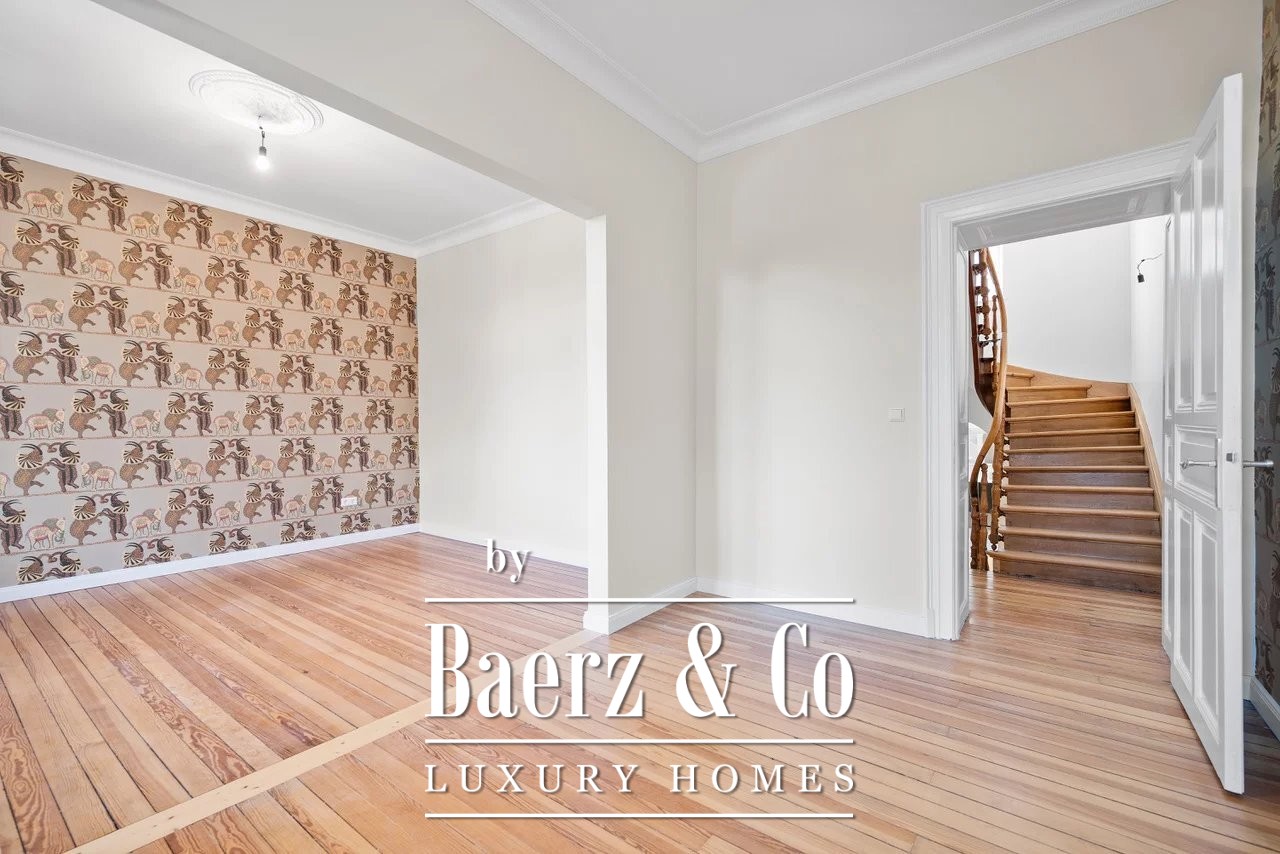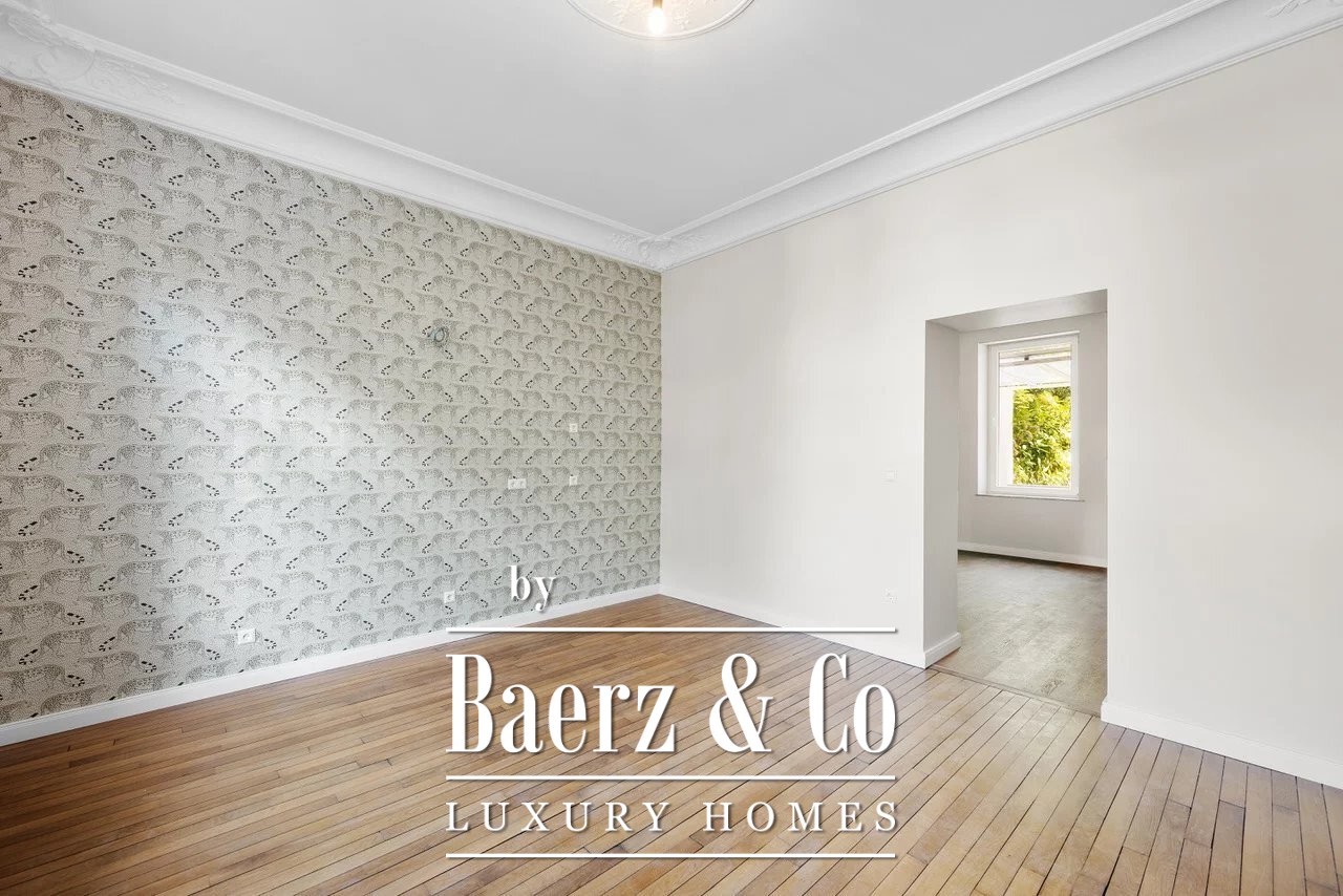 Townhouse Luxembourg forms the focus of this rare opportunity, set at 22 Boulevard de la Pétrusse in the capital’s heart. This 1920s residence presents 160 m² of gracefully updated living space, harmonizing original detail with discreet contemporary finishes. The recent renovation in 2025 elevates ceiling heights to 3.30 meters in the double living room, complemented by double glazing and convector heating for year-round comfort.