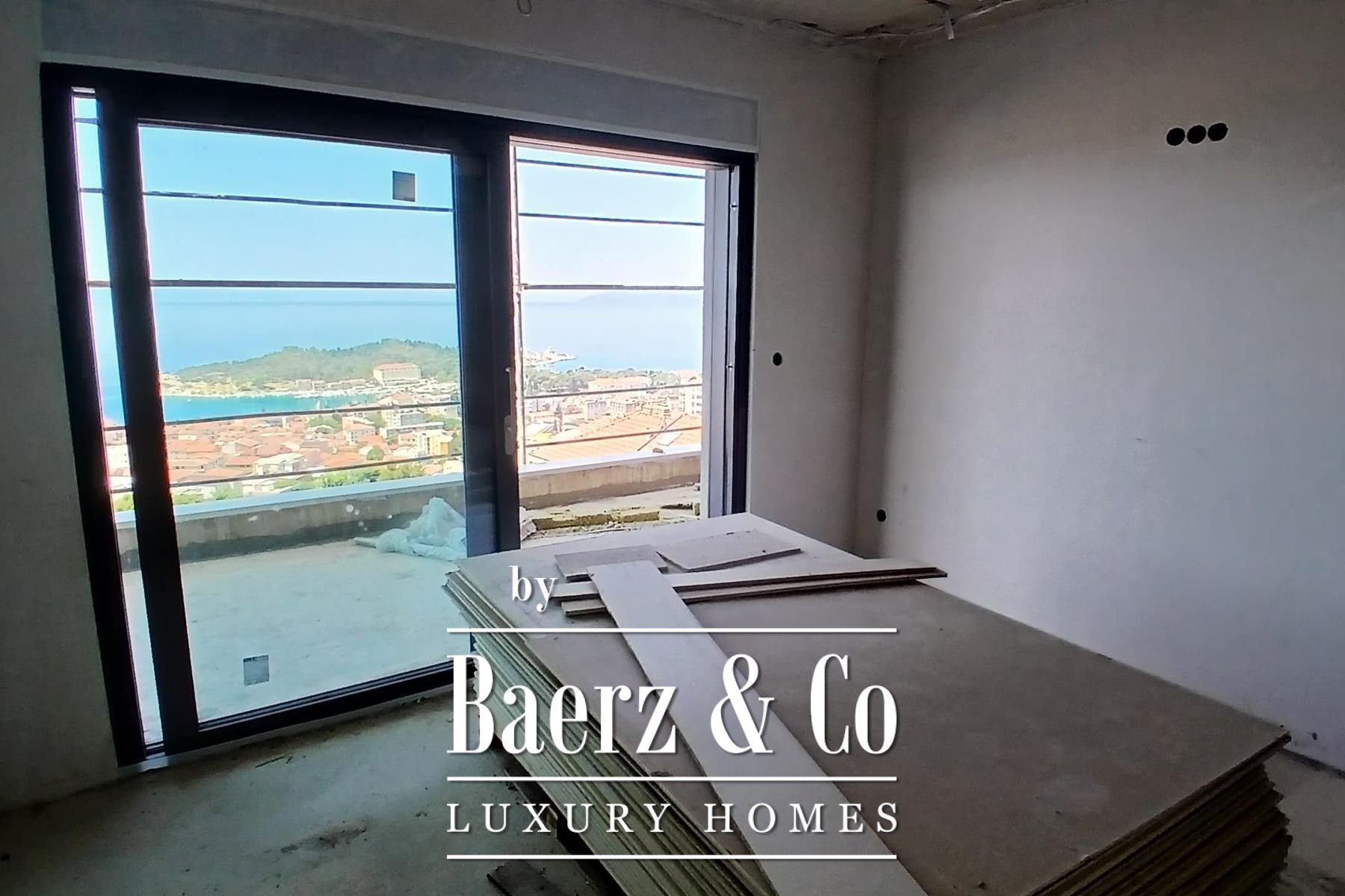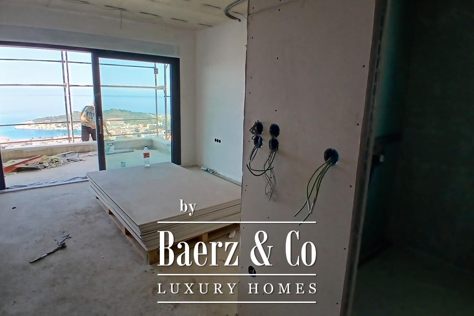 Apartment Makarska offers 173 m² of thoughtfully composed living space on the entire second floor of a modern residence under construction. This three-bedroom apartment with three bathrooms establishes an atmosphere of calm and privacy, elevated by unobstructed views over the Adriatic. The living area flows toward a south-facing 39.3 m² terrace and extends to a north courtyard featuring a 15.4 m² private pool, drawing light into every corner and framing the Mediterranean horizon.