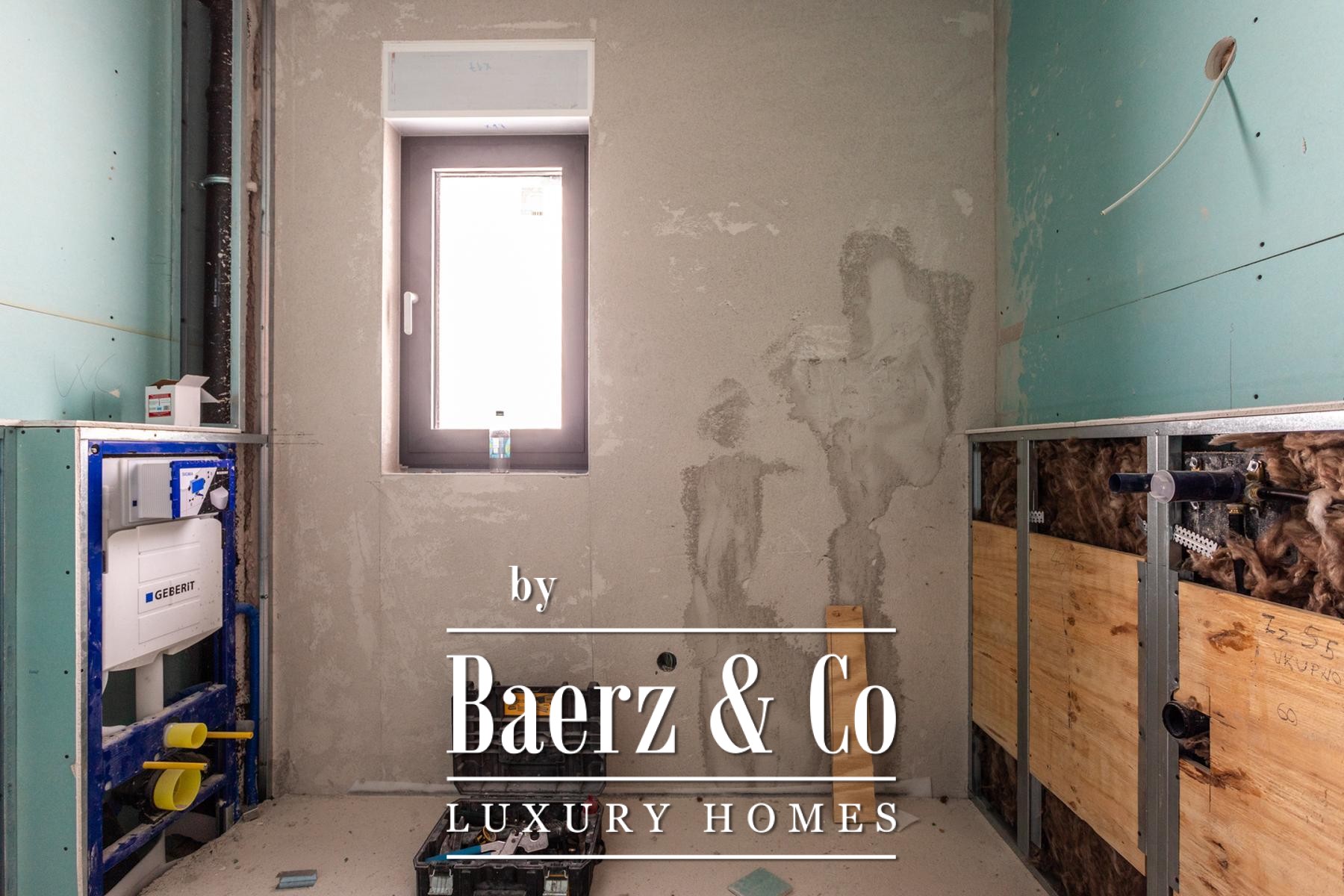The spatial layout balances generous entertaining areas with quiet retreats, integrating a hallway, pantry, laundry, and an open kitchen and dining room. Interiors are defined by first-class parquet and ceramics, Schuco aluminum carpentry, and controlled comfort via smart home technology, underfloor heating with heat pump, and advanced climate control. Two secure garage parking spaces are available for purchase.