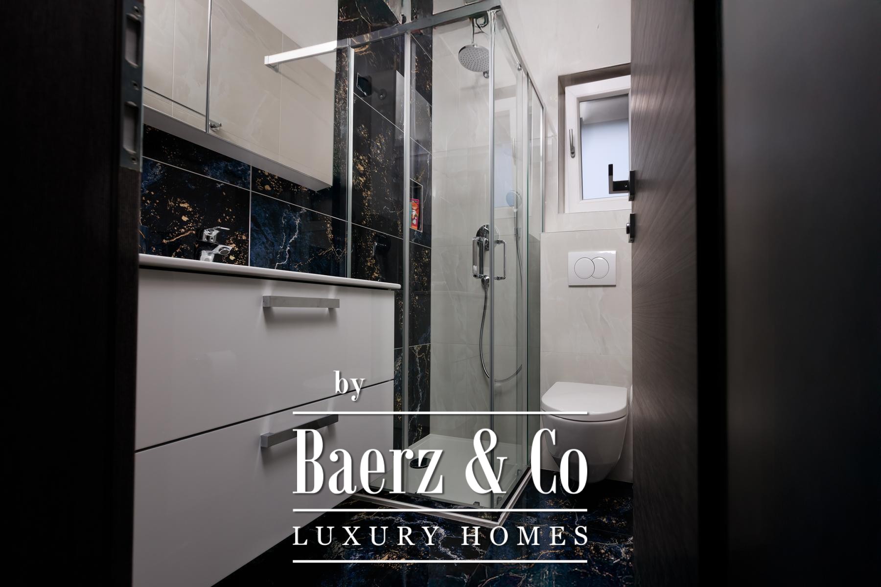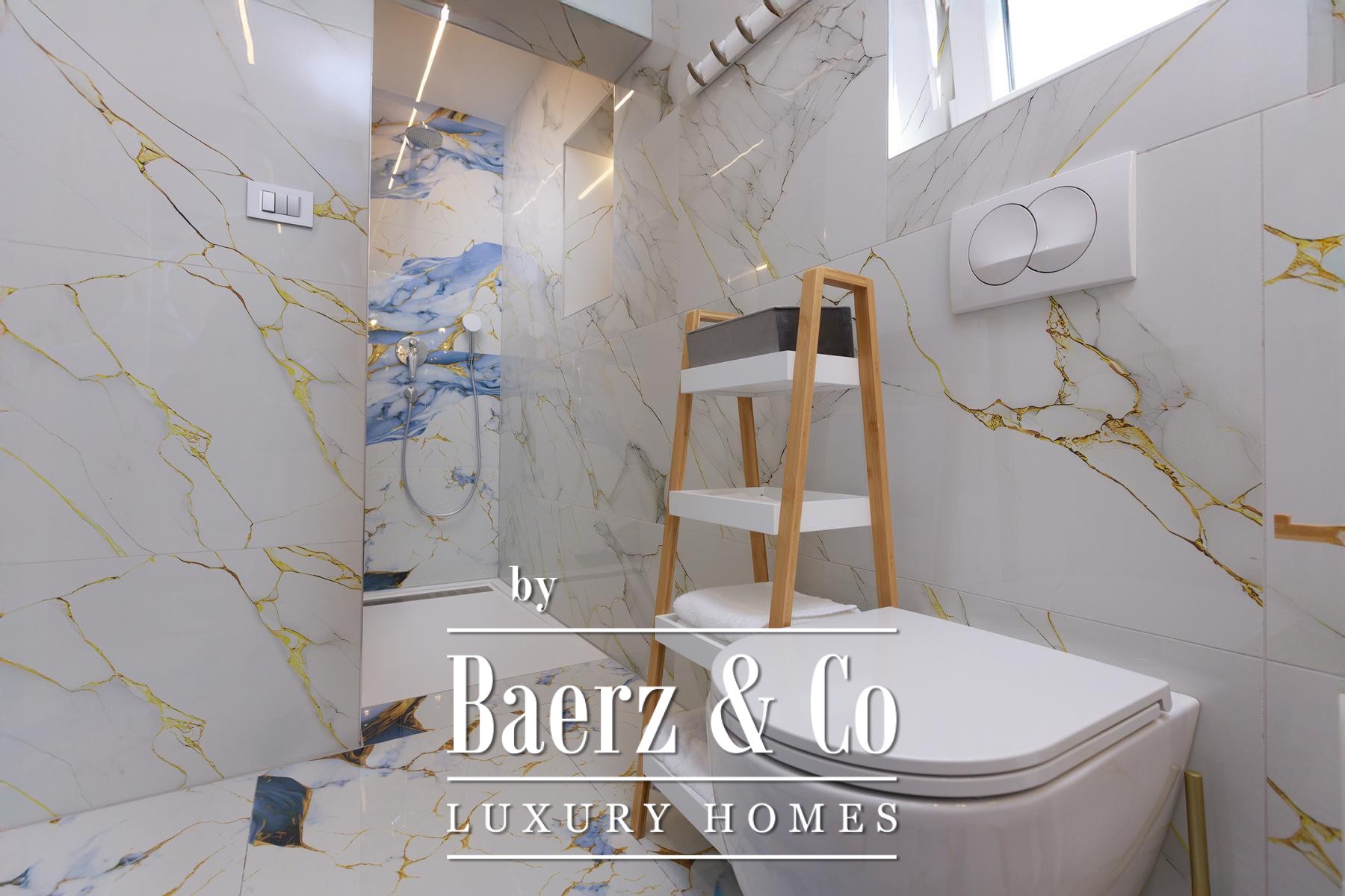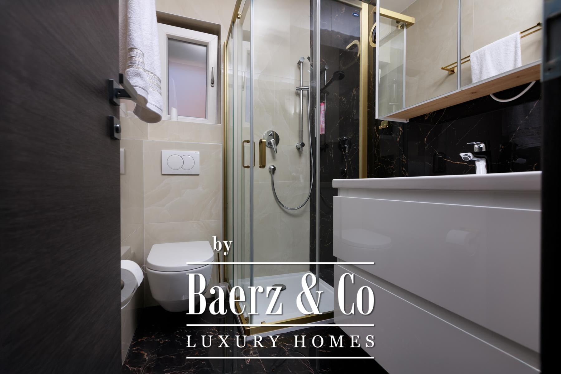 a high standard: the ground floor apartments have PVC joinery, while the upper floor has aluminum joinery; all windows are fitted with electric shutters and insect screens. Comfort and security are ensured by eight air conditioning units, an alarm system, smoke and glass-break detectors, and four surveillance cameras. All three kitchens are from the renowned brand DAN Küchen, while the bathrooms are furnished with premium carpentry. The attic, measuring 60 m², offers the possibility to create an additional apartment, and the most recent renovation of the house was carried out in 2025.Outdoors, there is a large swimming pool measuring 10 x 5 meters, with a heat pump already provided that only needs to be connected. The property also includes four outdoor parking spaces.This house combines privacy, luxury living, and investment potential in one of the most desirable locations on the island of Krk.