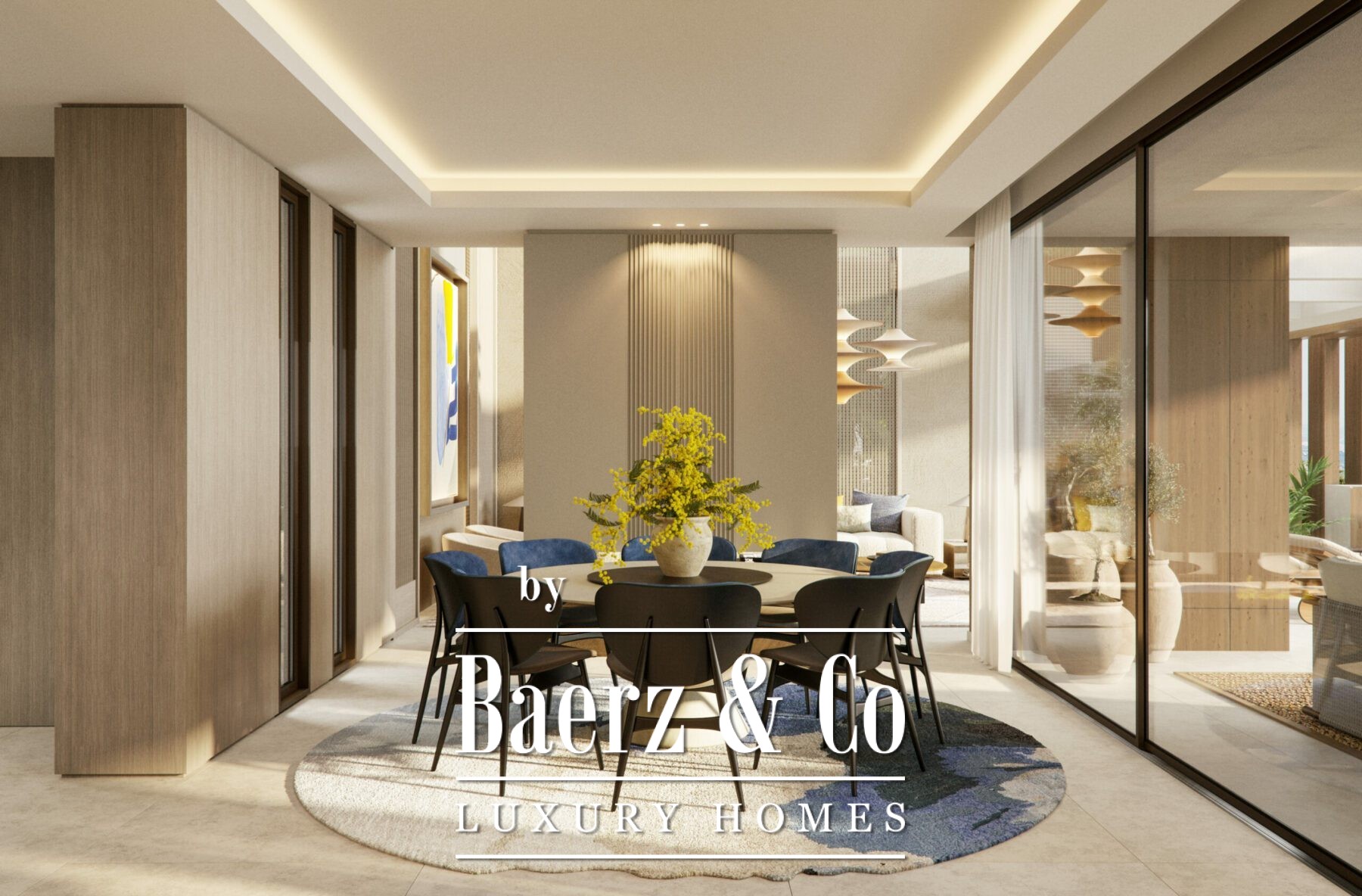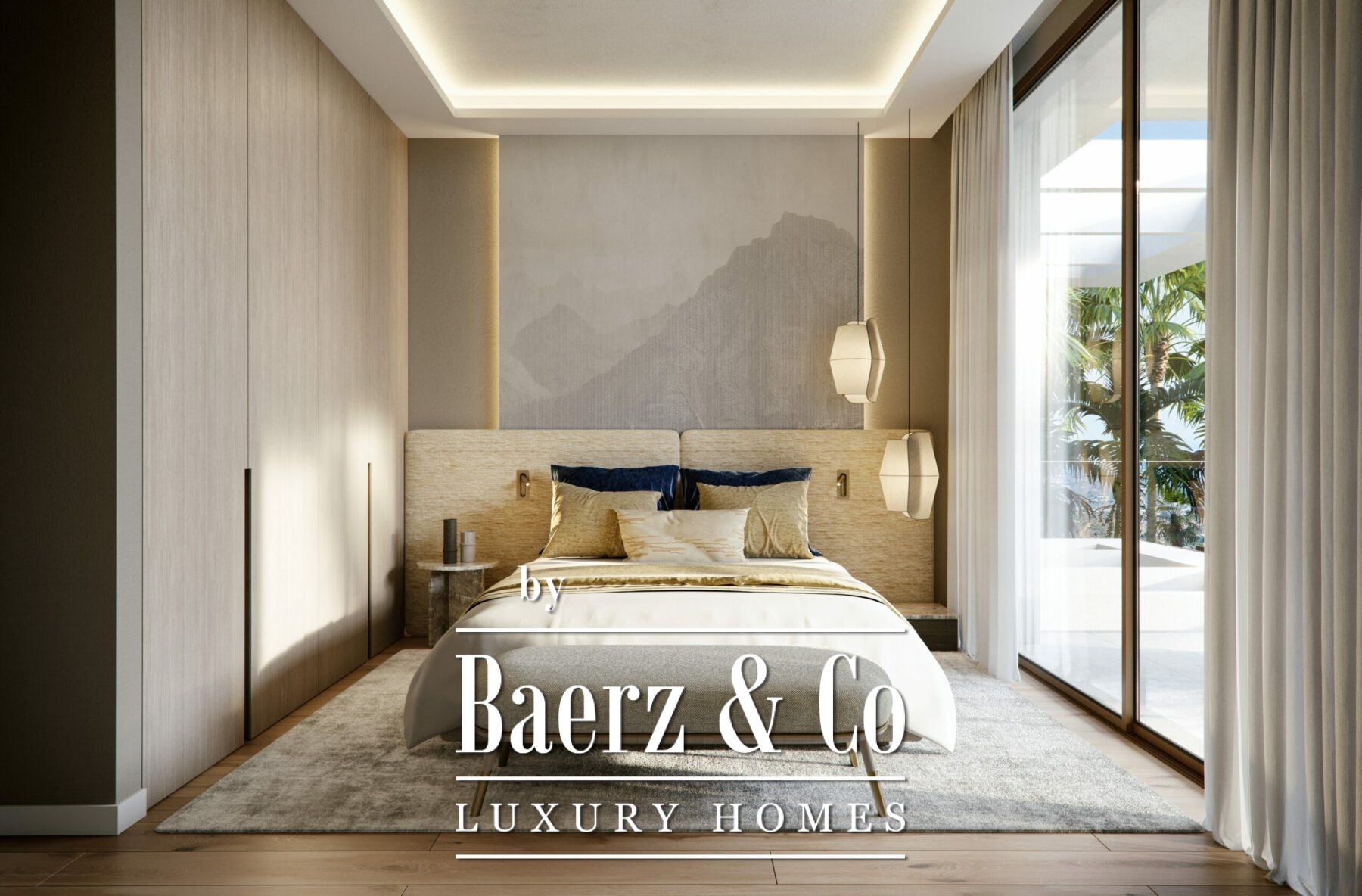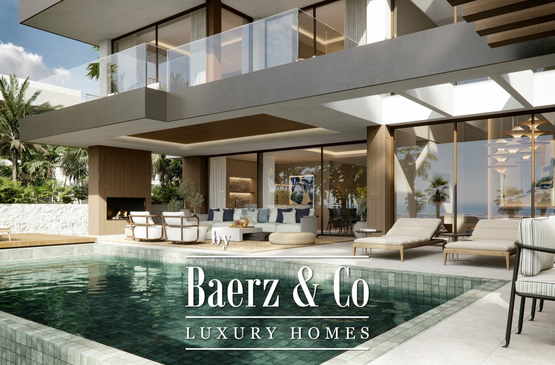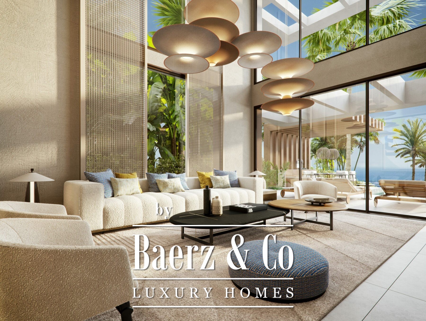Villa Marbella with sea and mountain views invites a life of discernment within the heart of Nueva Andalucia. This villa, part of an exclusive off-plan project of twenty-six residences, occupies a 979 m² plot with a living area of 488 m², capturing the spirit of contemporary architecture. The design, envisioned by a celebrated architect, shapes open, light-filled volumes where five bedrooms and five bathrooms are woven into an intelligent flow of interior and exterior living.