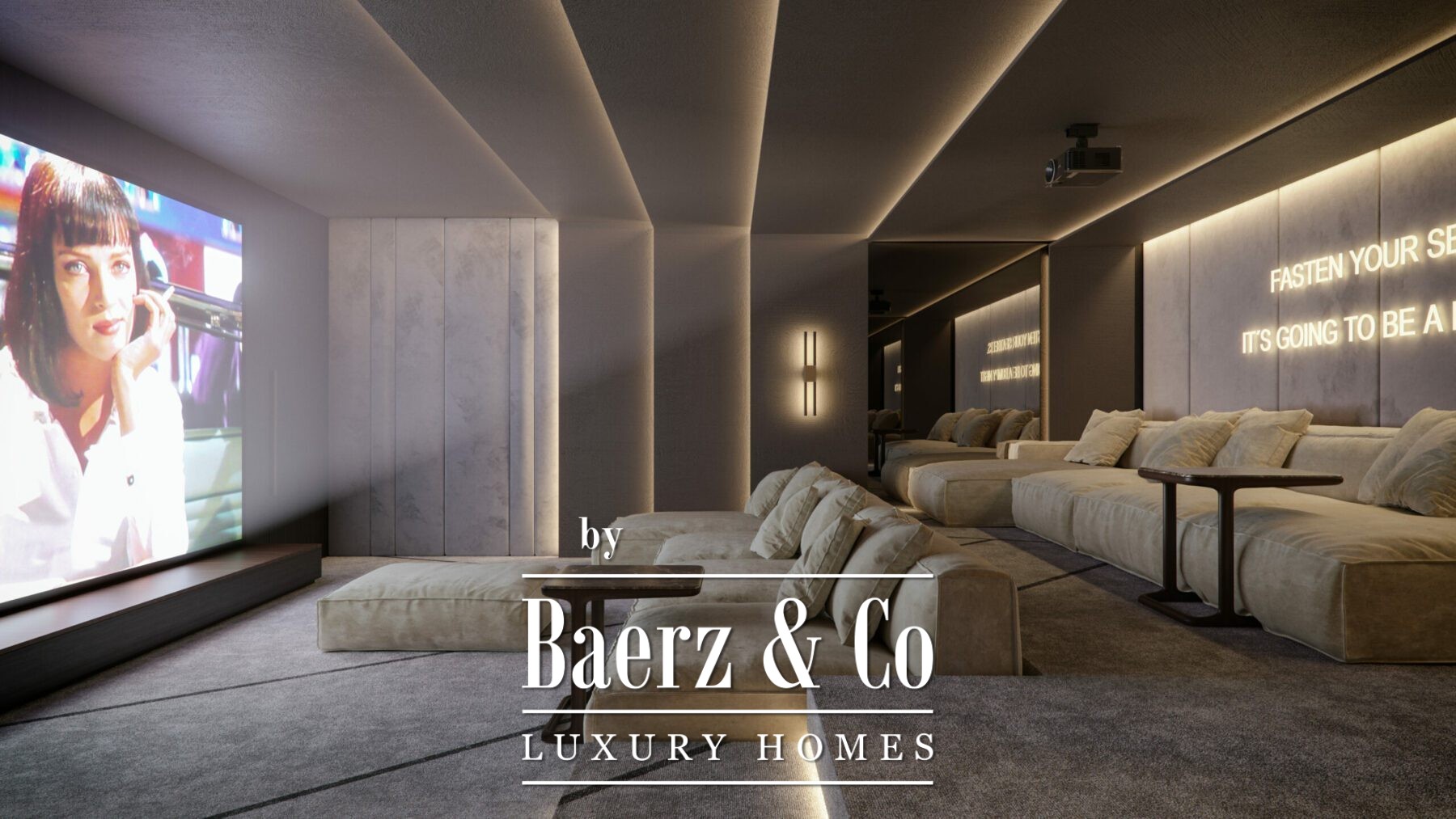 Artful detailing defines the residence, from the fireplace anchoring the main living area to the tailored tunnel access linking garage and carport. The home cinema and gym expand the possibilities for private entertainment and wellness. Outdoors, an infinity pool merges with landscaped gardens, while the bespoke solarium frames views stretching toward La Concha and the Mediterranean.