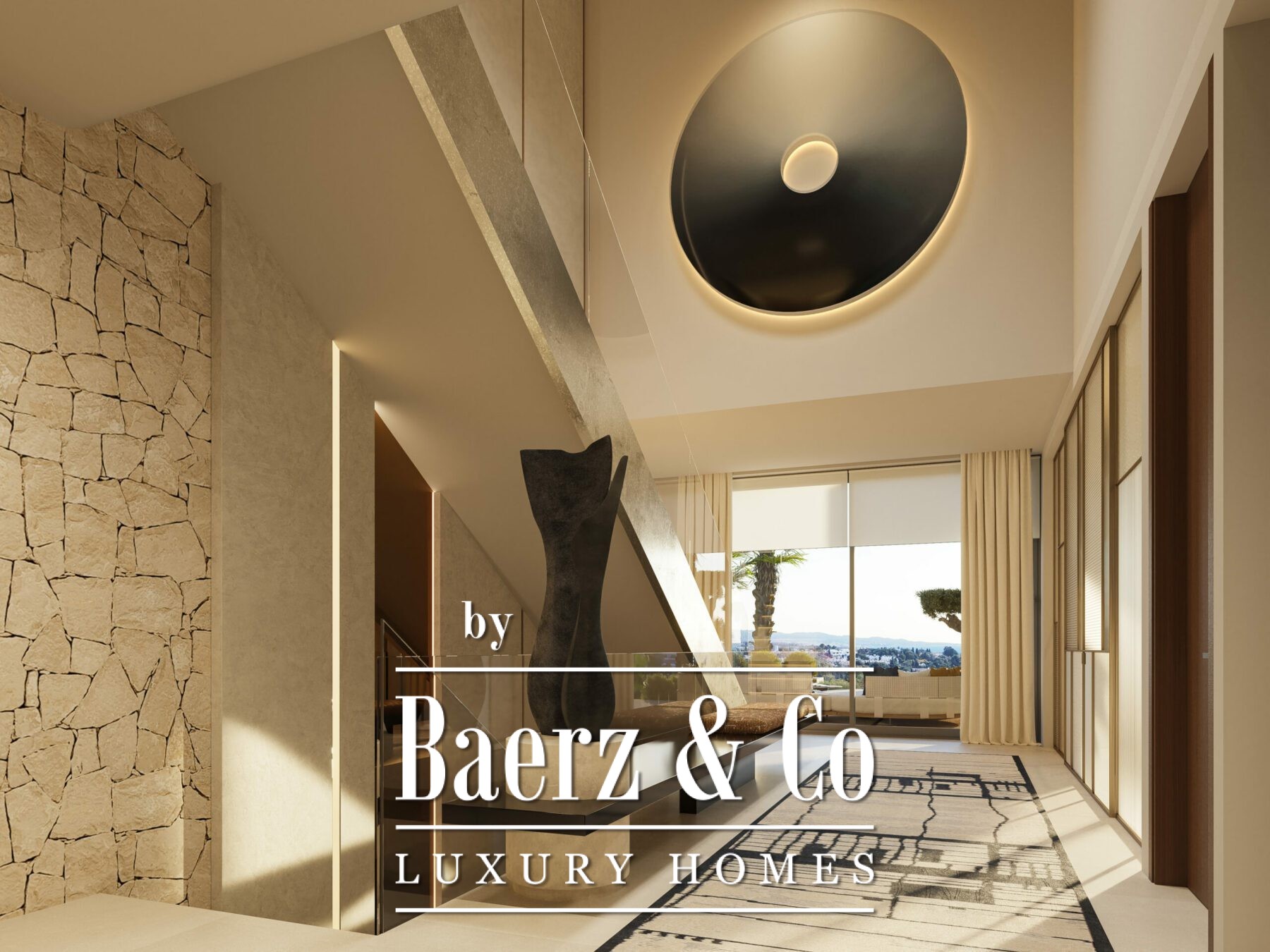 Six bedrooms and six bathrooms create private sanctuaries within a spatial composition that is fluid and generous. The living spaces open to landscaped gardens, where a private infinity pool and a solarium frame panoramic views of La Concha and the Mediterranean Sea. An entire entertainment level integrates a home gym and dedicated areas for gathering, while every finish is underscored by contemporary craftsmanship.
