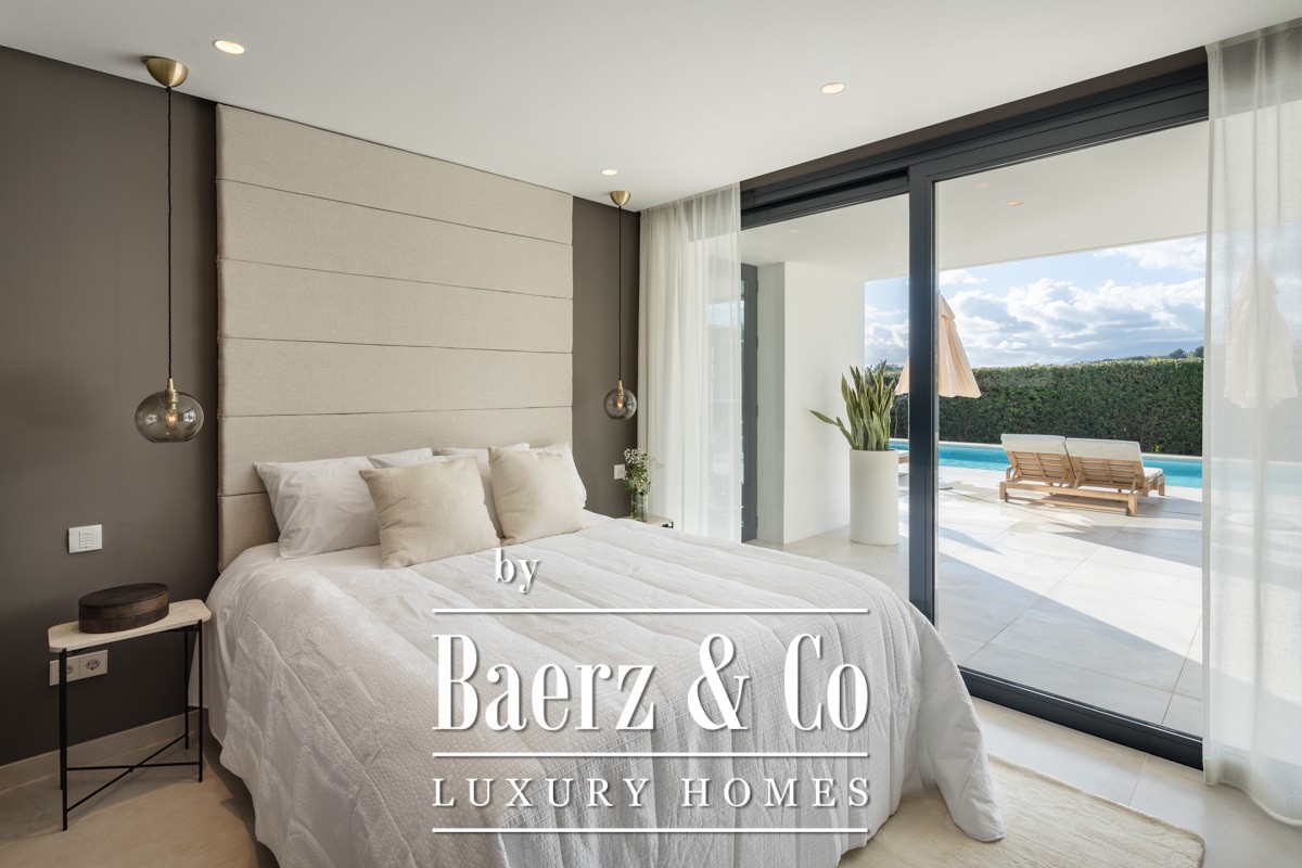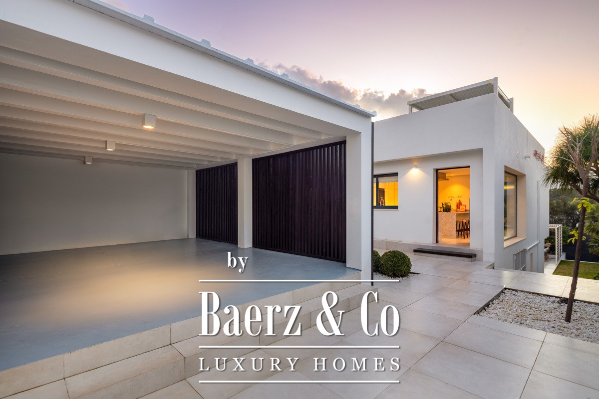Step inside to discover a bright and airy open-plan living area, perfectly complemented by a sleek modern kitchen. The master bedroom is a true sanctuary, boasting direct access to a terrace and a grandiose master bathroom that exudes elegance and natural charm. Every detail of this home has been meticulously crafted to provide a harmonious blend of style and function. Additional amenities include a state-of-the-art home gym, a private home cinema for ultimate entertainment, and an incredible solarium with a jacuzzi, offering panoramic views and a space to unwind in style.