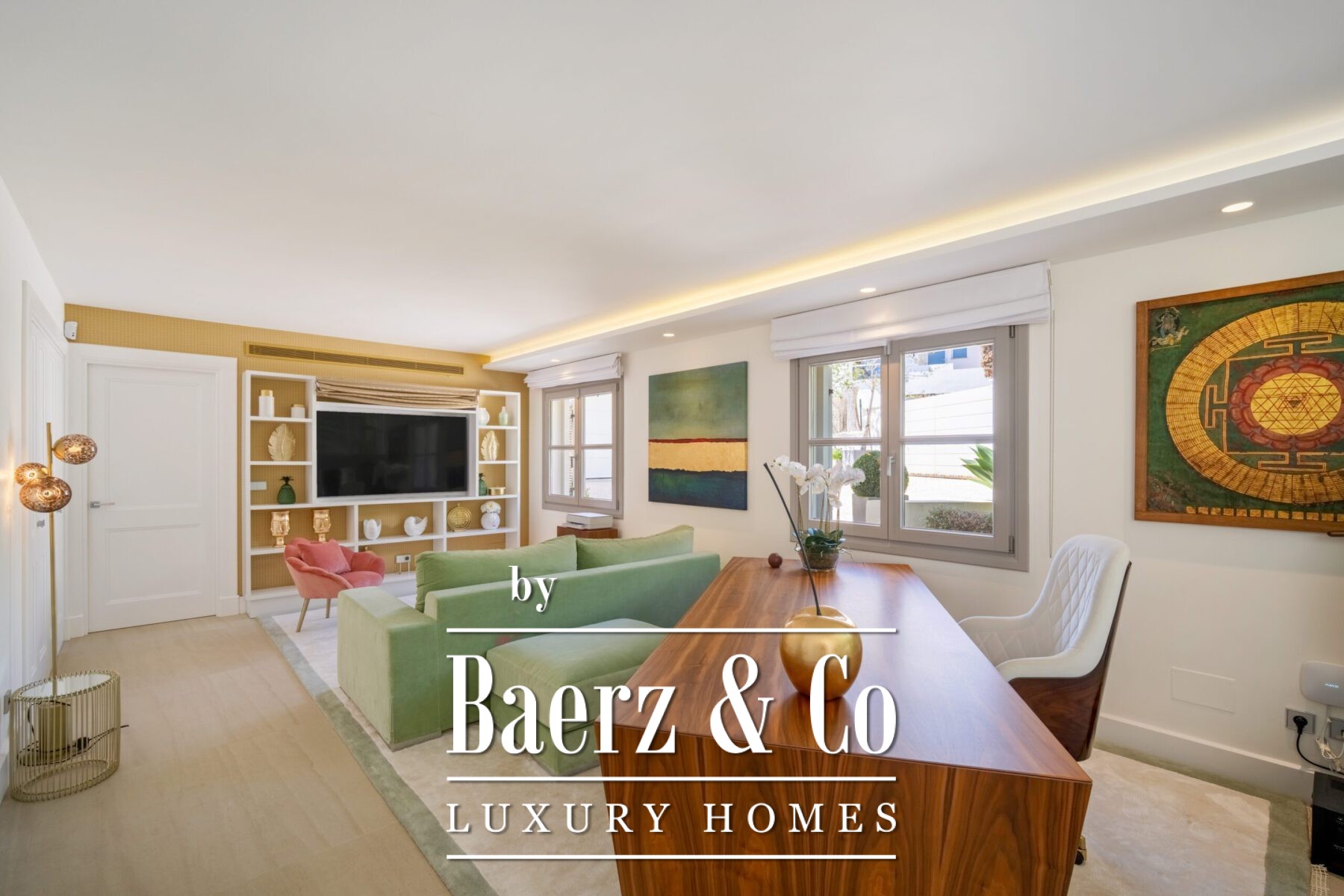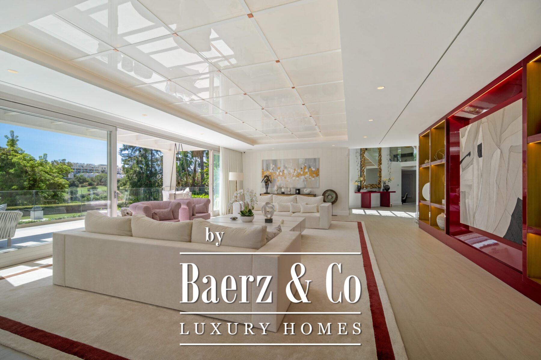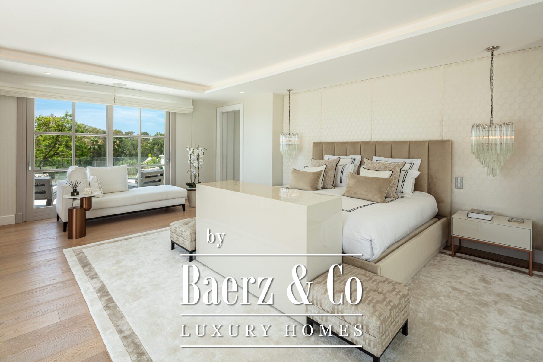 A private oasis nestled in the luxurious area of Marbella's Golf Valley. This magnificent mansion sits in a prestigious gated community and boasts an enviable front-line position overlooking Aloha Golf Course. Its timeless exterior and top-of-the-line interior finishes strike the perfect balance between classic elegance and modern sophistication. The property strikes a perfect balance between classic elegance and modern sophistication, featuring a timeless exterior and top-of-the-line interior finishes. The colour pallet used to decorate the interior is soft and inviting, exuding a calming atmosphere that one expects when coming back home.