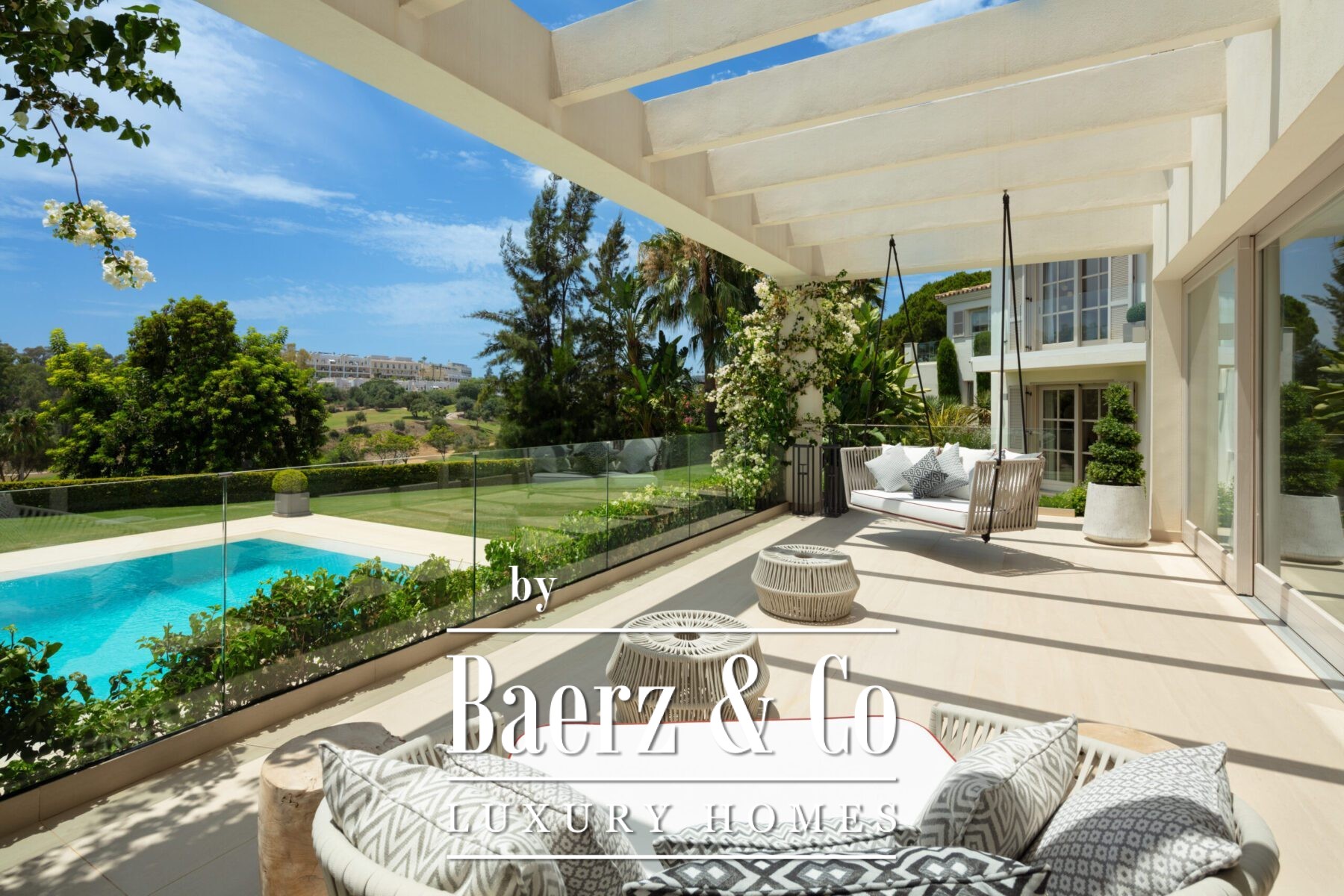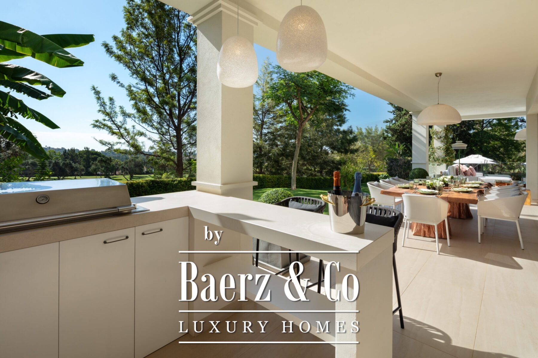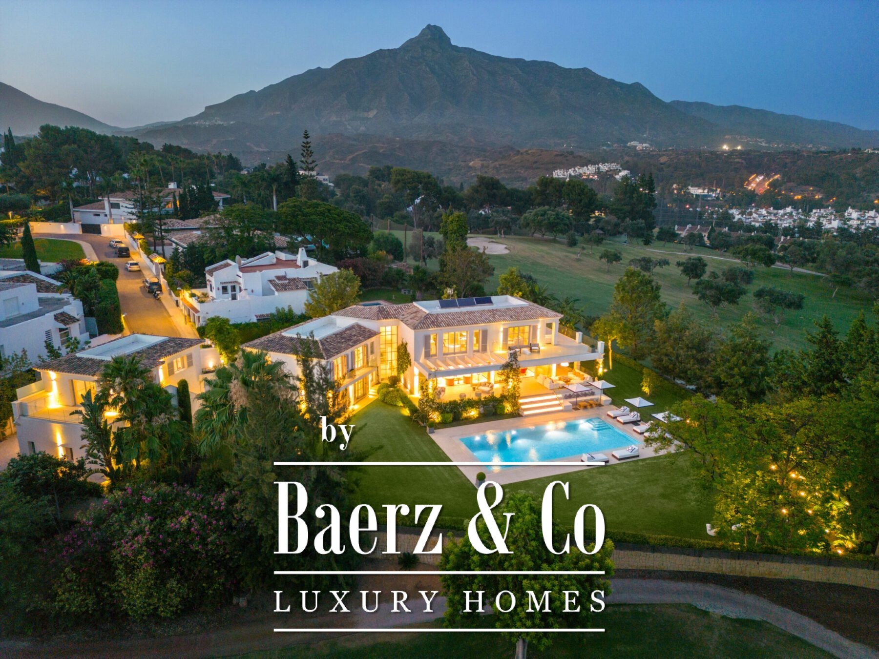 A private oasis nestled in the luxurious area of Marbella's Golf Valley. This magnificent mansion sits in a prestigious gated community and boasts an enviable front-line position overlooking Aloha Golf Course. Its timeless exterior and top-of-the-line interior finishes strike the perfect balance between classic elegance and modern sophistication. The property strikes a perfect balance between classic elegance and modern sophistication, featuring a timeless exterior and top-of-the-line interior finishes. The colour pallet used to decorate the interior is soft and inviting, exuding a calming atmosphere that one expects when coming back home.