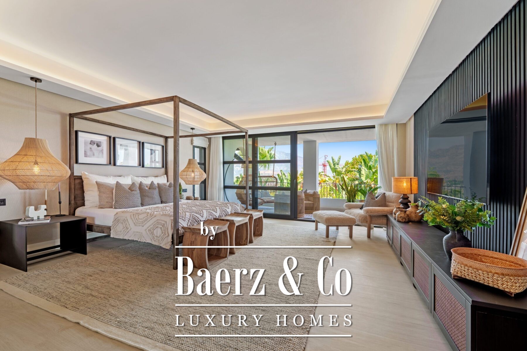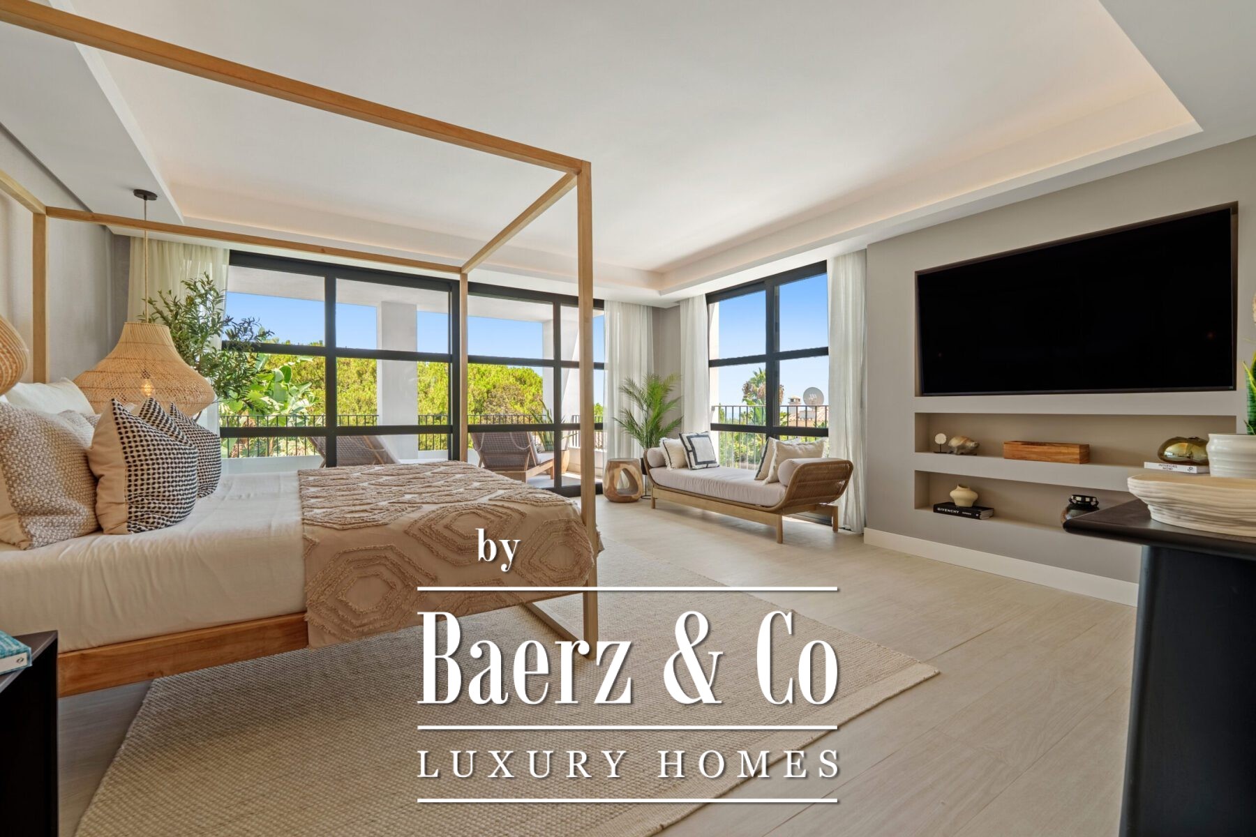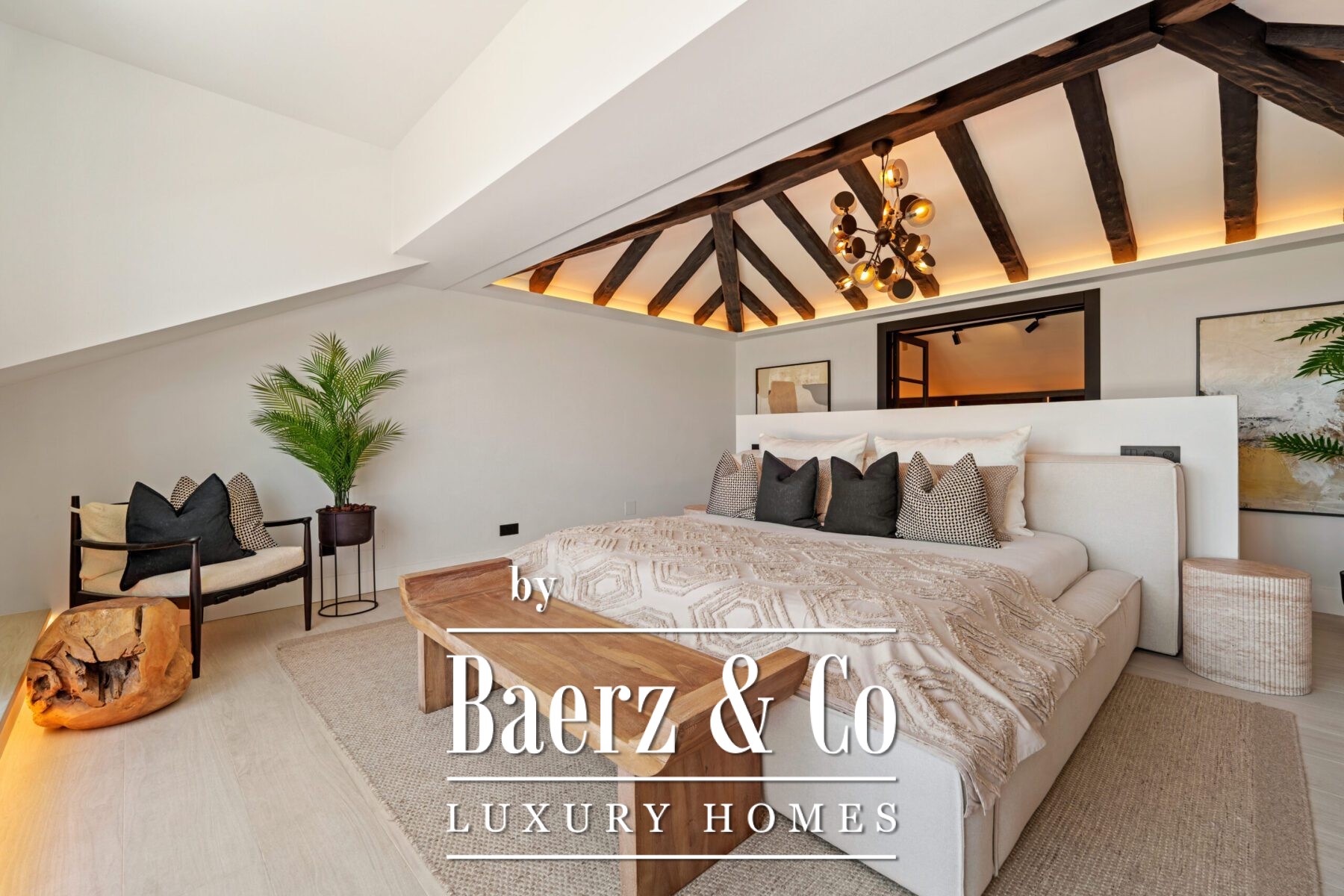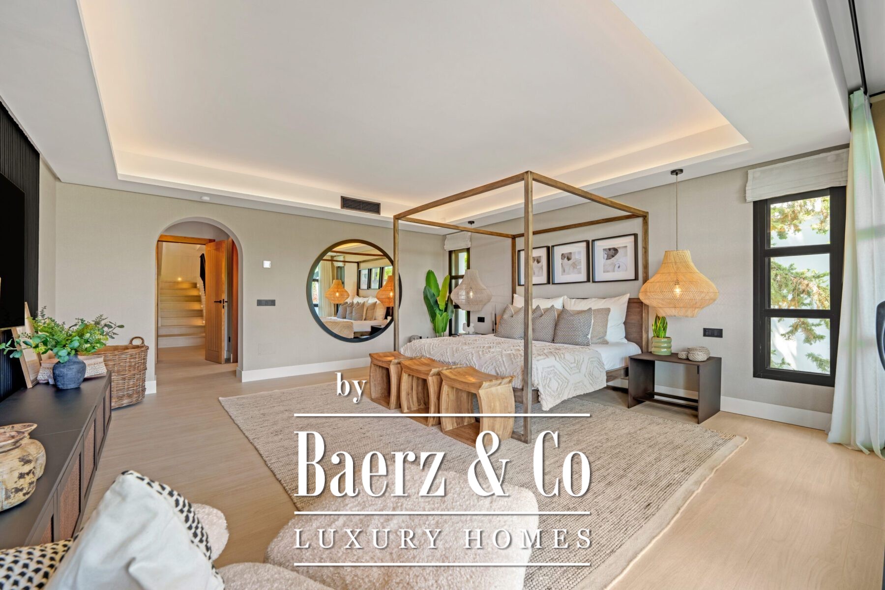 The interior design is a harmonious fusion of sophistication and warmth, combining neutral tones, natural textures, and bespoke furnishings to create a serene yet luxurious atmosphere. Handpicked décor pieces, artisanal lighting, and thoughtfully integrated shelving add character and charm, while large windows frame the captivating views and invite abundant daylight into every space. The result is a home that feels both contemporary and timeless, with a refined aesthetic that enhances its architectural beauty.
