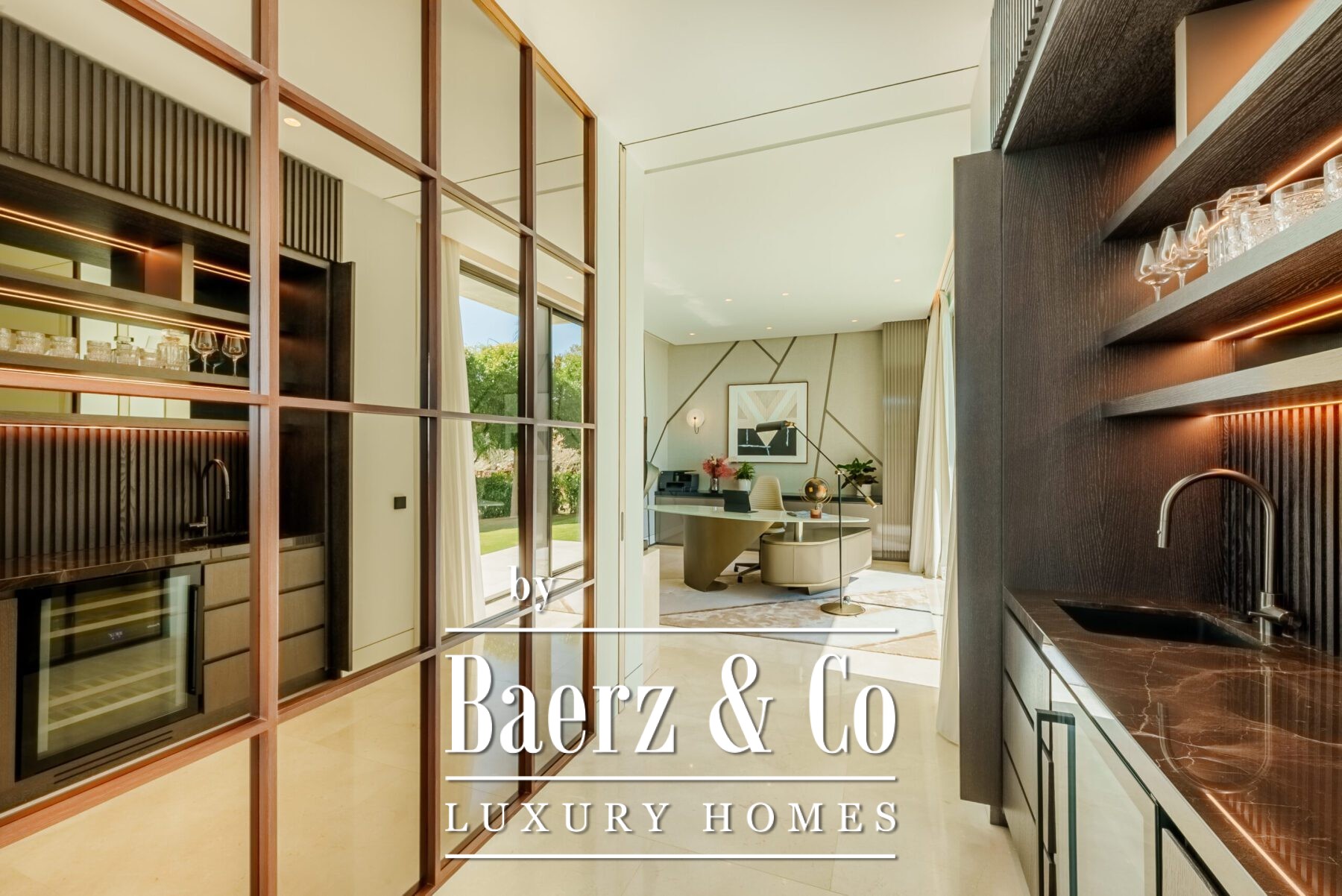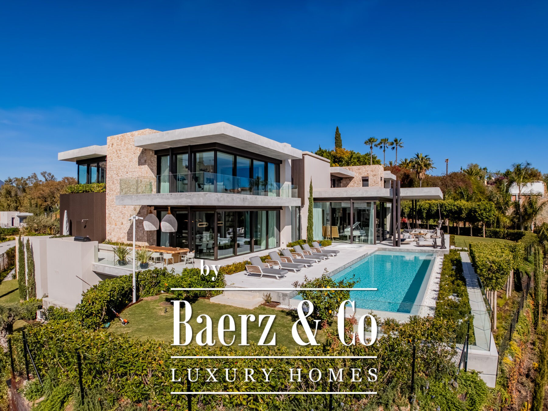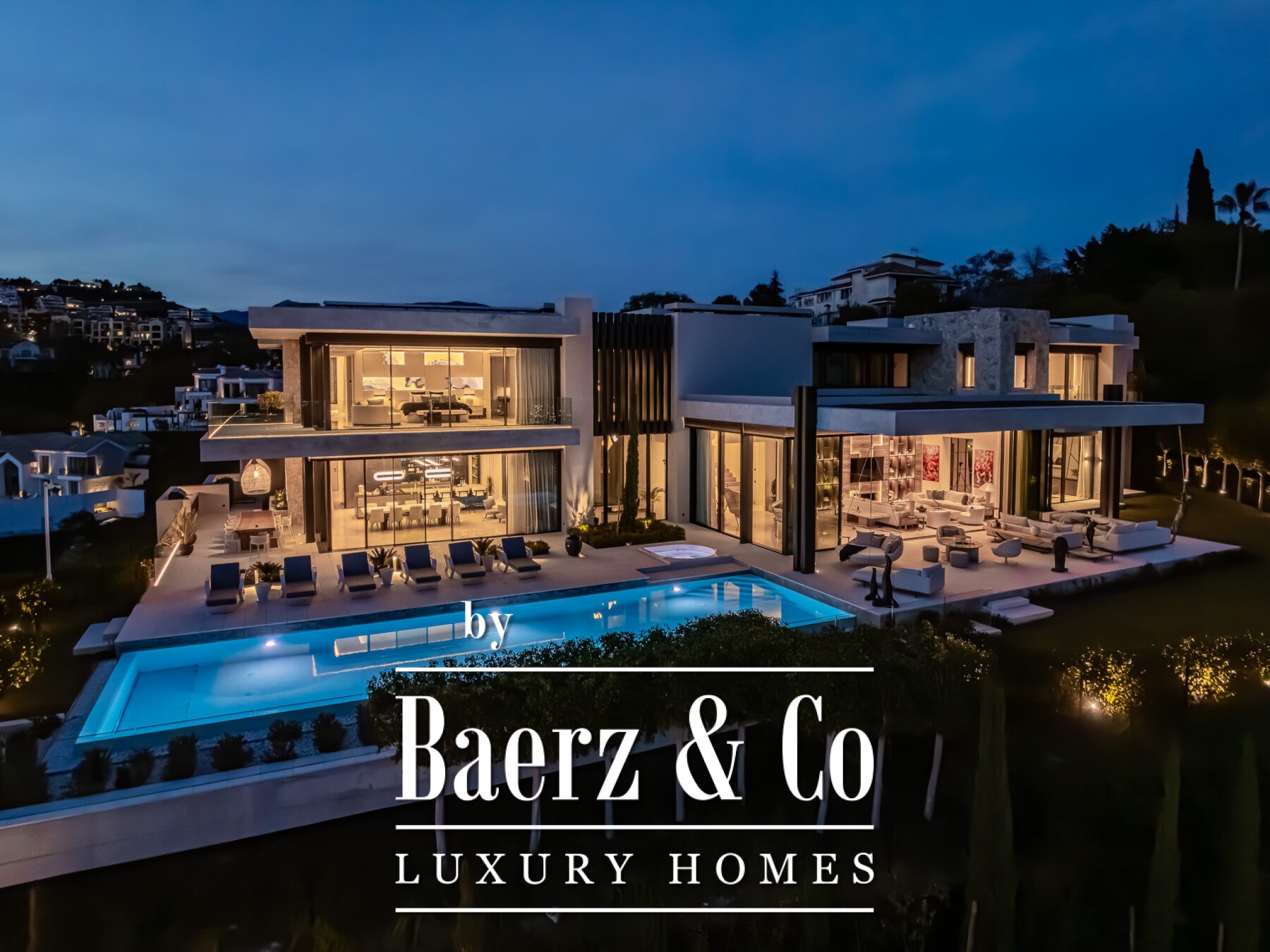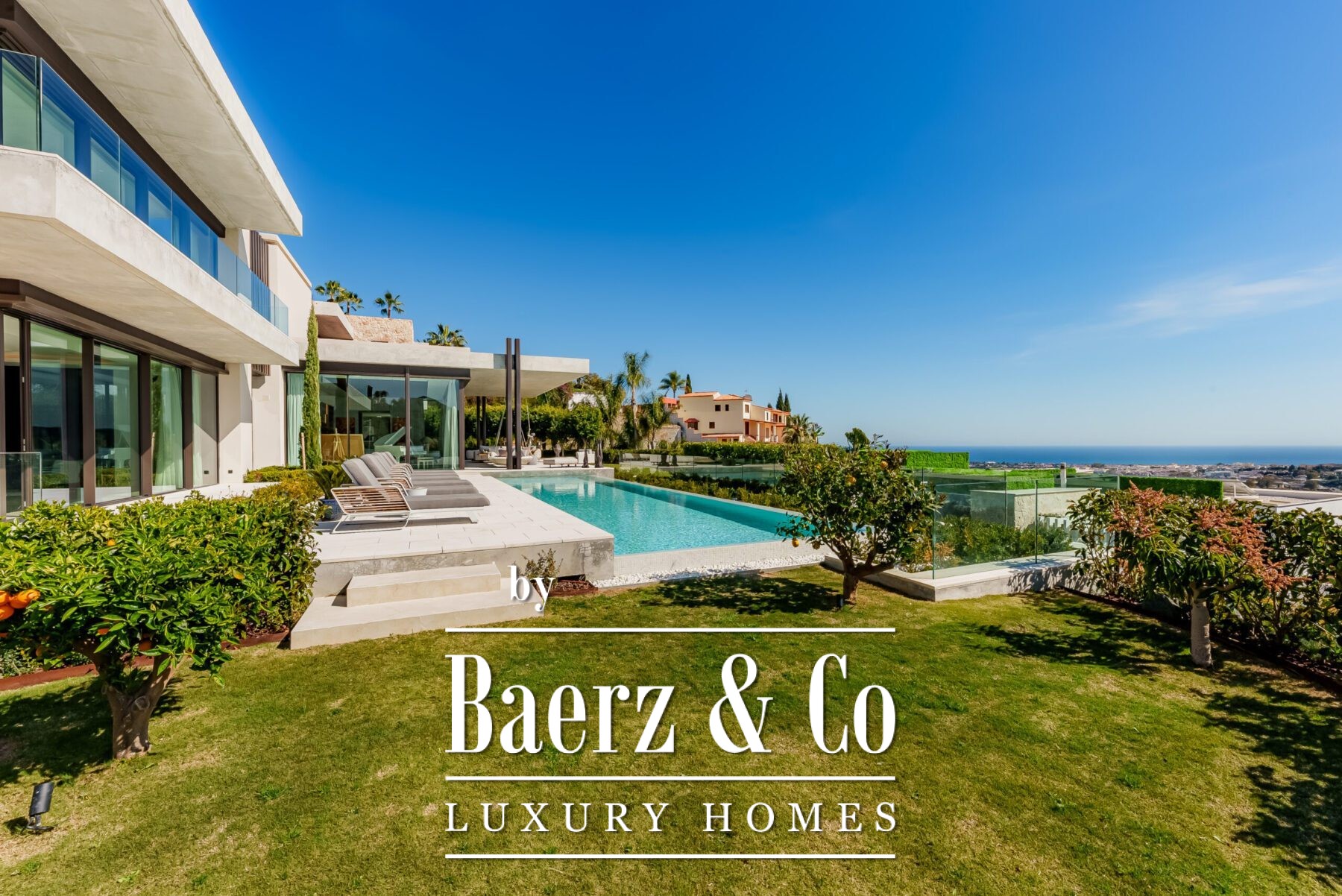 Villa Marbella with Panoramic Sea and Mountain Views is an architectural statement within the prestigious La Quinta enclave. This residence spans 1,451m² of living space on a 2,650m² plot, thoughtfully proportioned for privacy, connection, and seamless indoor-outdoor living. The villa features eight bedrooms and eight bathrooms, including a master suite with a walk-in closet and a spa-inspired bathroom. Each room is oriented to maximize the sweeping views of the Mediterranean coastline and green landscapes, creating a perpetual dialogue with its surroundings.